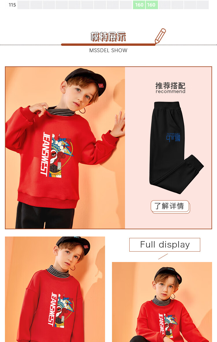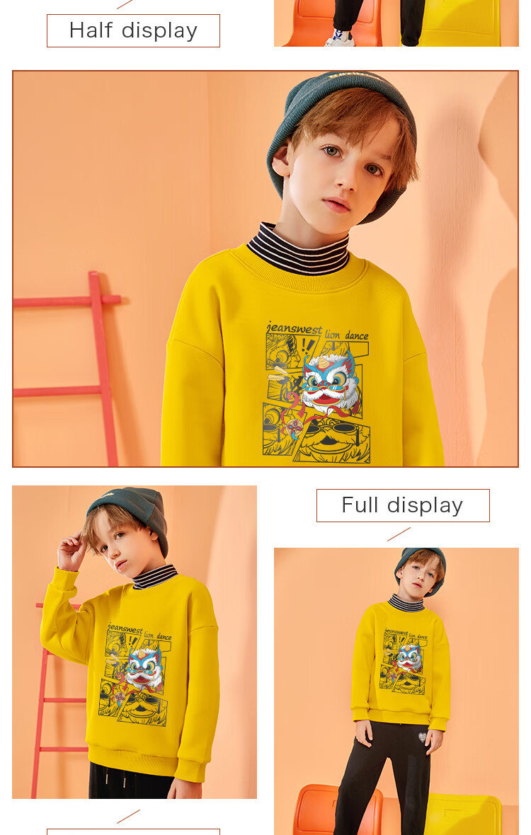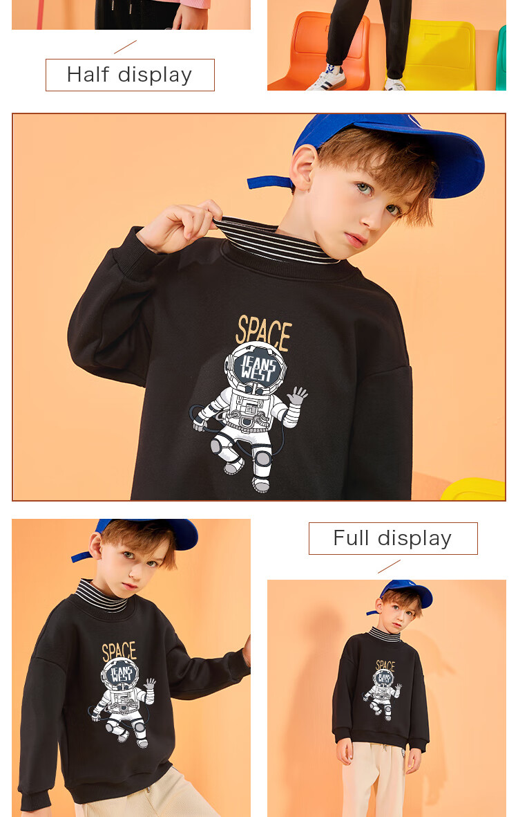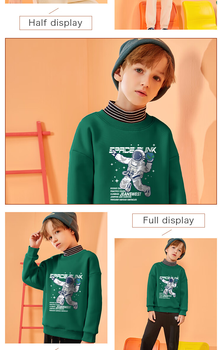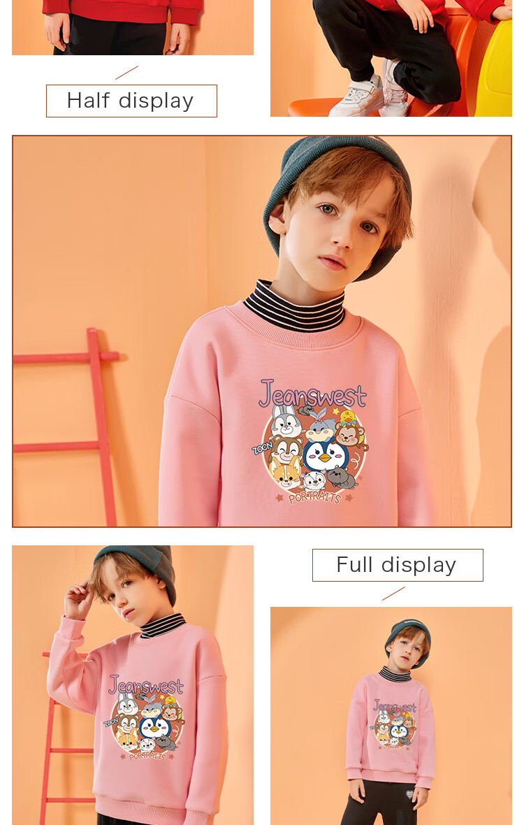 Jeanswest JU boys' velvet sweatshirt autumn and winter thickened half turtleneck children's new winter style 60 characters velvet half turtleneck black _J letter hat 110 cm
