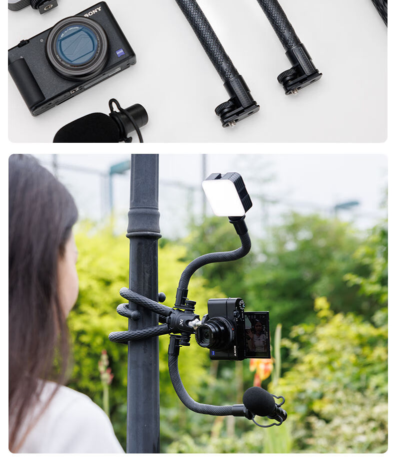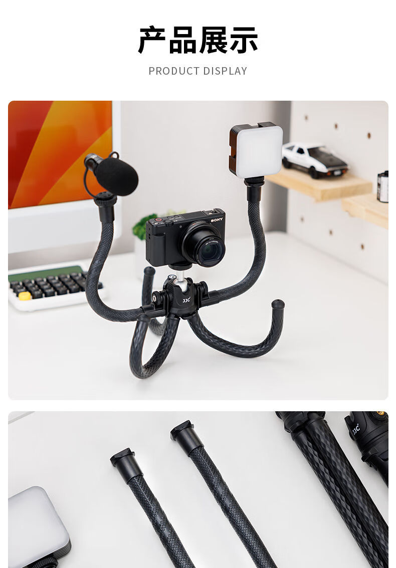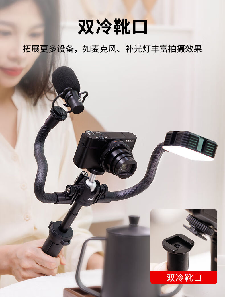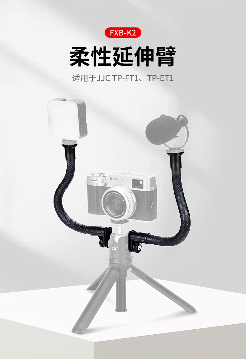 Jingmengyuan tripod extension arm is used with TP-FT1/TP-ET1 tripod, flexible hose, foldable at multiple angles, with cold shoe opening, expandable fill light for photography and photography, 2 extension arms + octopus holder (including mobile phone clip)