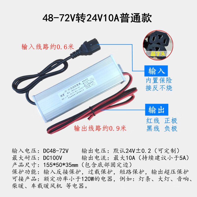 MPPMCK electric vehicle prefix converter light box floor lamp transformer 48V60V72V to 12V24 48-72V to 12V10A prefix ordinary model