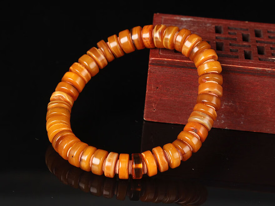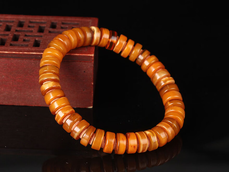 Zhenghe Jewelry Beeswax Chicken Fat Yellow Abacus Bead Bracelet weighs about 9.10 grams