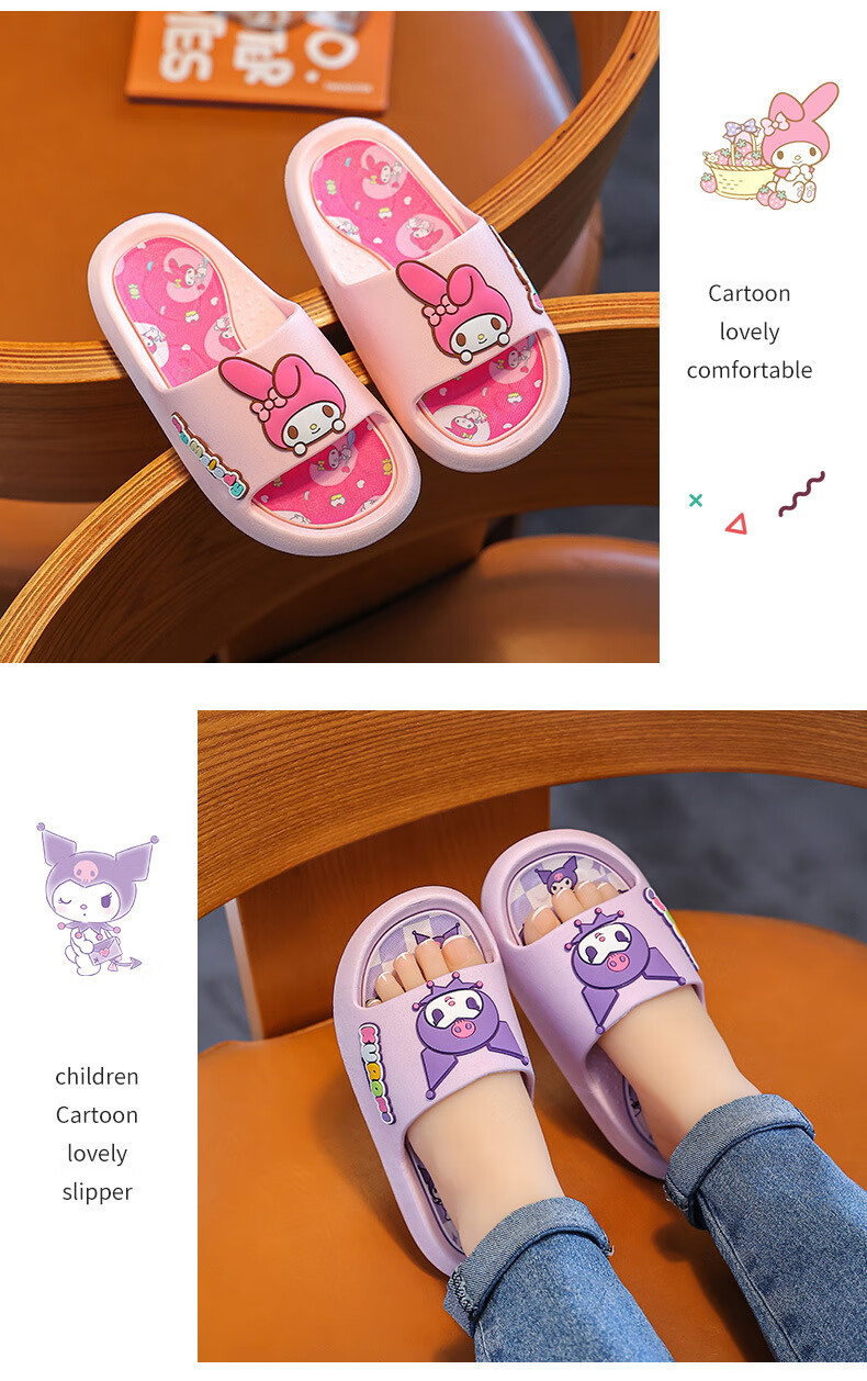 Mai Chao Shang Children's Slippers Cartoon Cute Summer Home Indoor Sandals Kuromi Girls Non-Slip Parent-Child Slippers 2808 Model ** Kuromi Purple Size 32-33 Inner Length 20.5CM