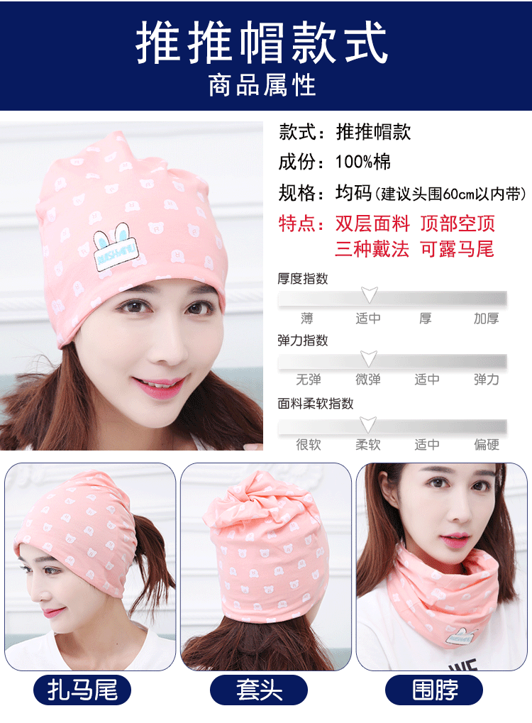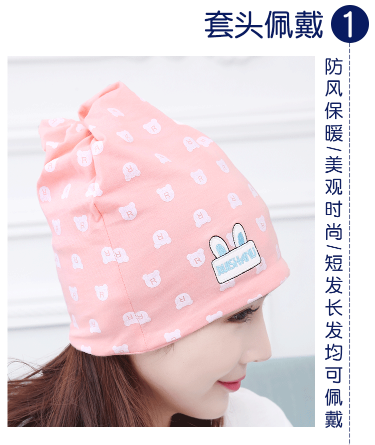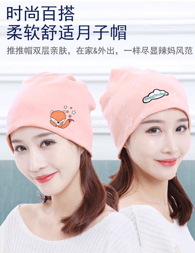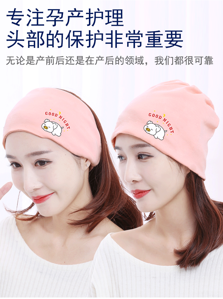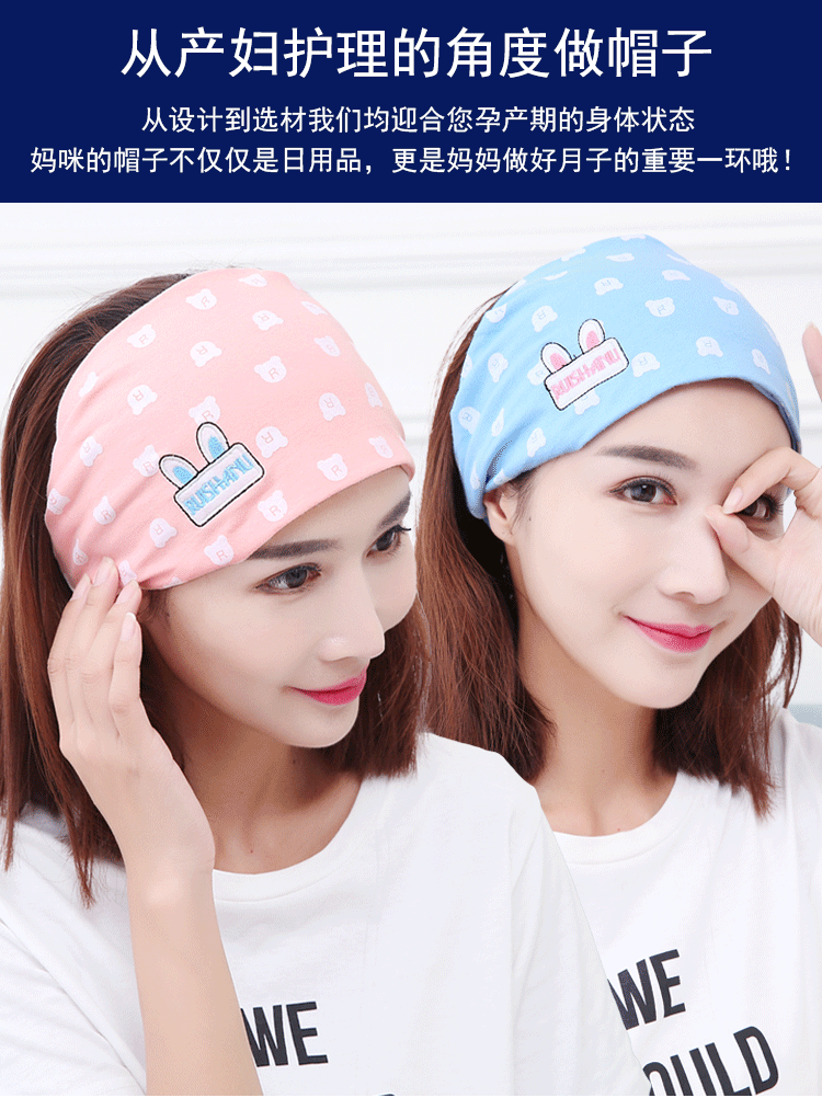Confinement hat postpartum summer thin pure cotton maternity hat maternity scarf headband women's windproof forehead protector spring and autumn fashion Papa rabbit scarf blue + Papa rabbit pile hat blue