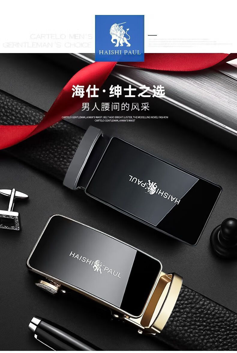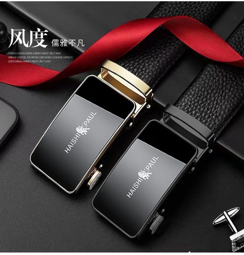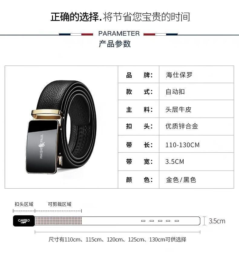 100% genuine leather Paul 2025 new men's belt middle-aged automatic belt men's jeans 120cm suitable for 140-180Jin Jin equals 0.5kg can be cut