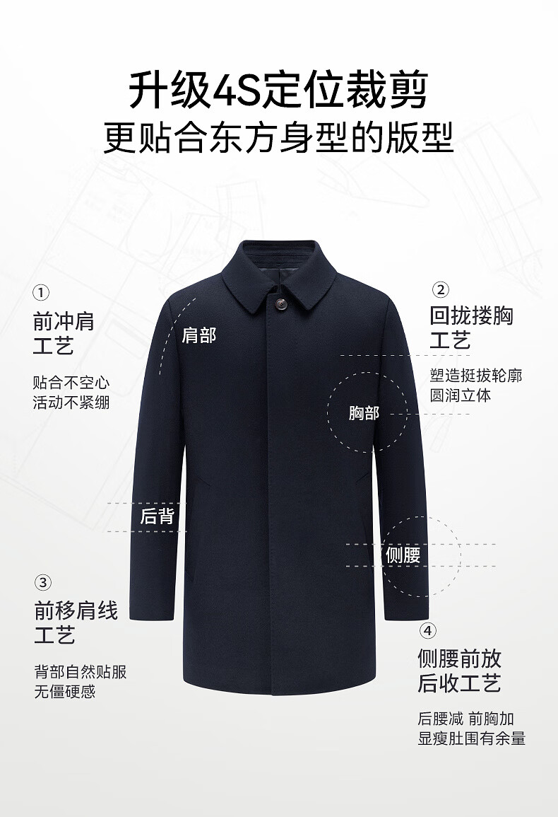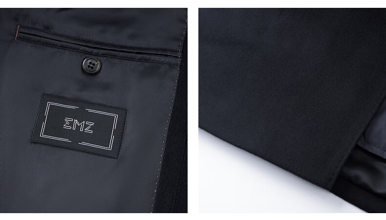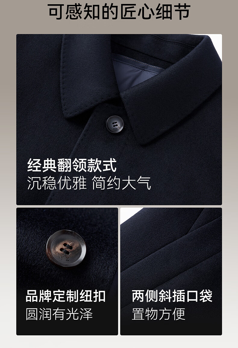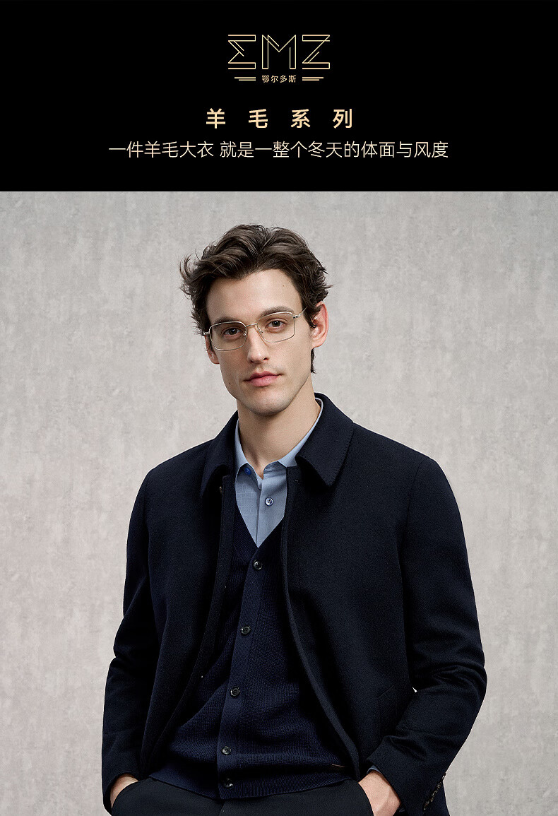 EMZ Ordos removable goose down liner winter wool cashmere business woolen thickened coat jacket for men Navy 2XL 185/104A