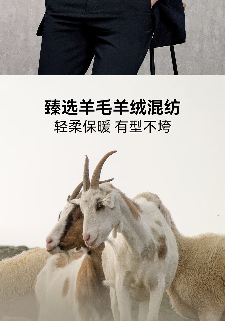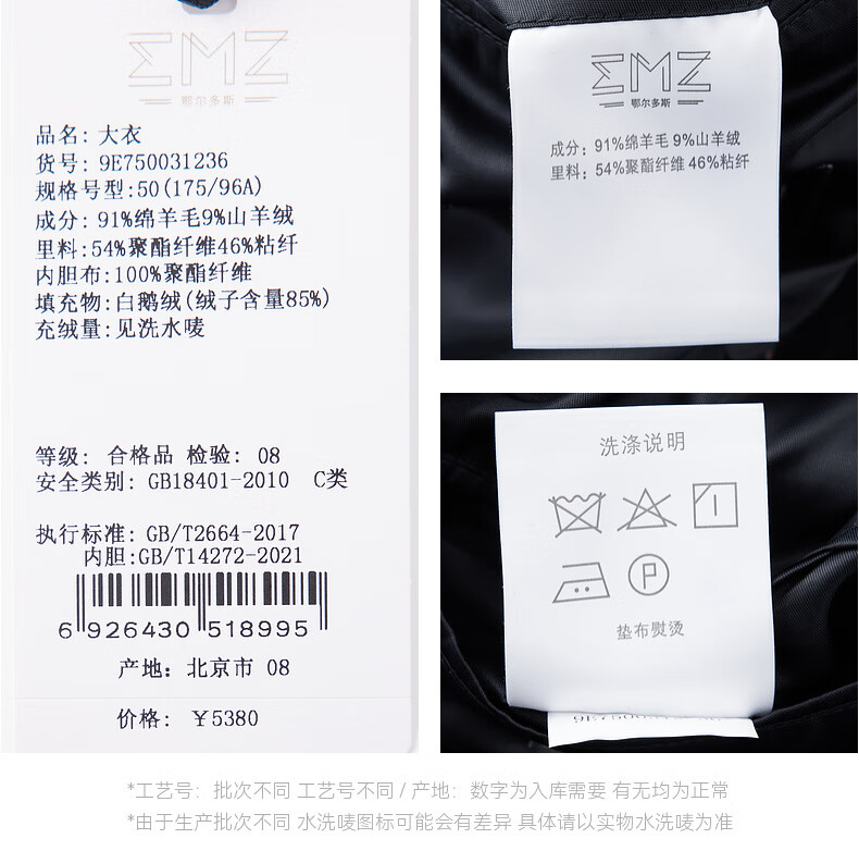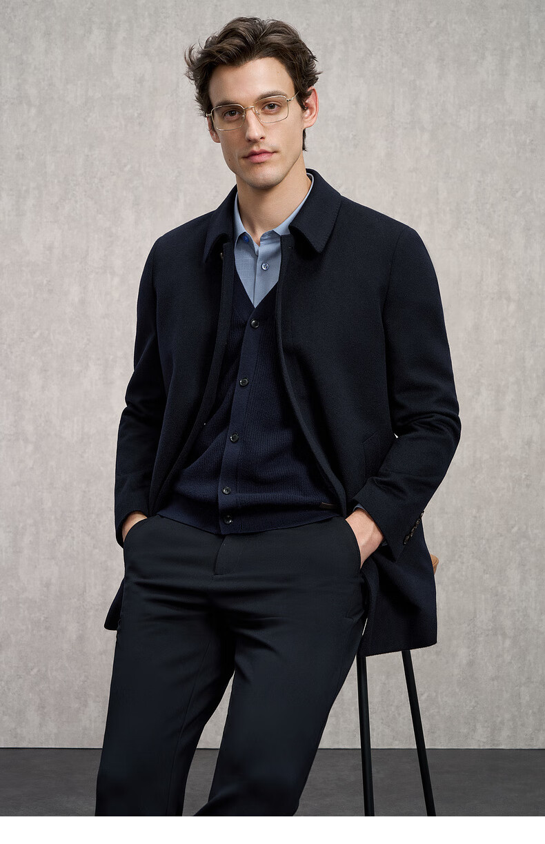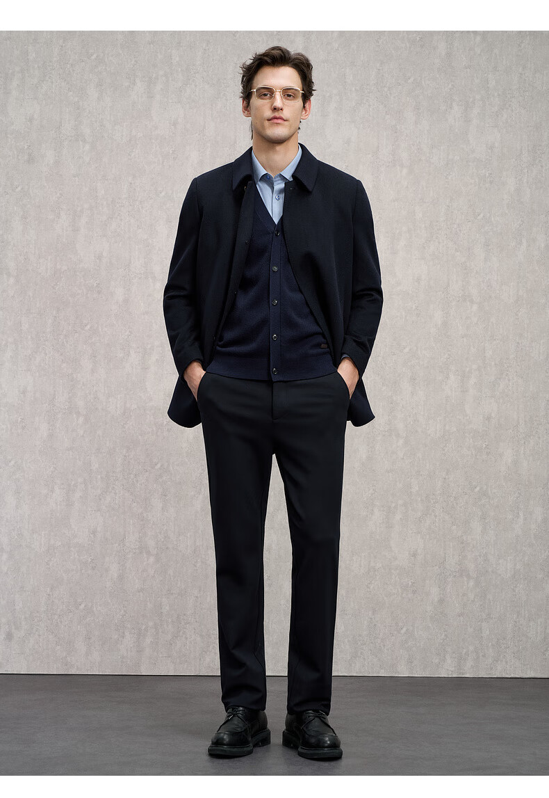 EMZ Ordos removable goose down liner winter wool cashmere business woolen thickened coat jacket for men Navy 2XL 185/104A
