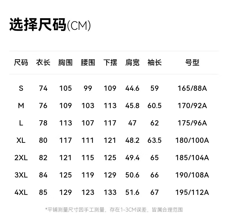 China (cm) 165 / 88-90 170 / 96-98 175 / 108-110 180 / 118-122 185 / 126-130
