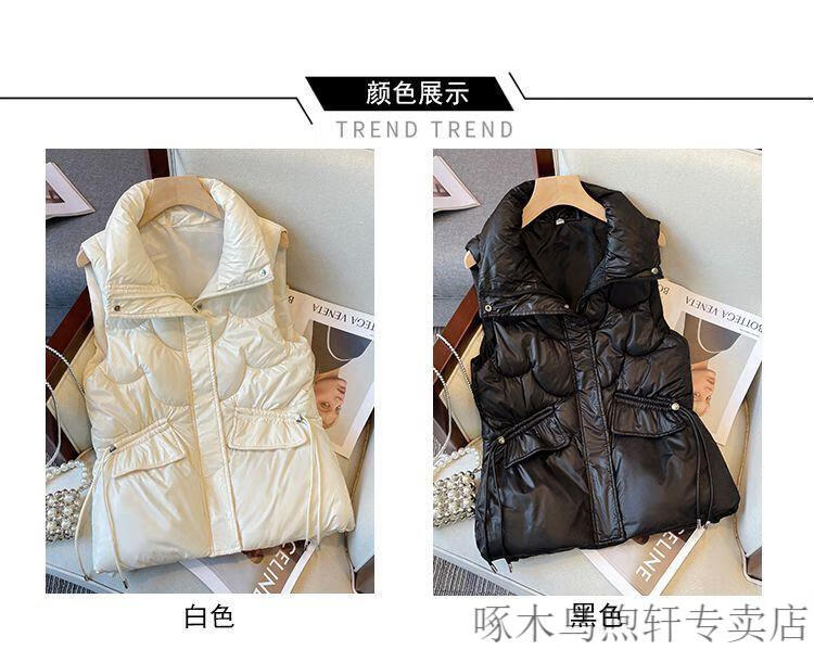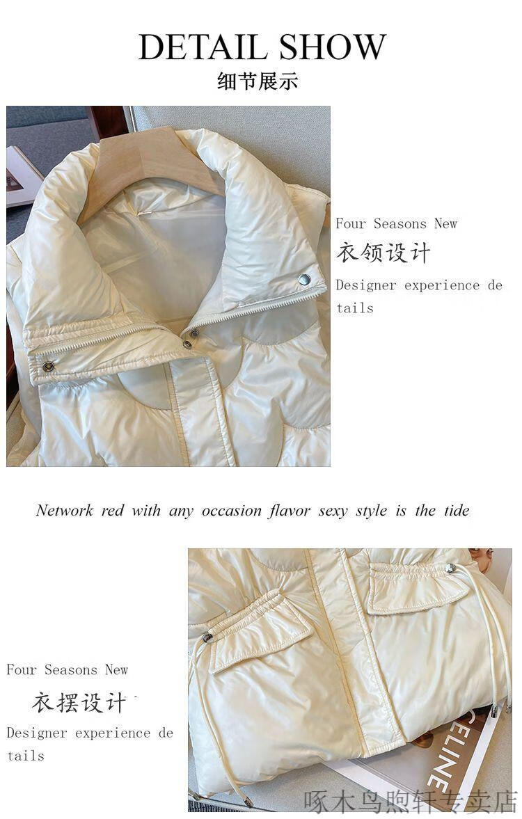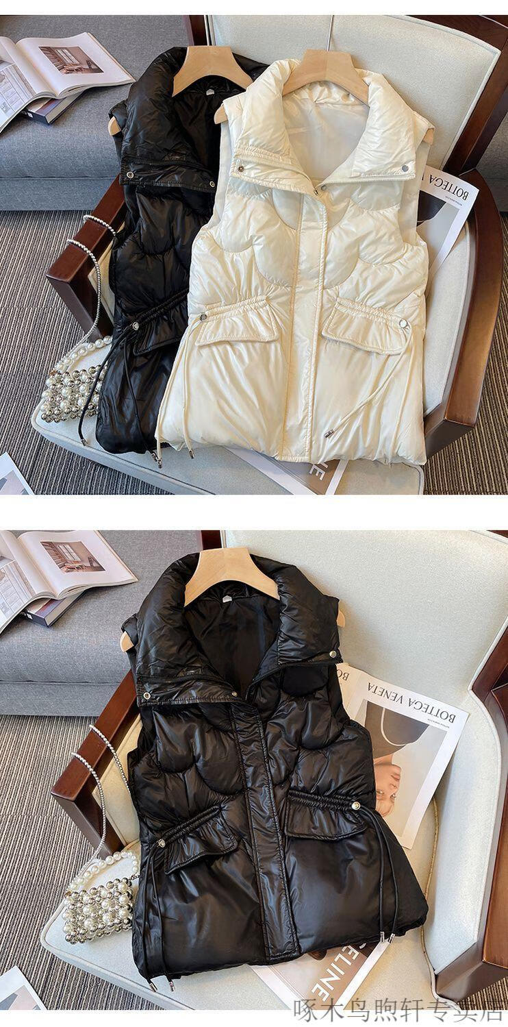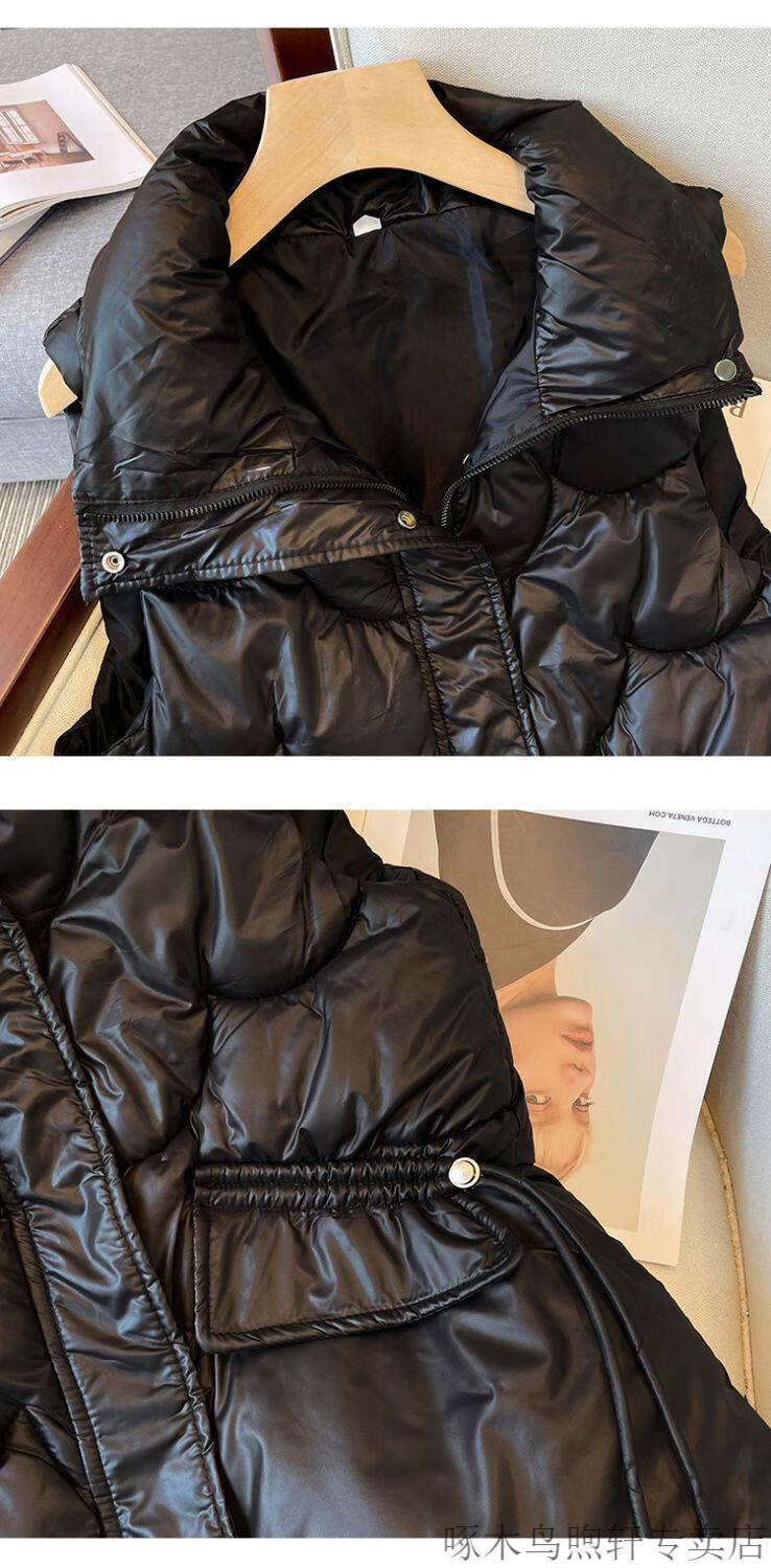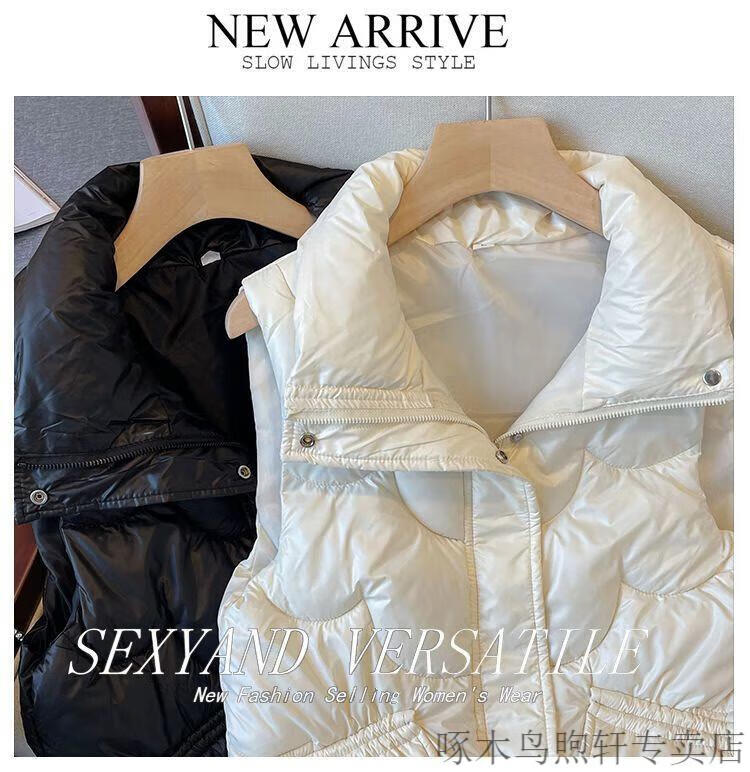 Woodpecker no-wash glossy down cotton vest for women 2025 autumn and winter Korean style short loose stand-up collar waistcoat vest black 618 black XL recommendation 120-140Jin Jin equals 0.5 kg