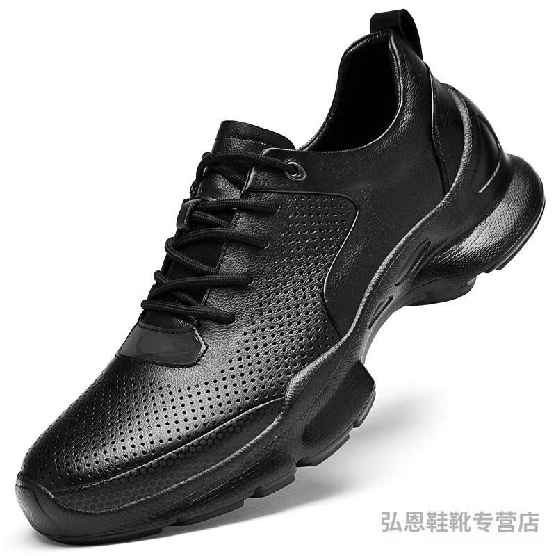 Sachi Men's Shoes 2025 New Genuine Leather Soft Soled Casual Shoes Business Breathable Versatile Leather Shoes Men's Sports and Walking Autumn Black Non-Porous 40 Standard Sports Shoe Size