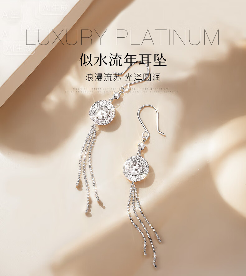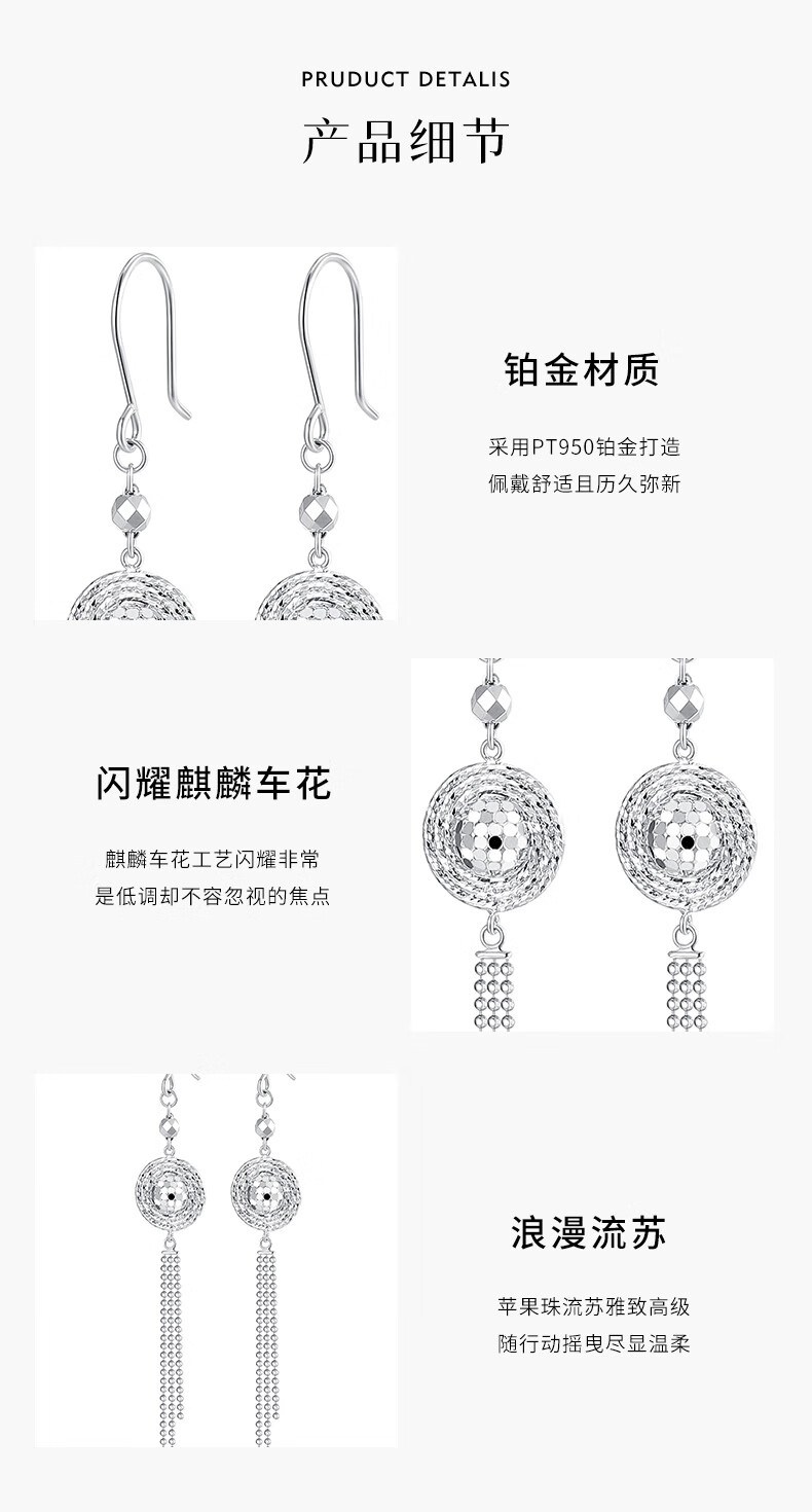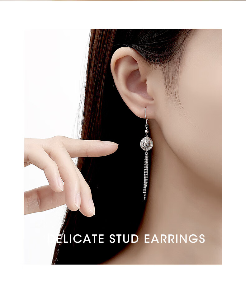 Aido Diamond pt950 platinum earrings for women, genuine platinum temperament tassel ear hooks, fashionable and versatile round earrings, a pair, weighing 4.7-4.9g