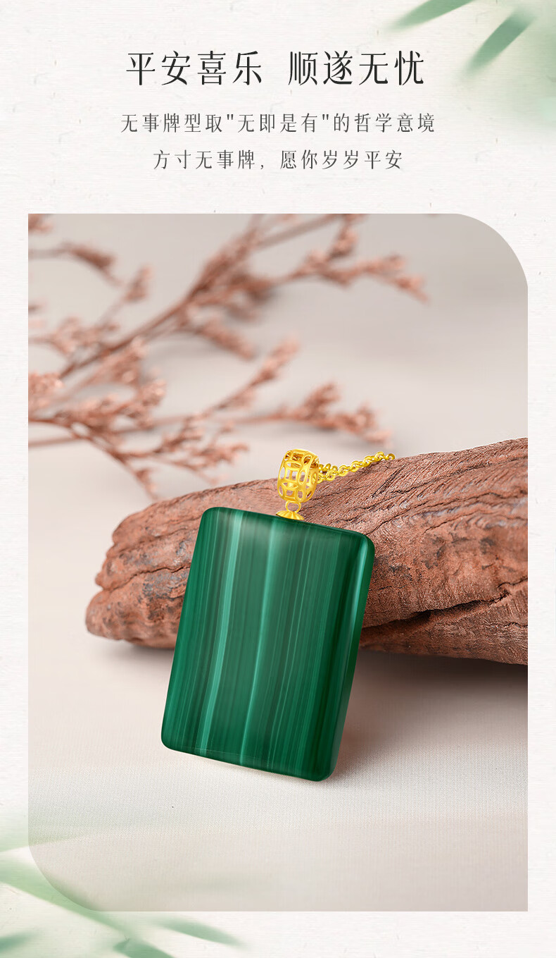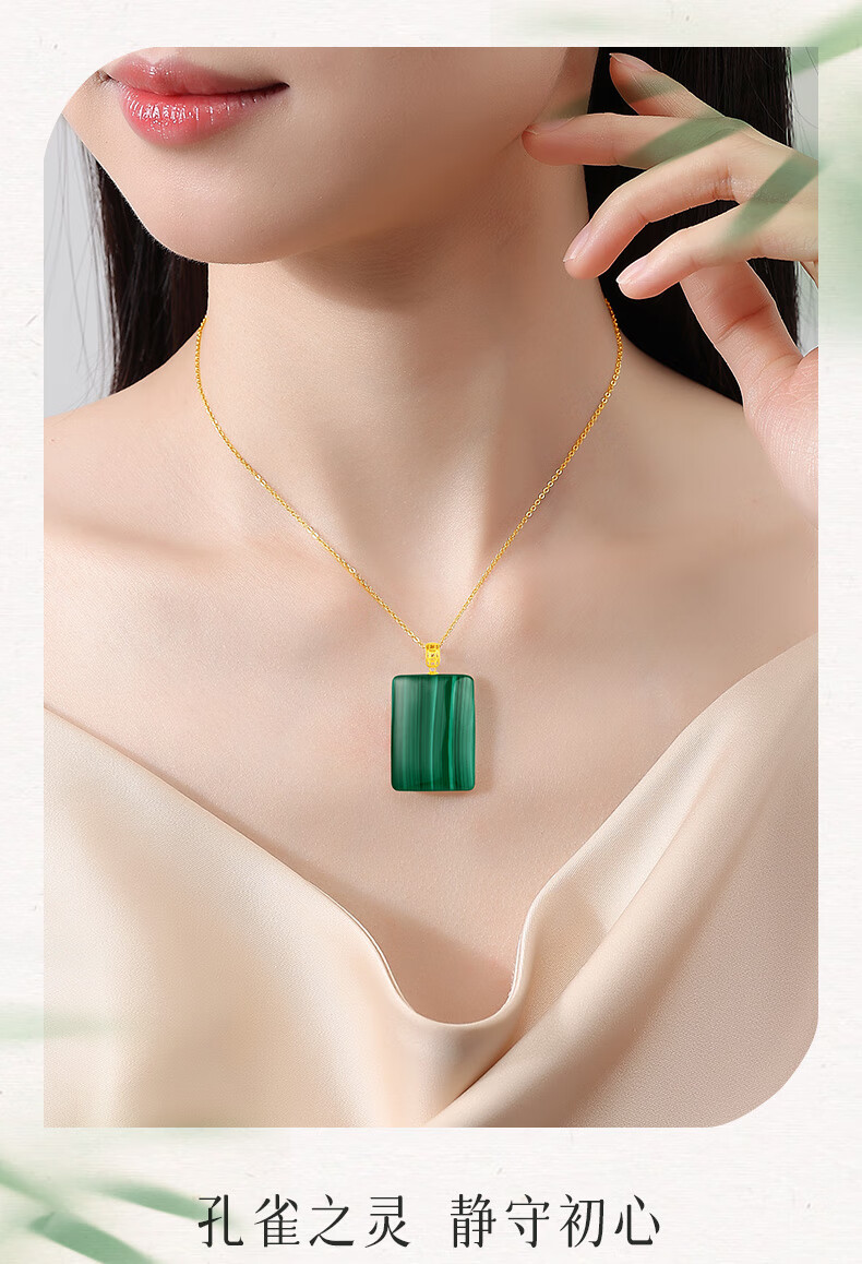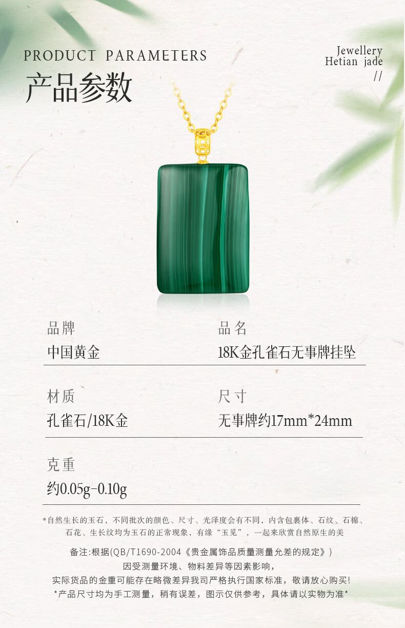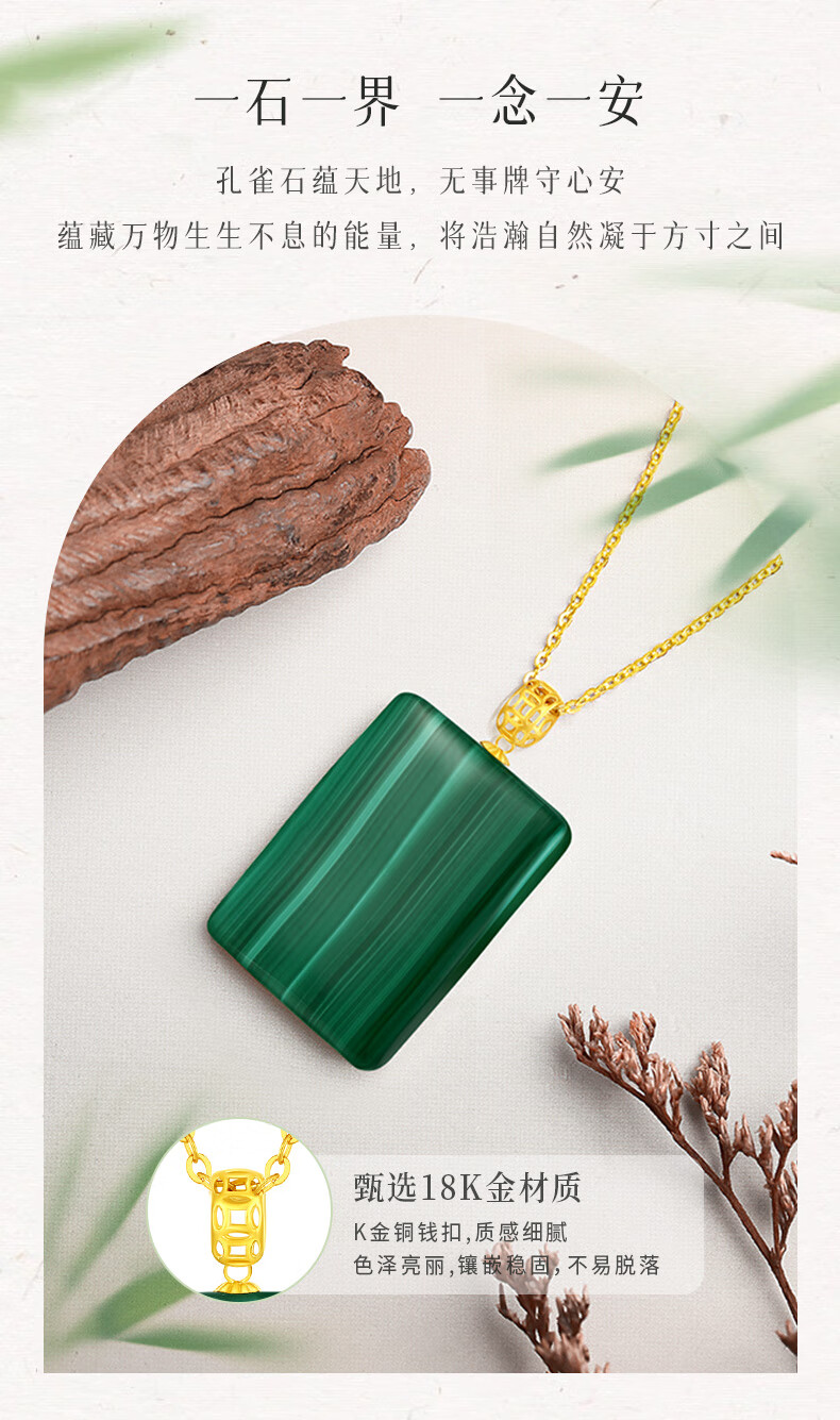 China Gold (CHINA GOLD) Wushi brand 18k gold necklace for women, malachite pendant birthday gift for girlfriend and wife 18K gold Wushi brand malachite pendant, free S925 chain