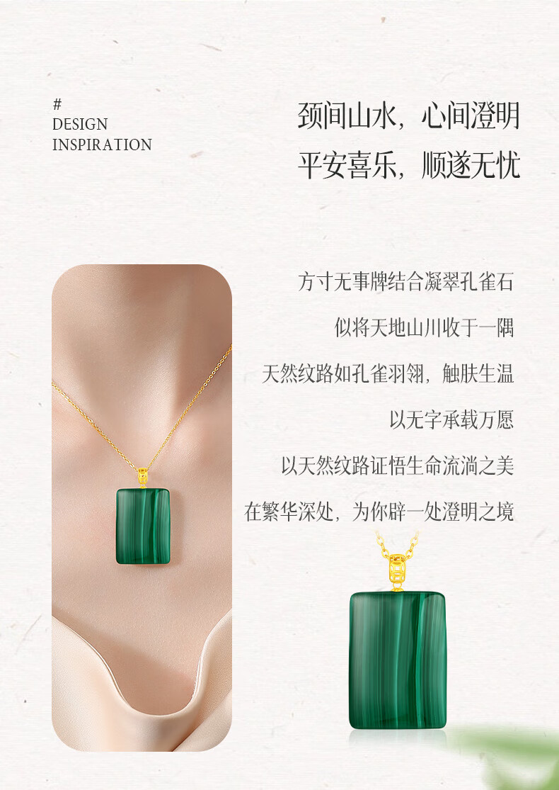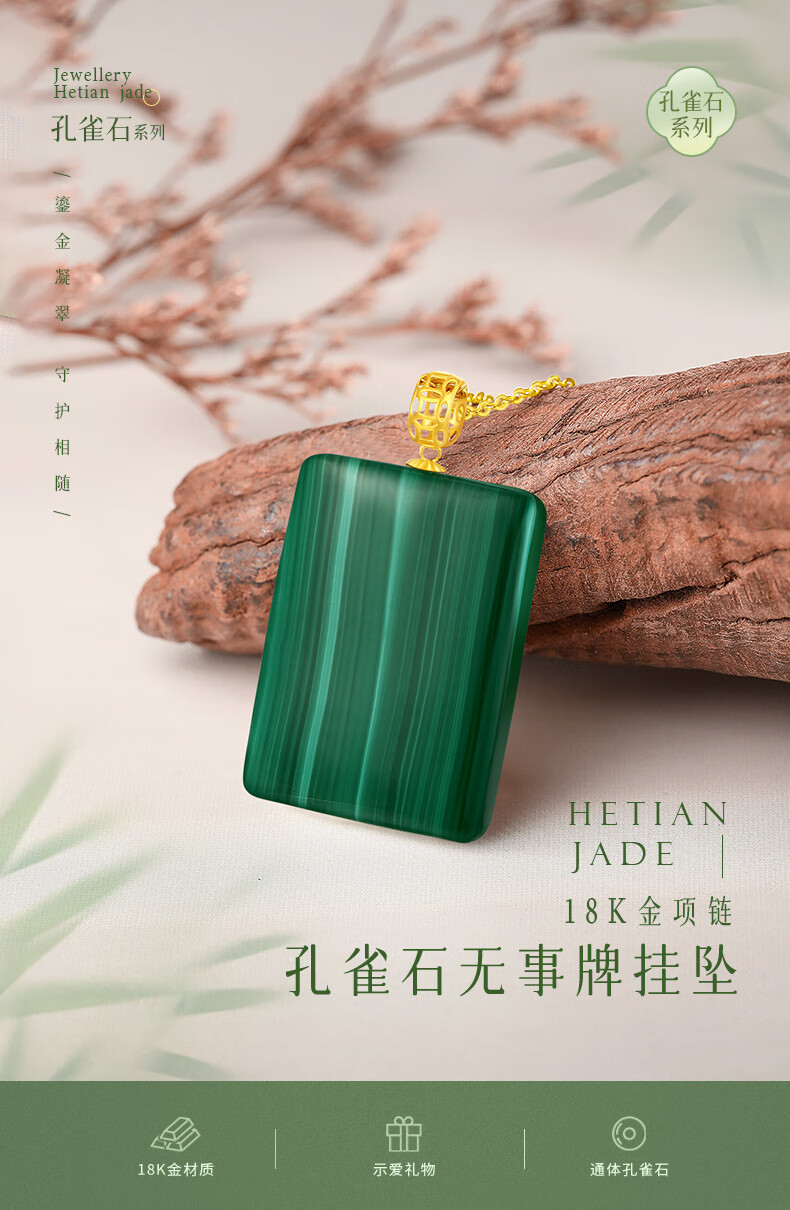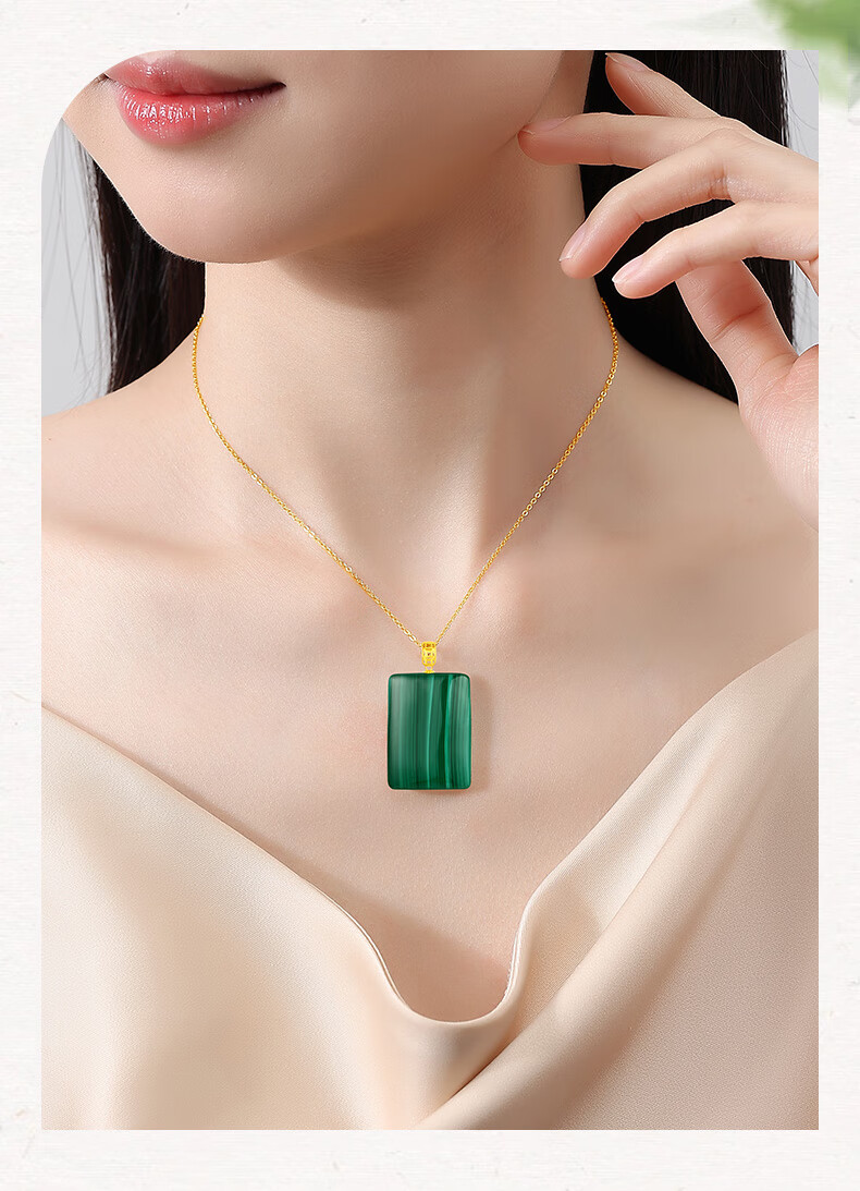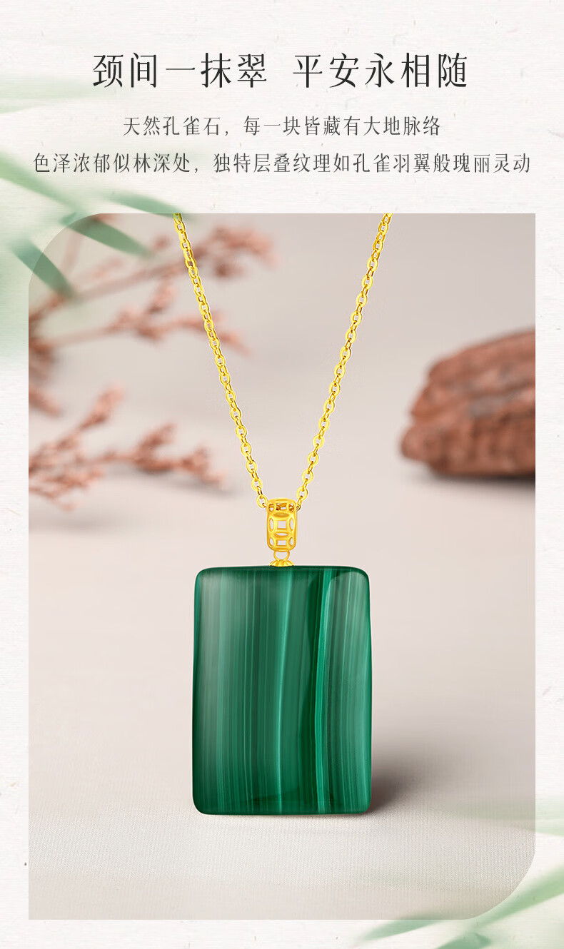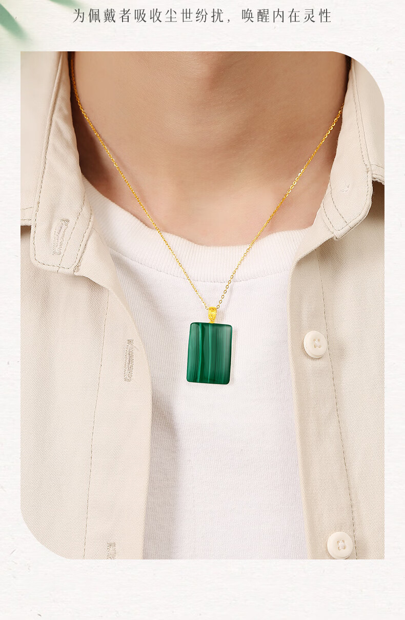 China Gold (CHINA GOLD) Wushi brand 18k gold necklace for women, malachite pendant birthday gift for girlfriend and wife 18K gold Wushi brand malachite pendant, free S925 chain