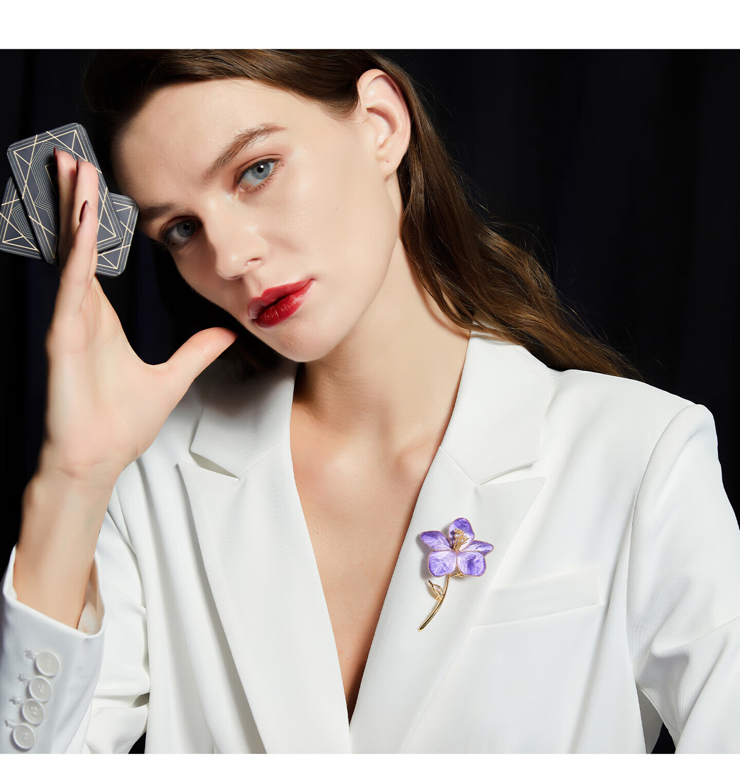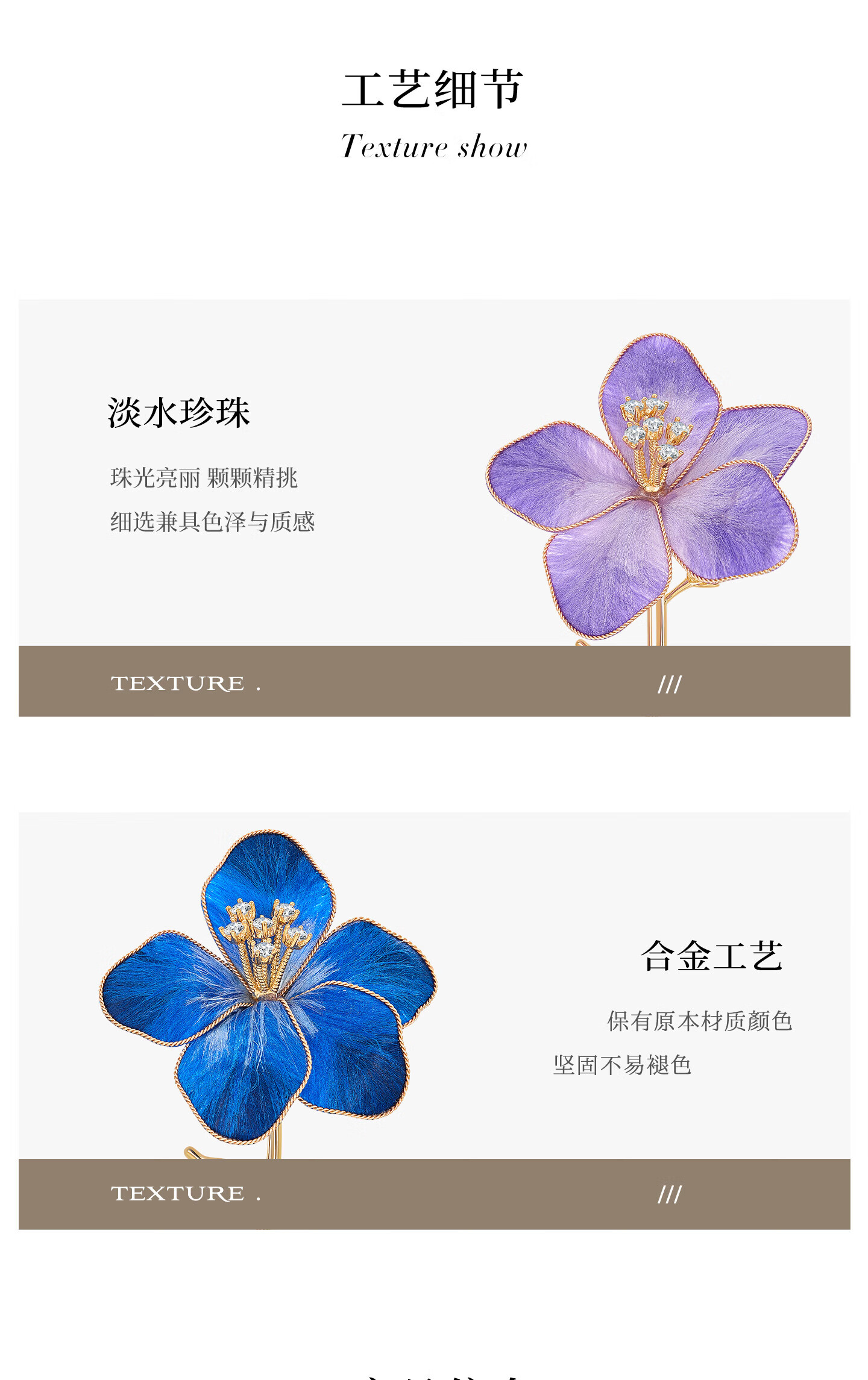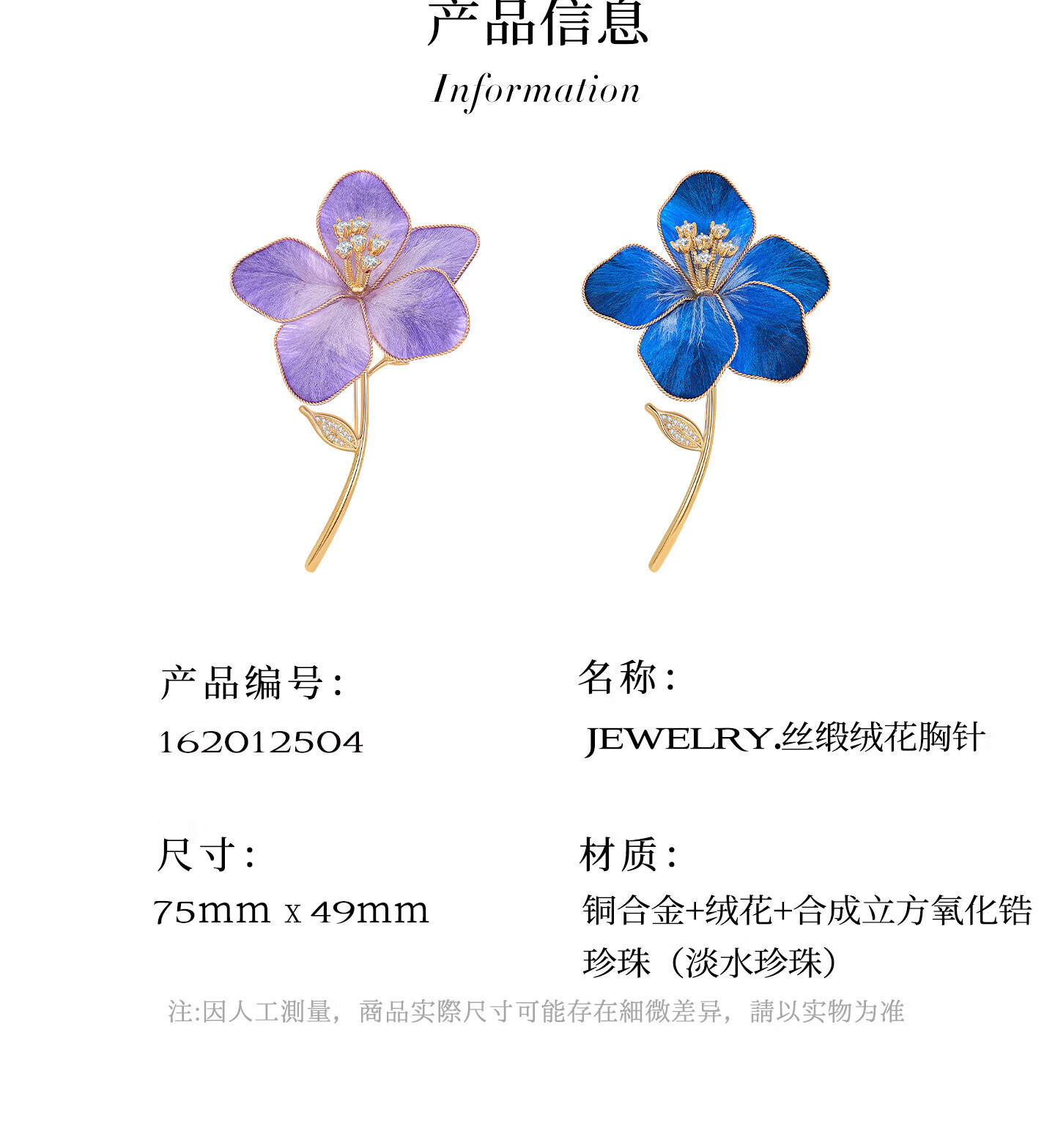 Jay's intangible cultural heritage handmade iris velvet flower brooch, temperament brooch, birthday gift for elder mother and mother-in-law, Yalan (velvet flower + pearl)