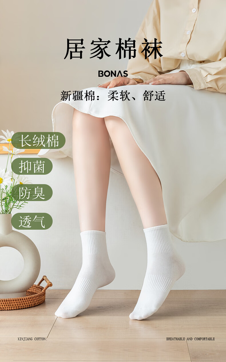 BONAS socks women's socks summer breathable confinement socks medium tube deodorant ins trendy cotton socks new medium tube black 5 pairs one size fits all Add to favorites = try on 1 pair