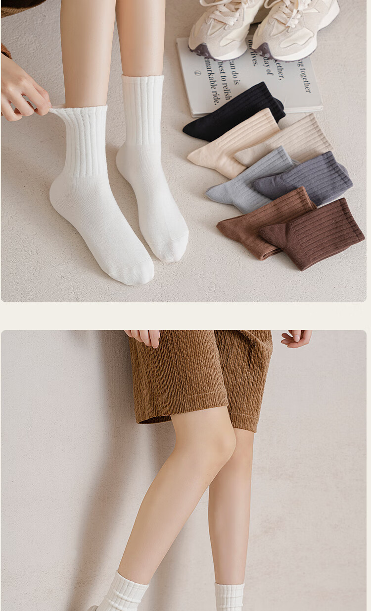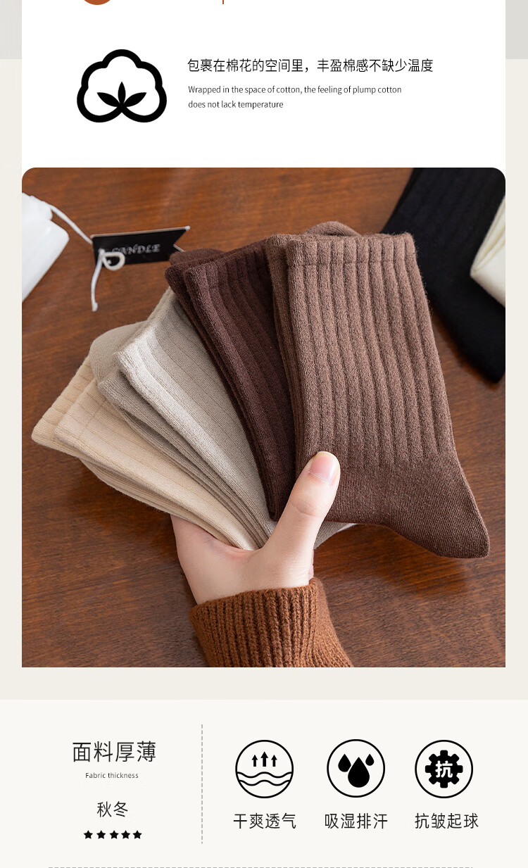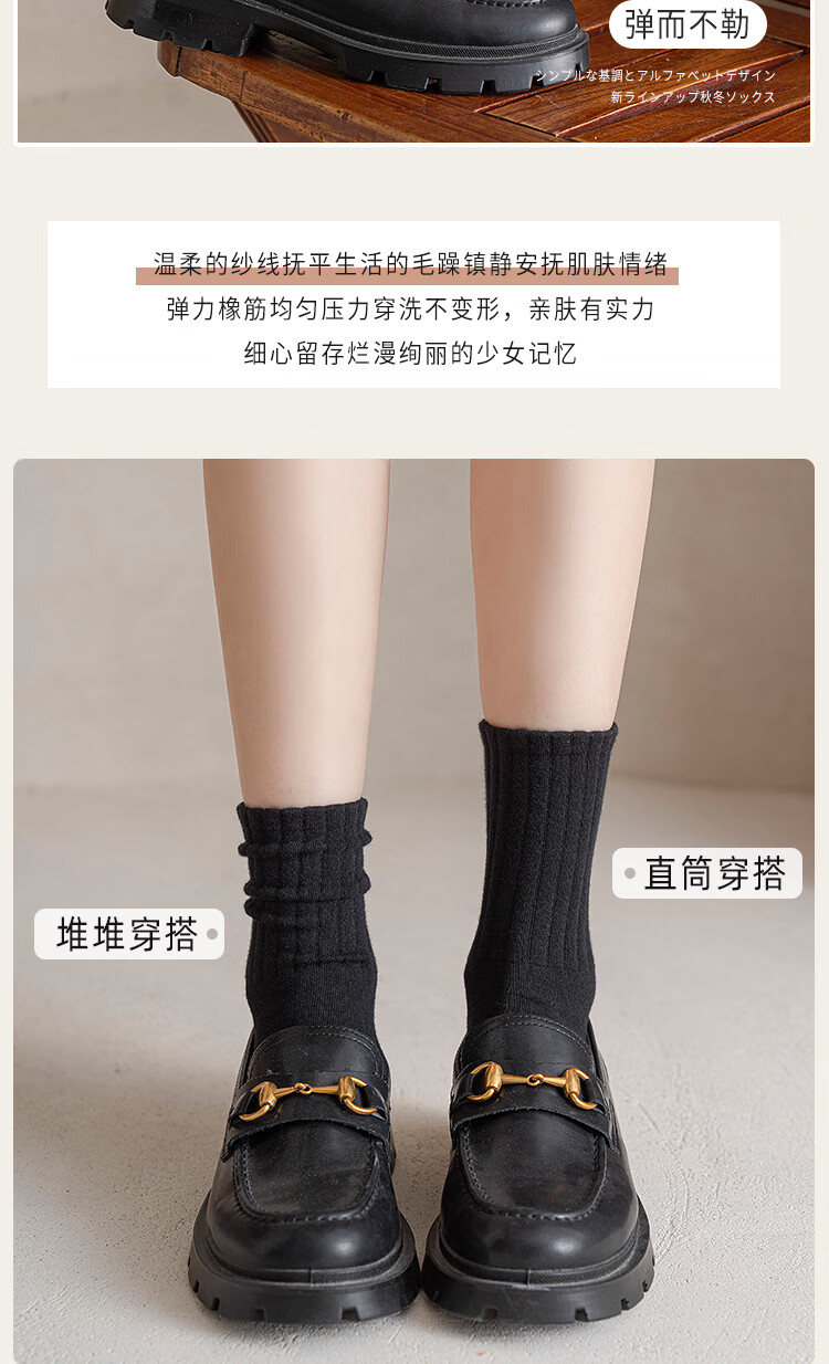 BONAS black thickened mid-calf cotton socks autumn and winter warm boneless pile socks new style black_main picture 4 pairs one size fits all