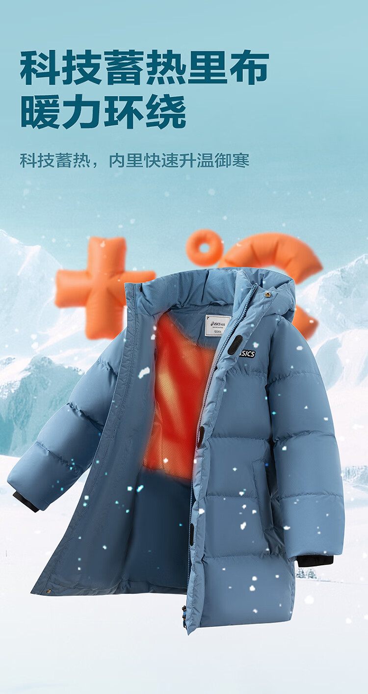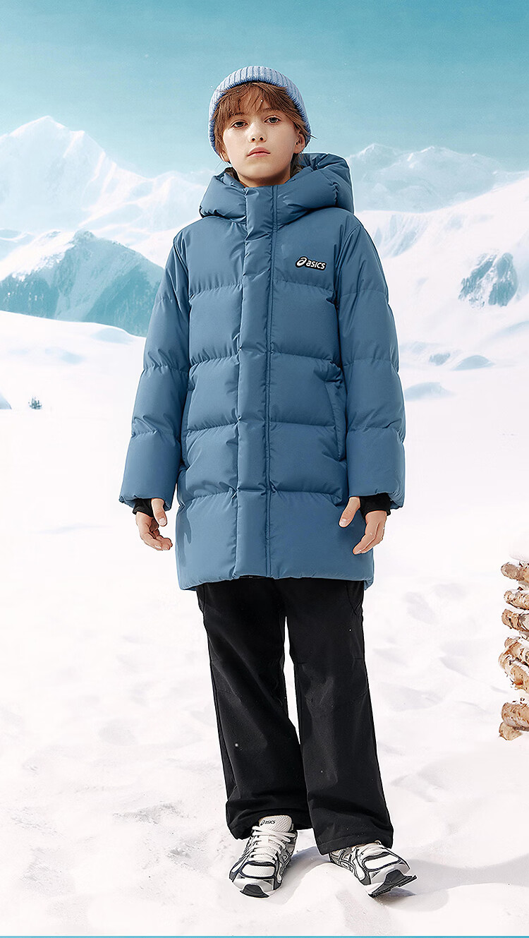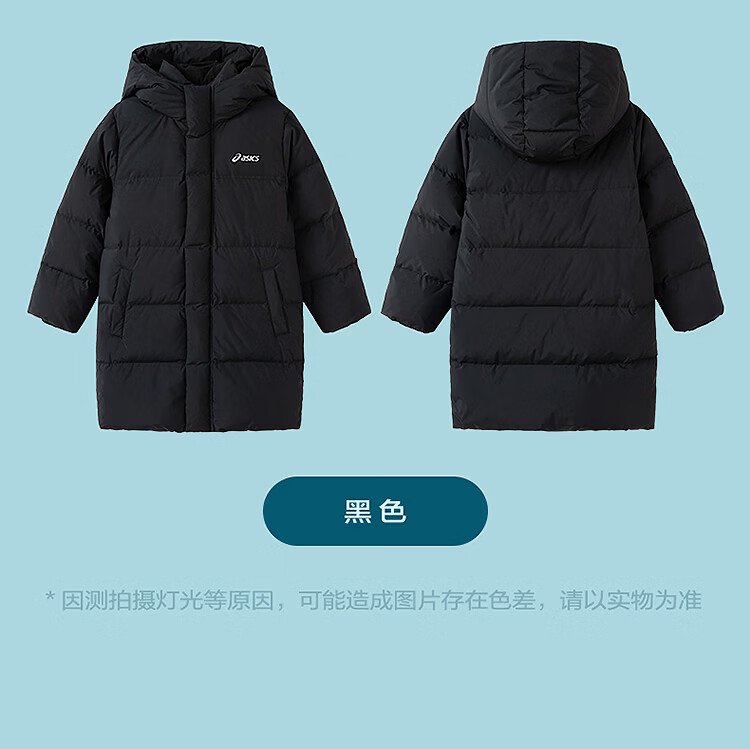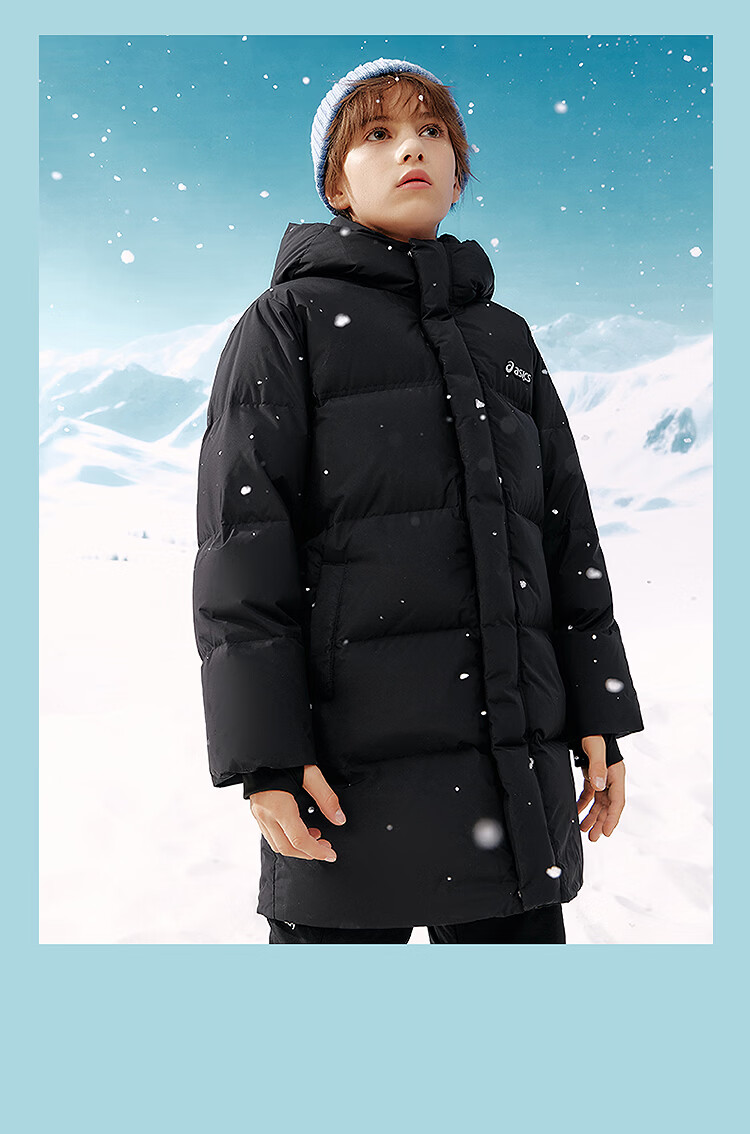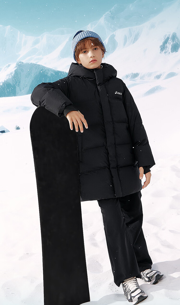 ASICS Children's Clothing 25 Years Winter Children's Mid-Length Down Jacket, Fluffy, Stylish, Thickened, Warm and Waterproof Black 85% Down 160 Filled Down 166.6g