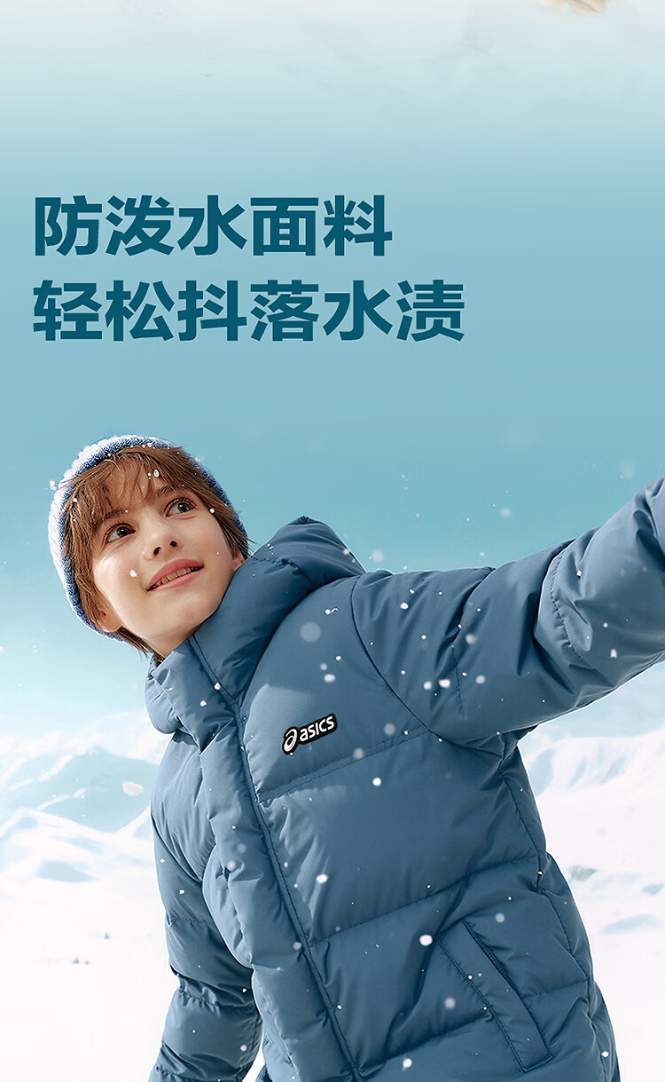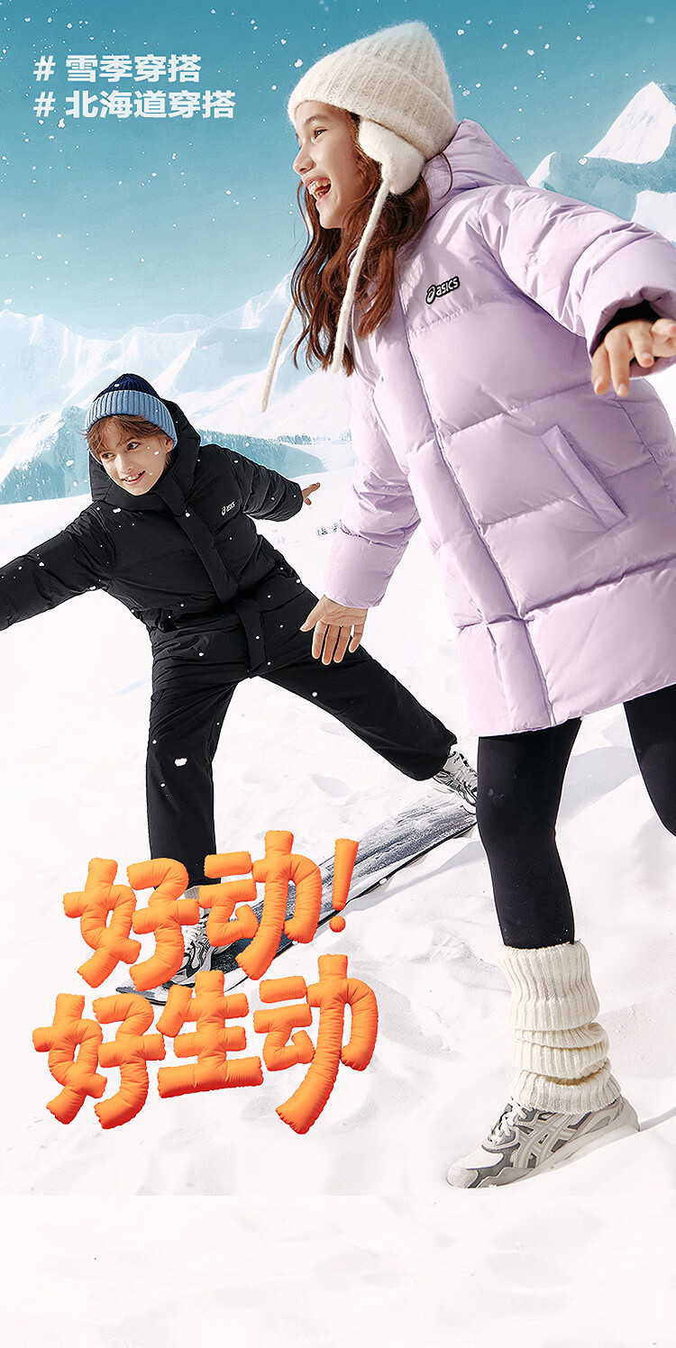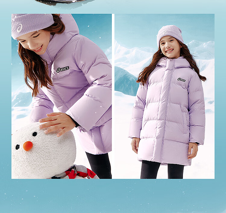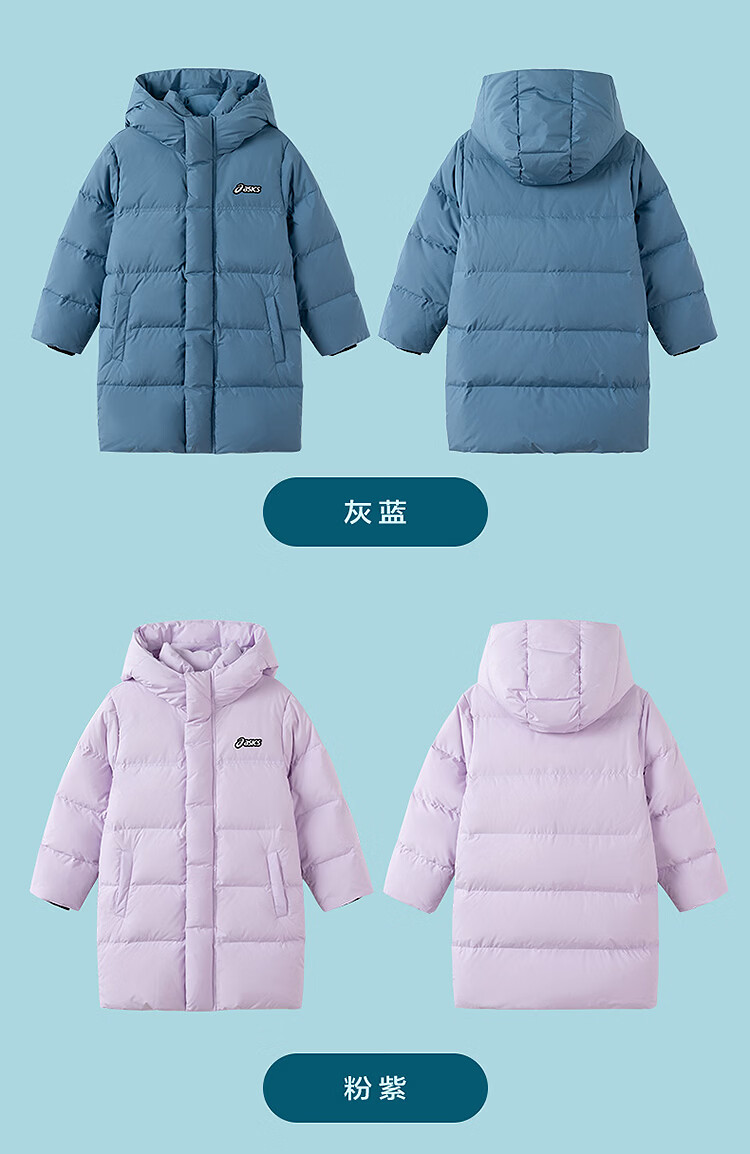 ASICS Children's Clothing 25 Years Winter Children's Mid-Length Down Jacket, Fluffy, Stylish, Thickened, Warm and Waterproof Black 85% Down 160 Filled Down 166.6g