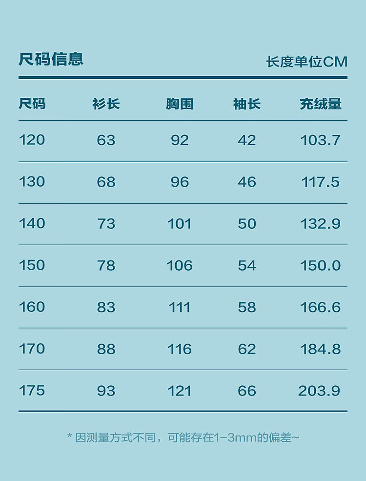 China (cm) 165 / 88-90 170 / 96-98 175 / 108-110 180 / 118-122 185 / 126-130