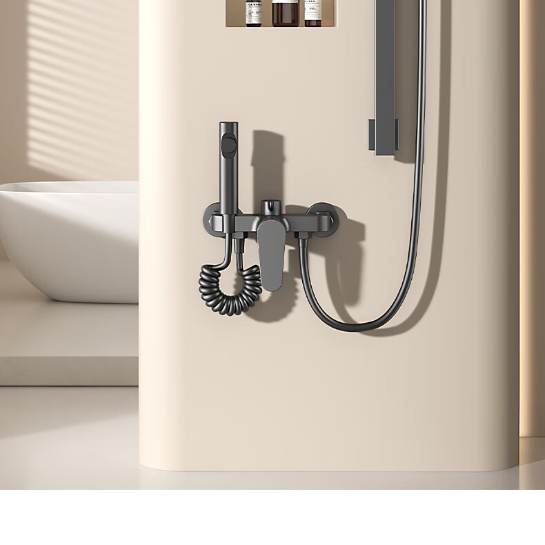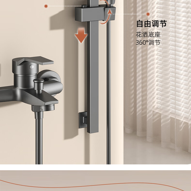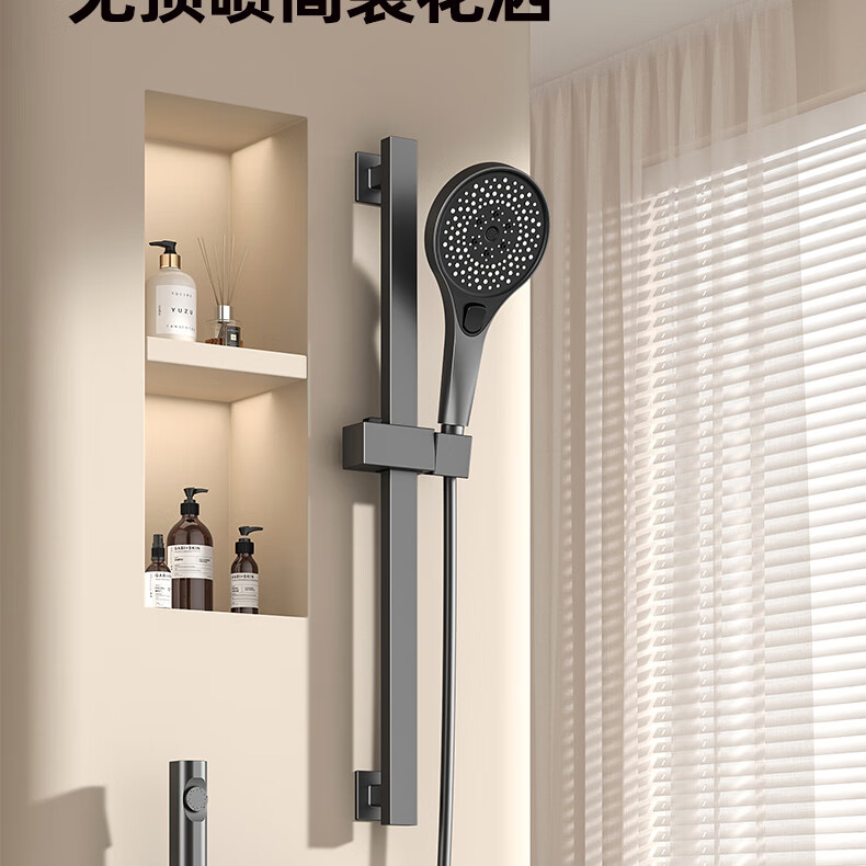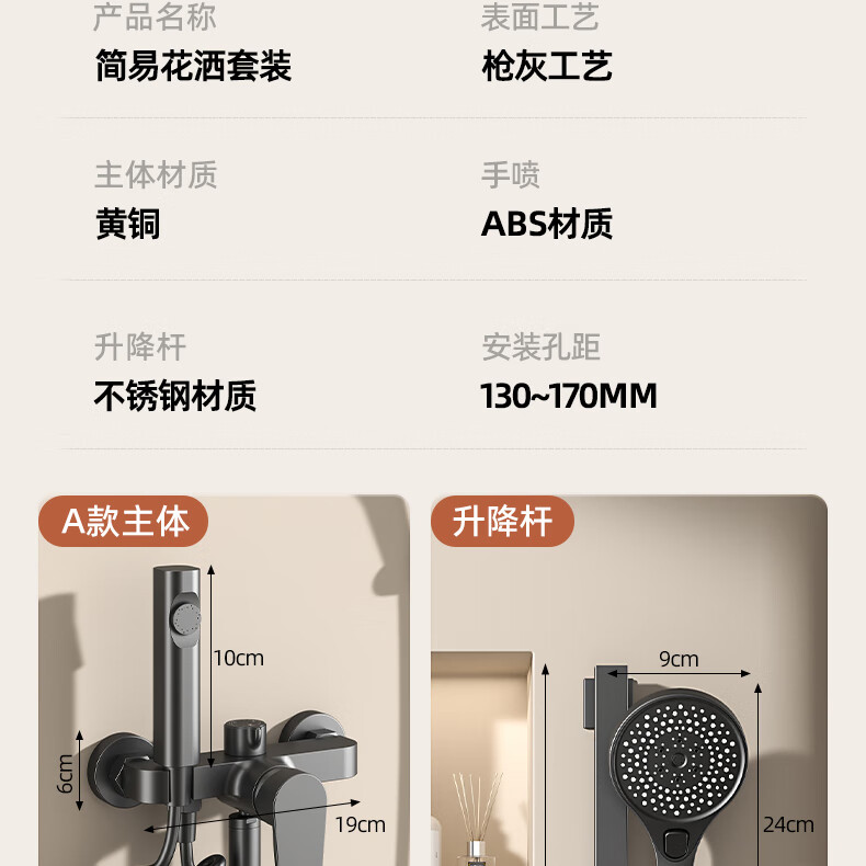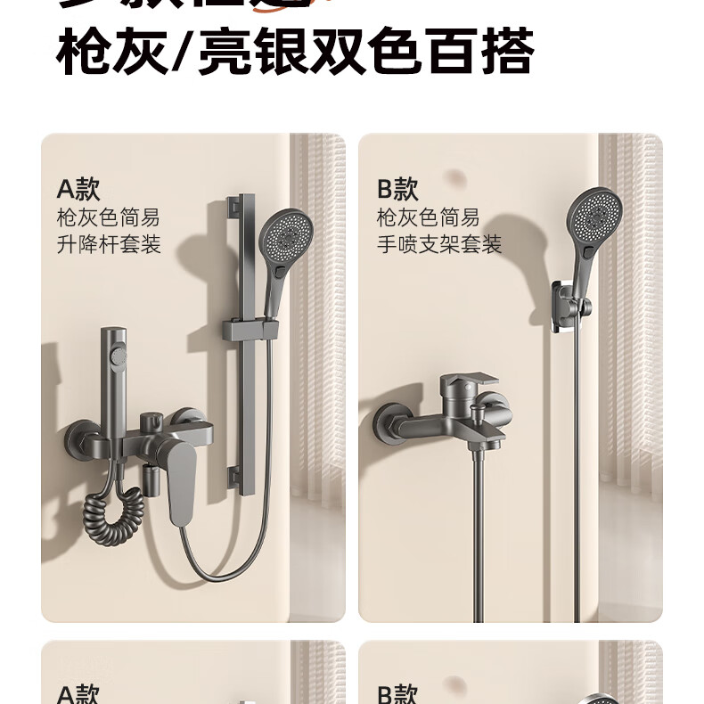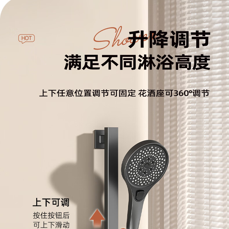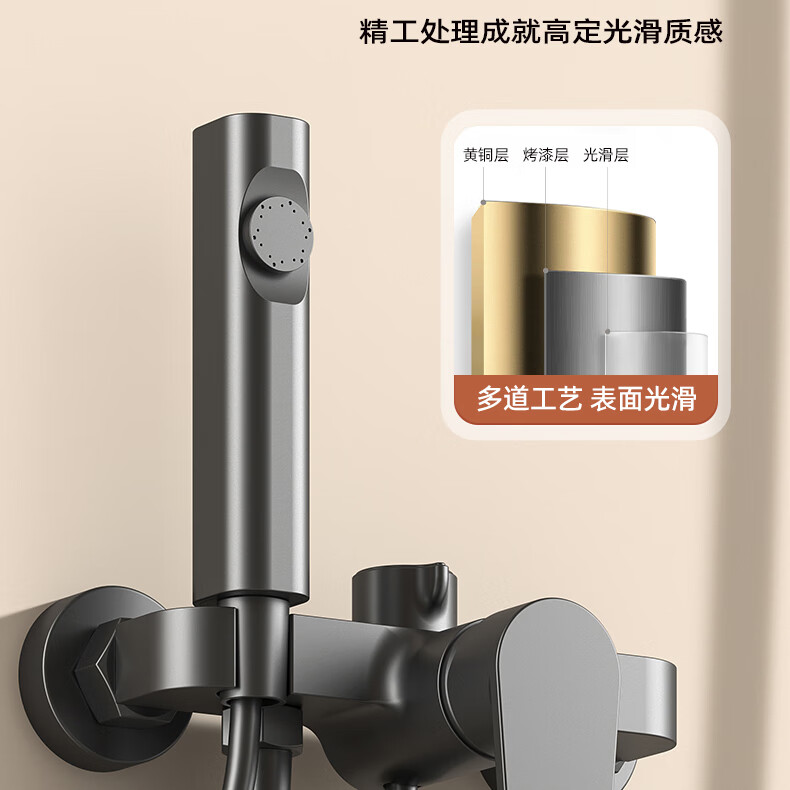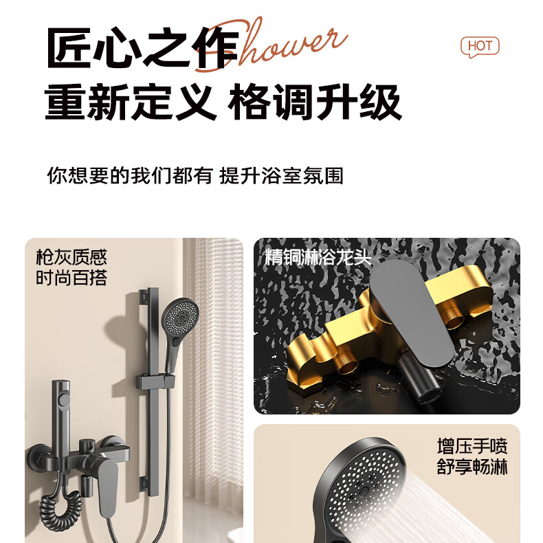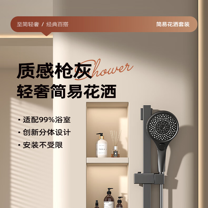 Jomoo shower head set simple roofless shower bathroom pressurized nozzle split lifting rod household all-copper mixing valve B2-gun ash simple three-function shower + lifting rod