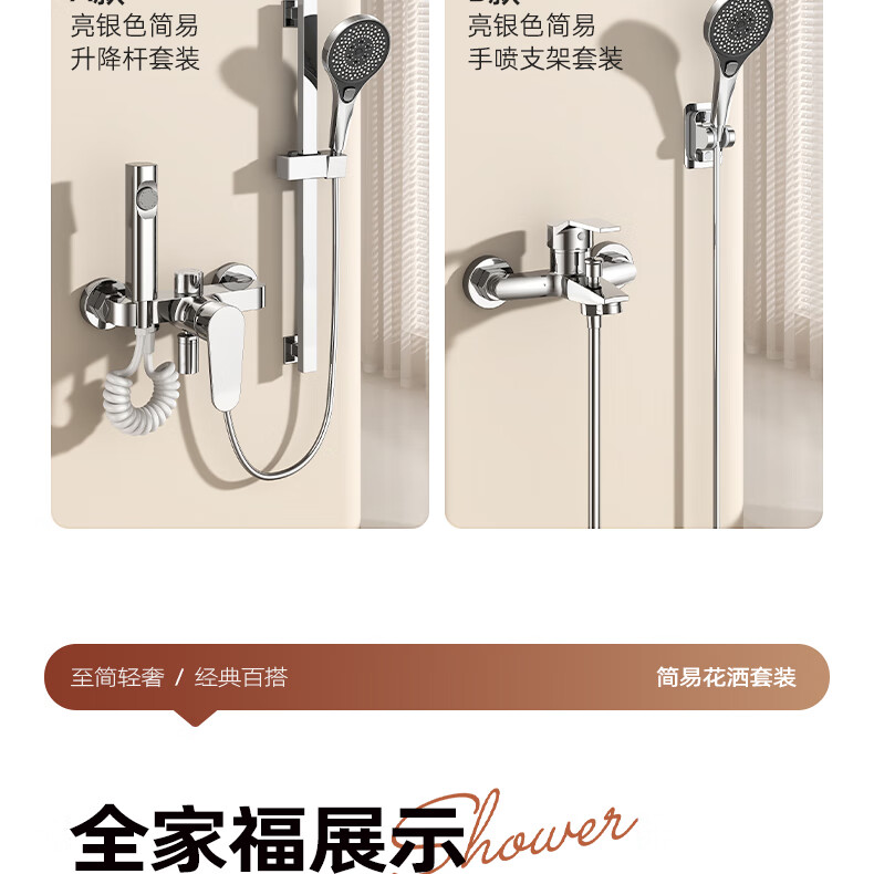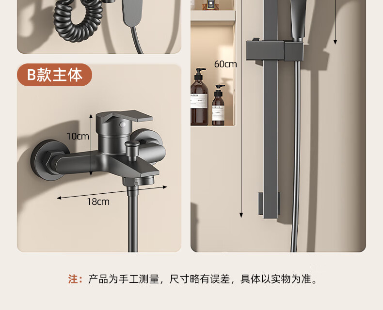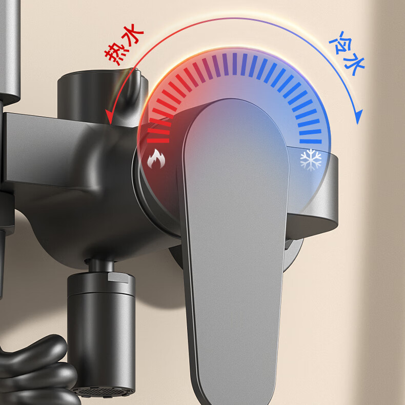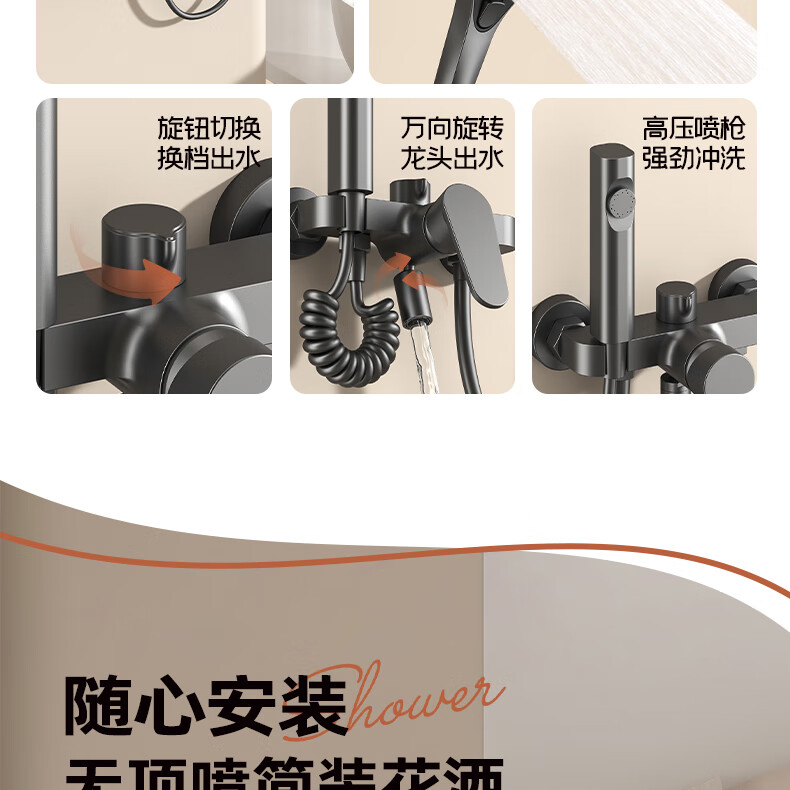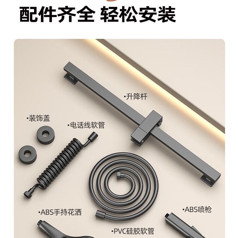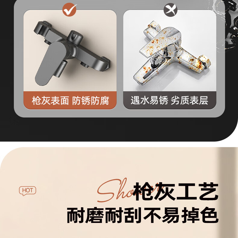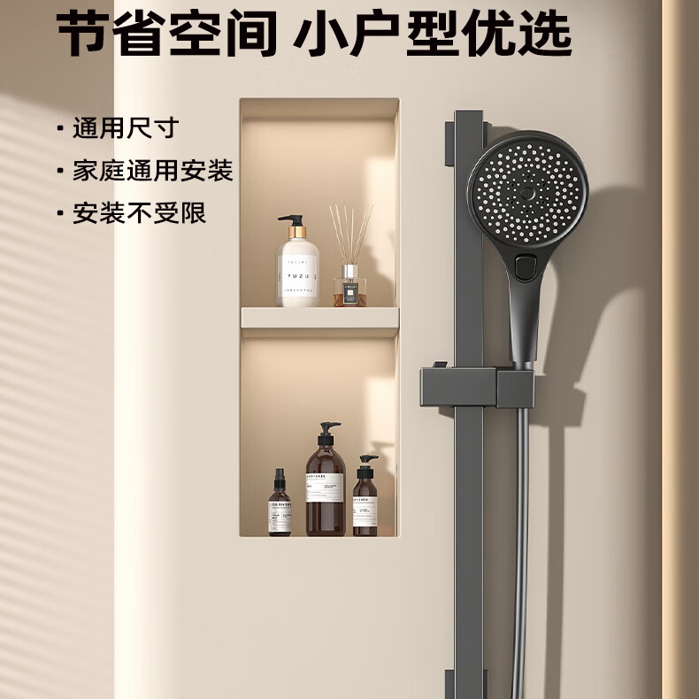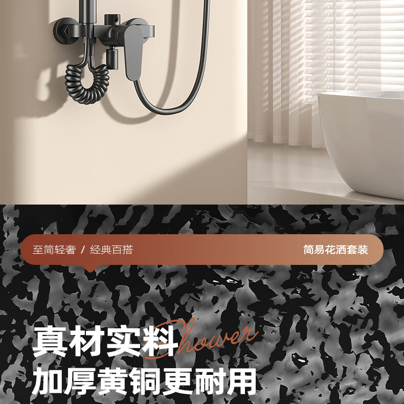 Jomoo shower head set simple roofless shower bathroom pressurized nozzle split lifting rod household all-copper mixing valve B2-gun ash simple three-function shower + lifting rod