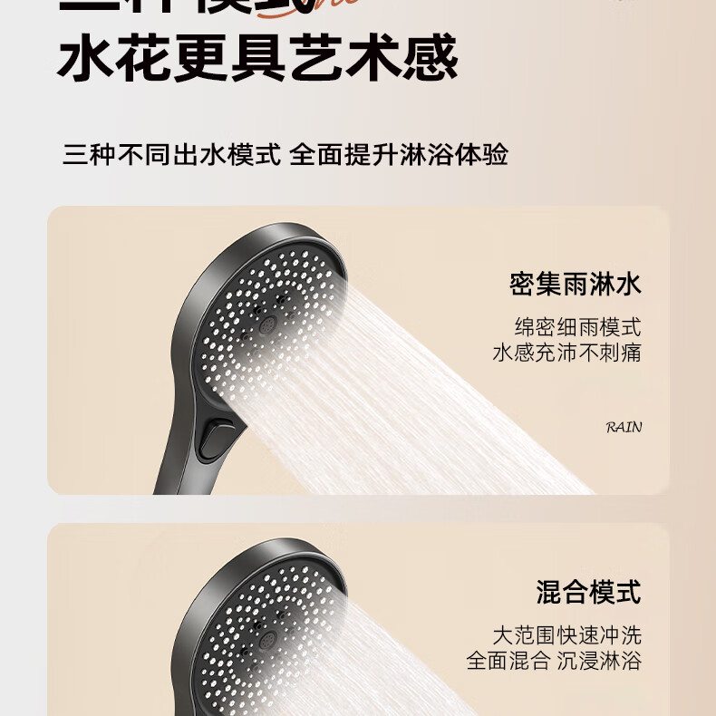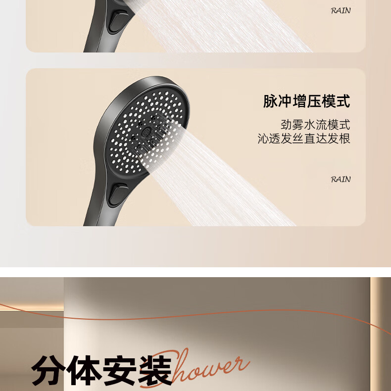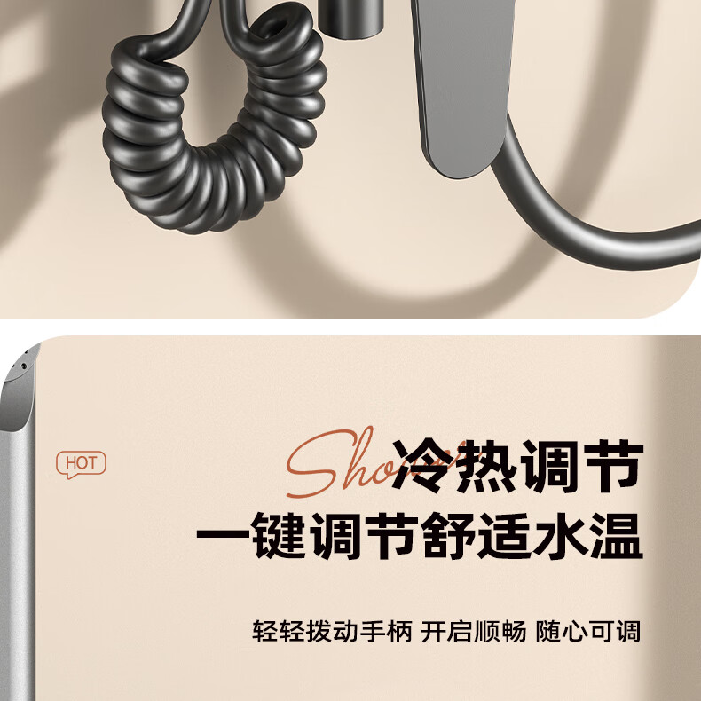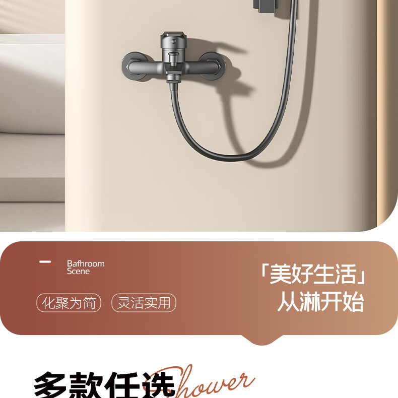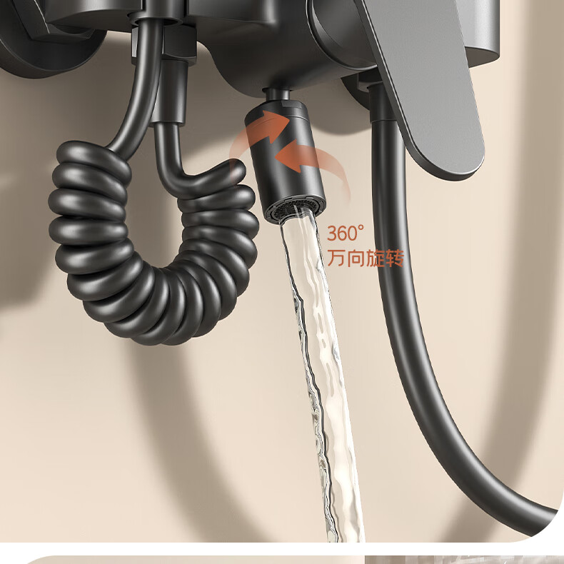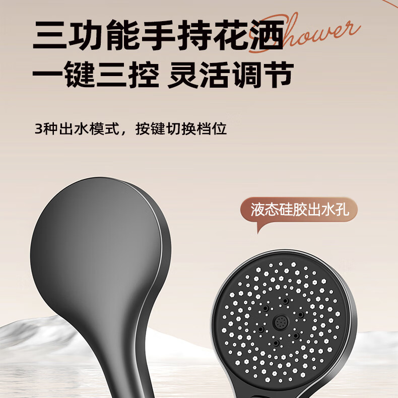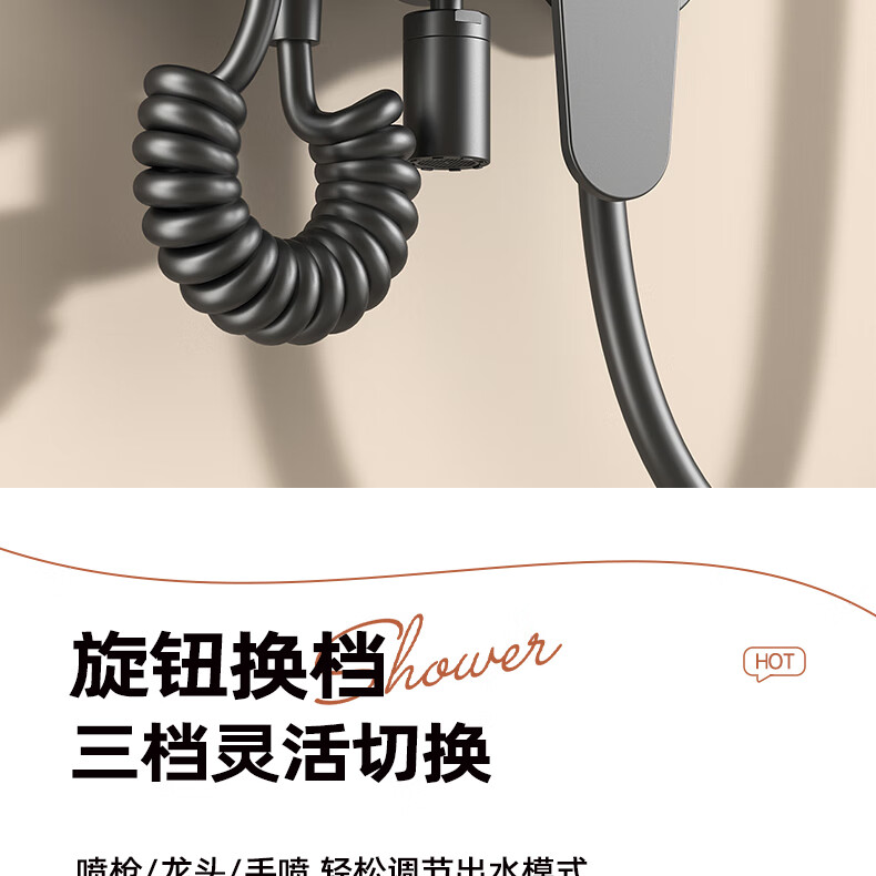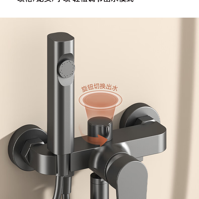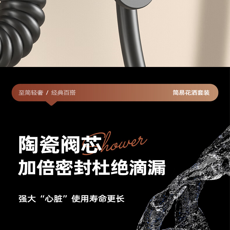 Jomoo shower head set simple roofless shower bathroom pressurized nozzle split lifting rod household all-copper mixing valve B2-gun ash simple three-function shower + lifting rod