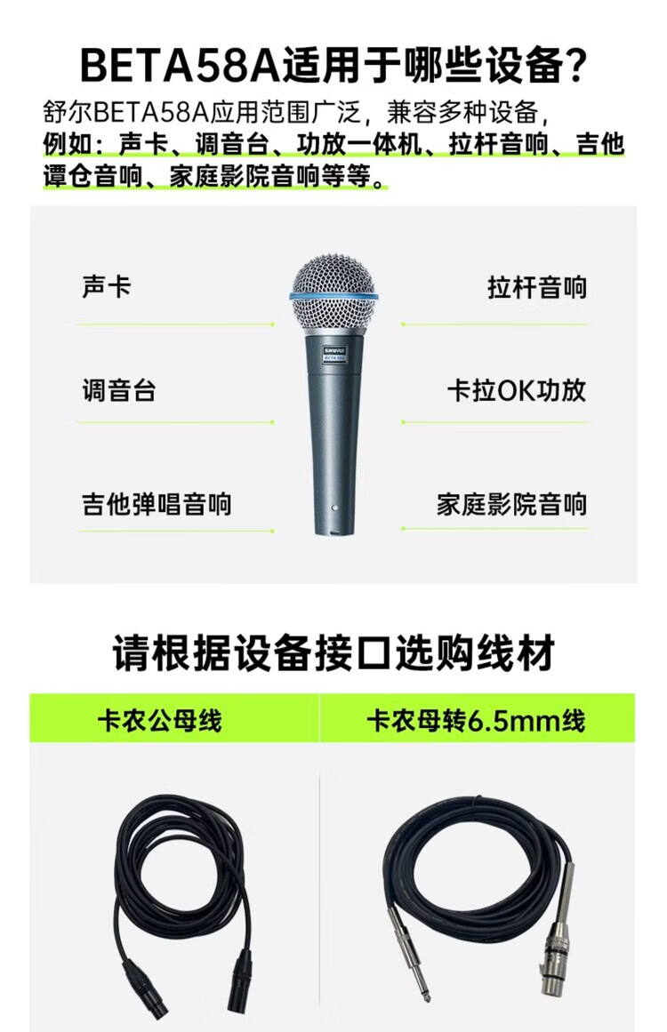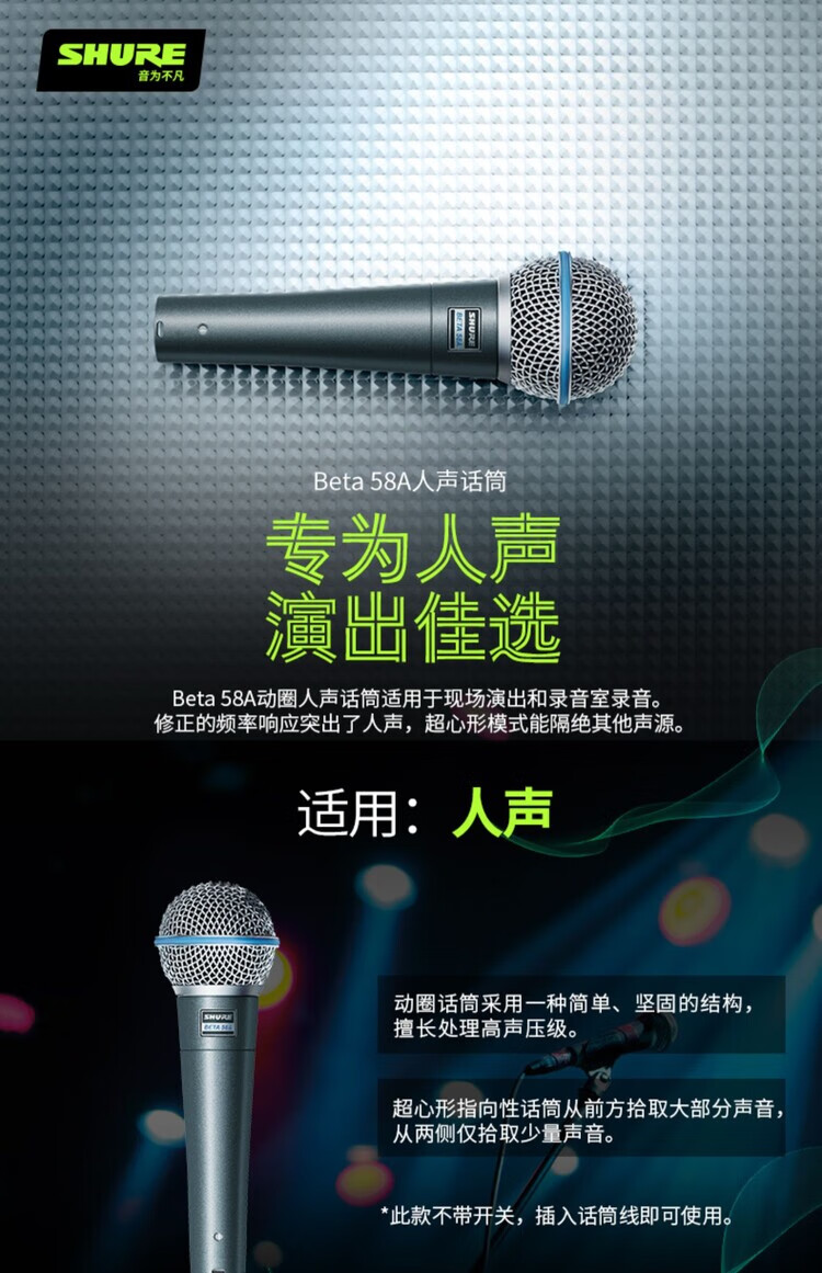 SHURE Shure beta58a professional wired microphone dynamic microphone stage performance live broadcast karaoke home singing BETA58A + 5 meter XLR male and female cable storage bag + microphone clip