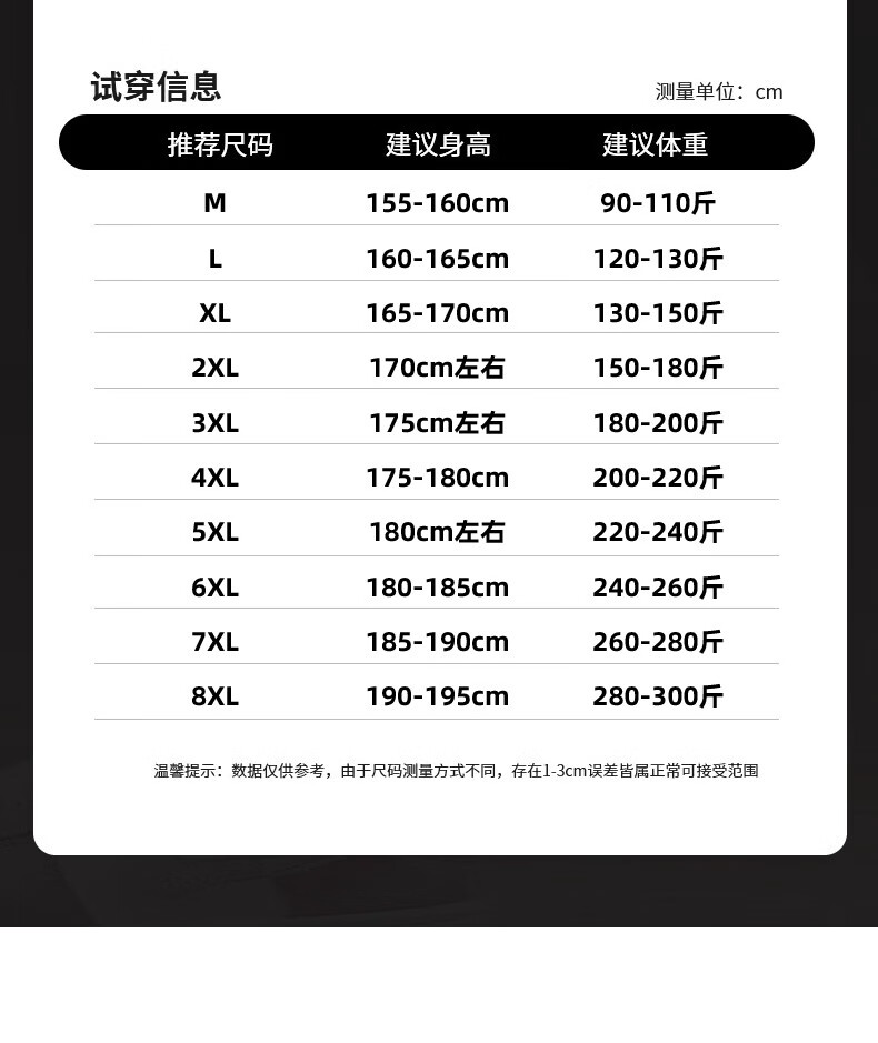 China (cm) 165 / 88-90 170 / 96-98 175 / 108-110 180 / 118-122 185 / 126-130