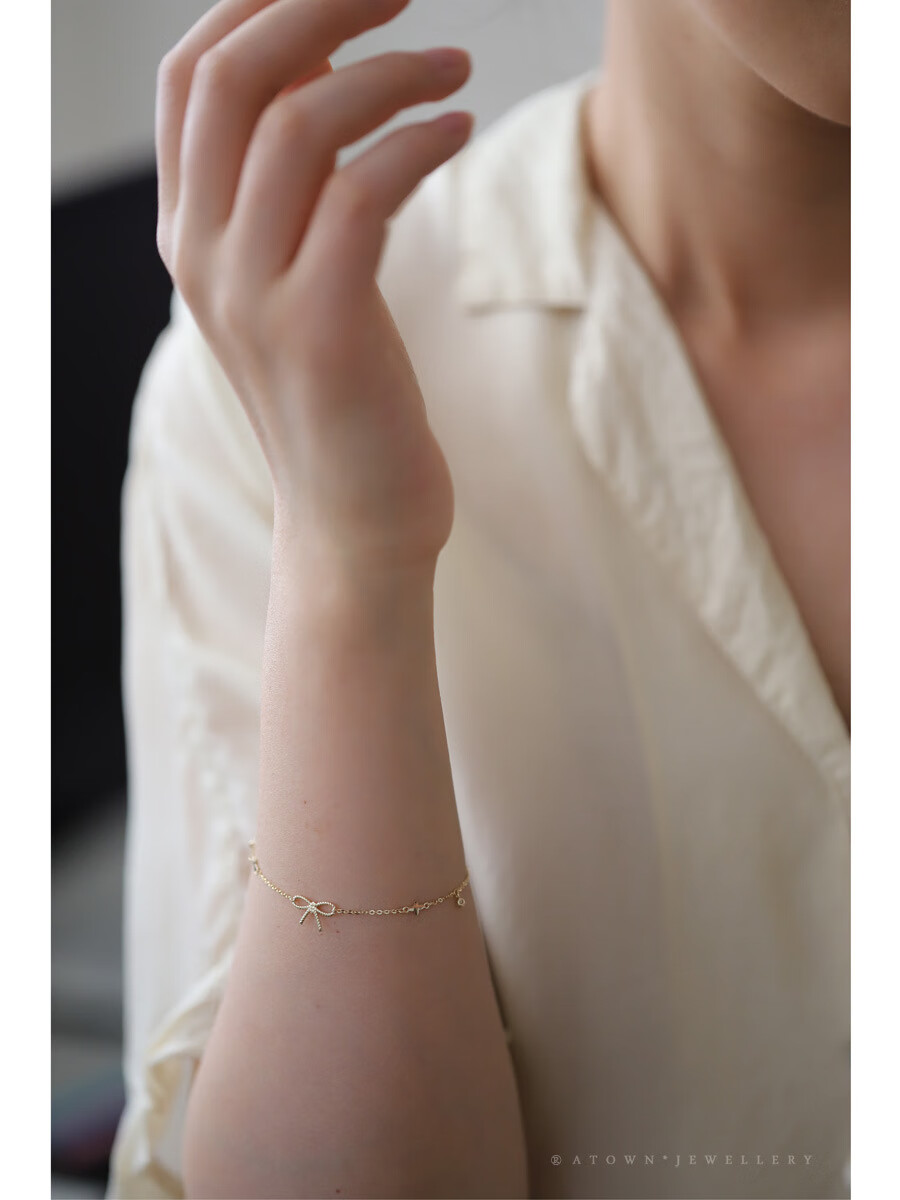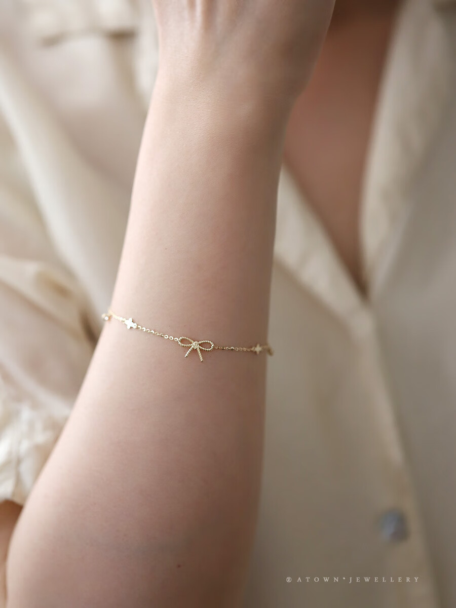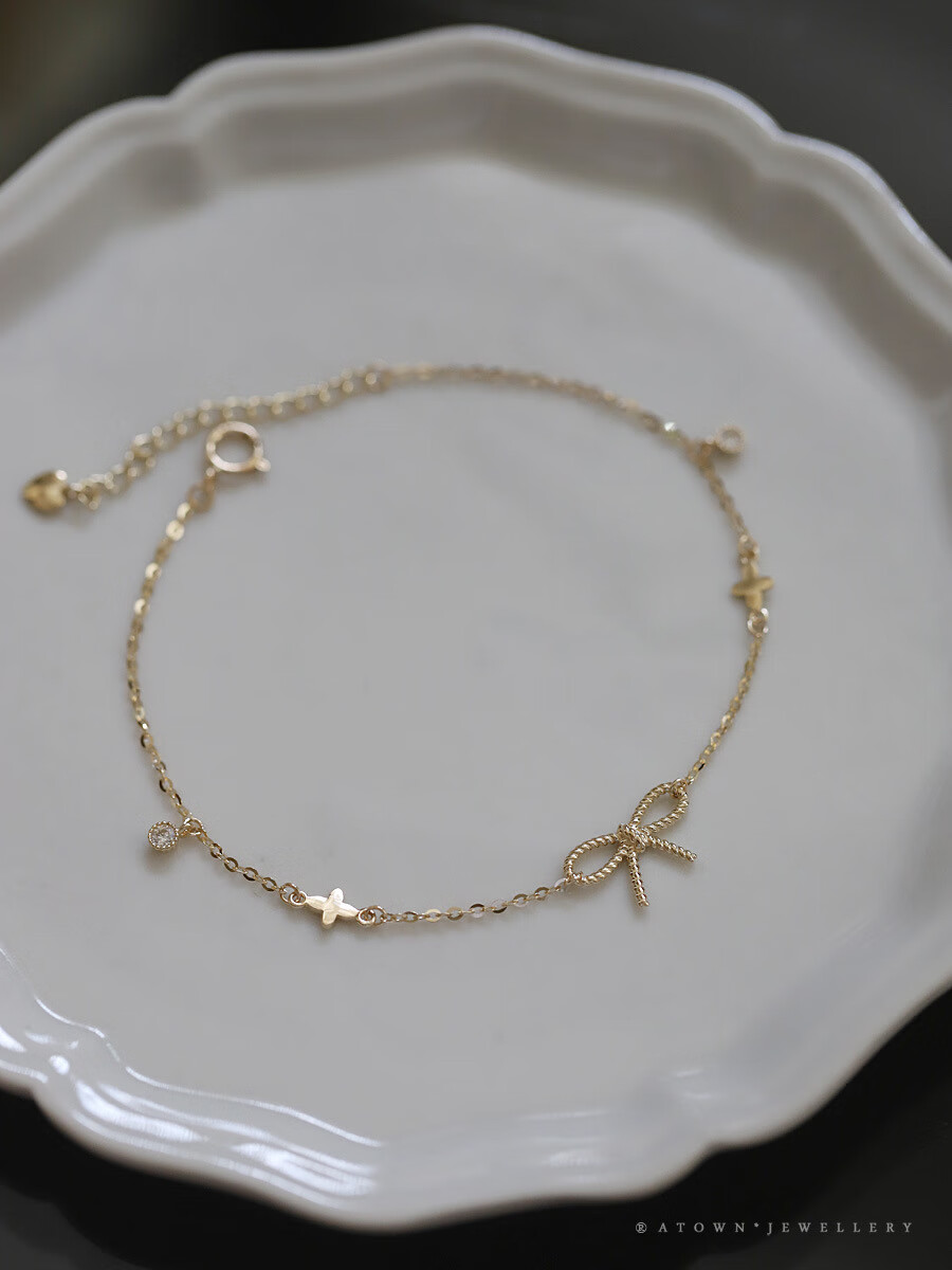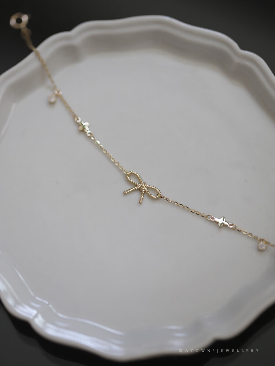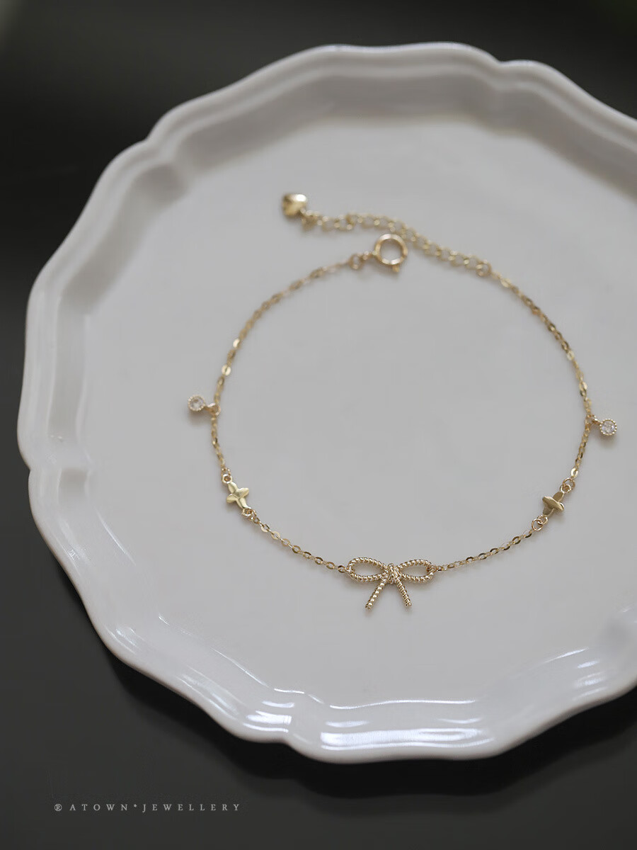 Aibana Light Luxury S925 Silver Plated 14K Gold Bracelet Women's Twist Bow Four-leaf Clover Simple Temperament Bracelet for Girls Gift Gold