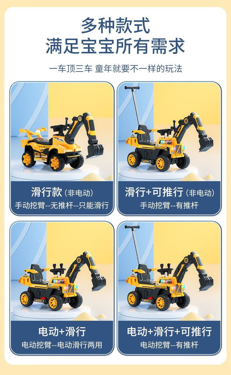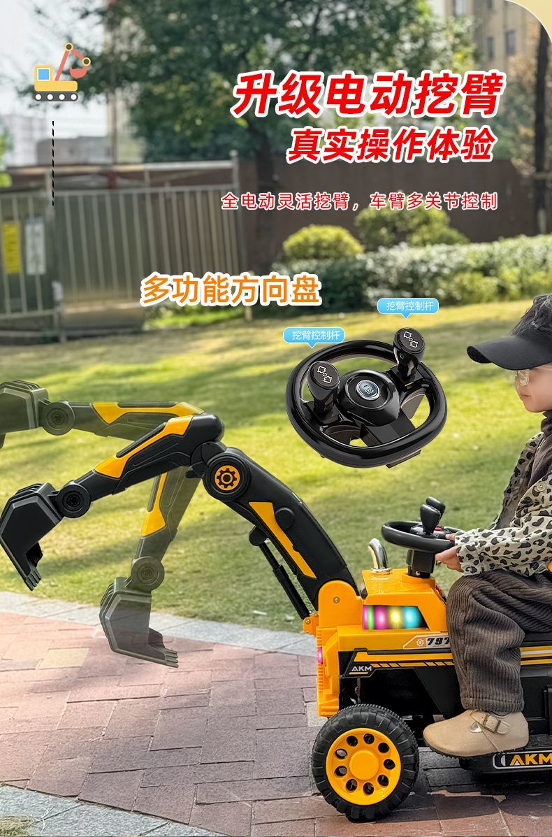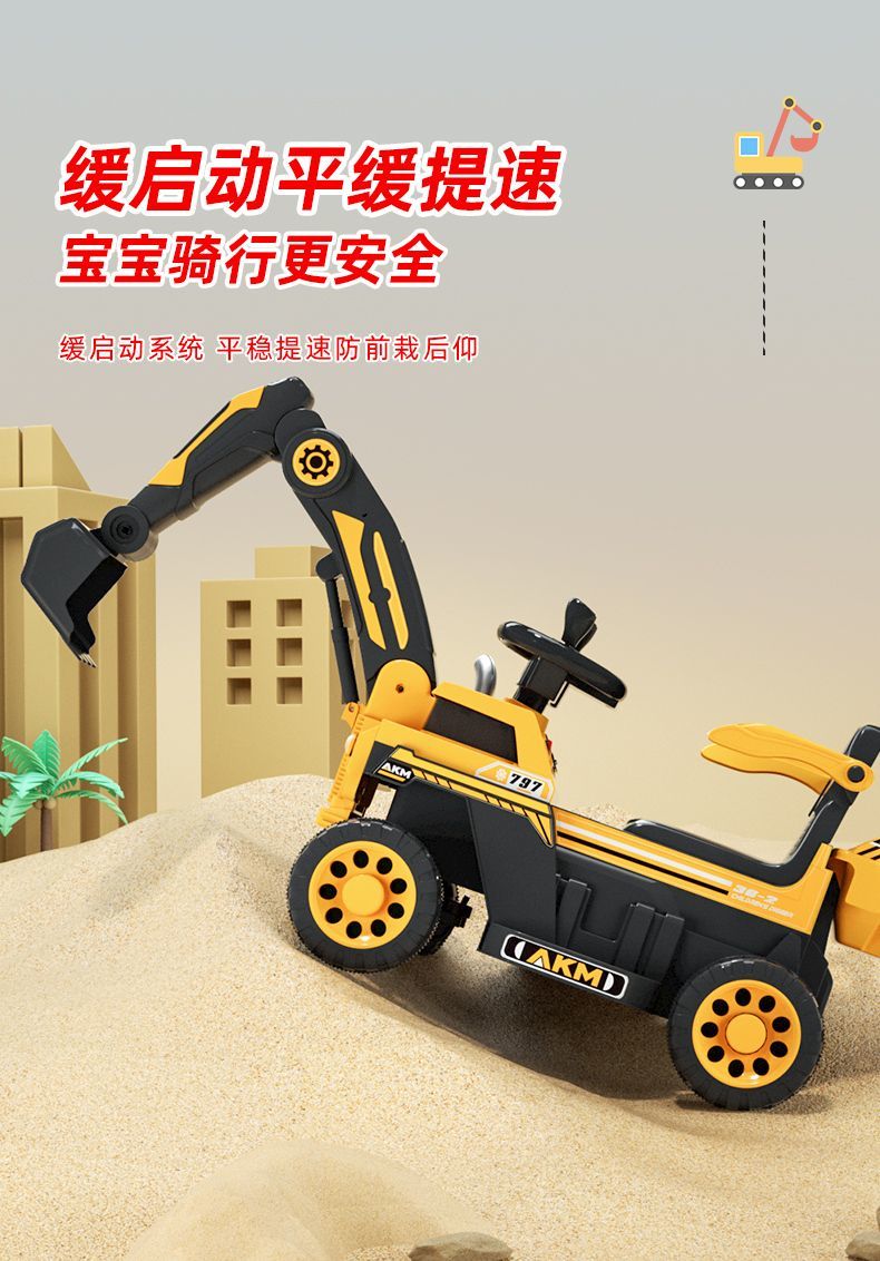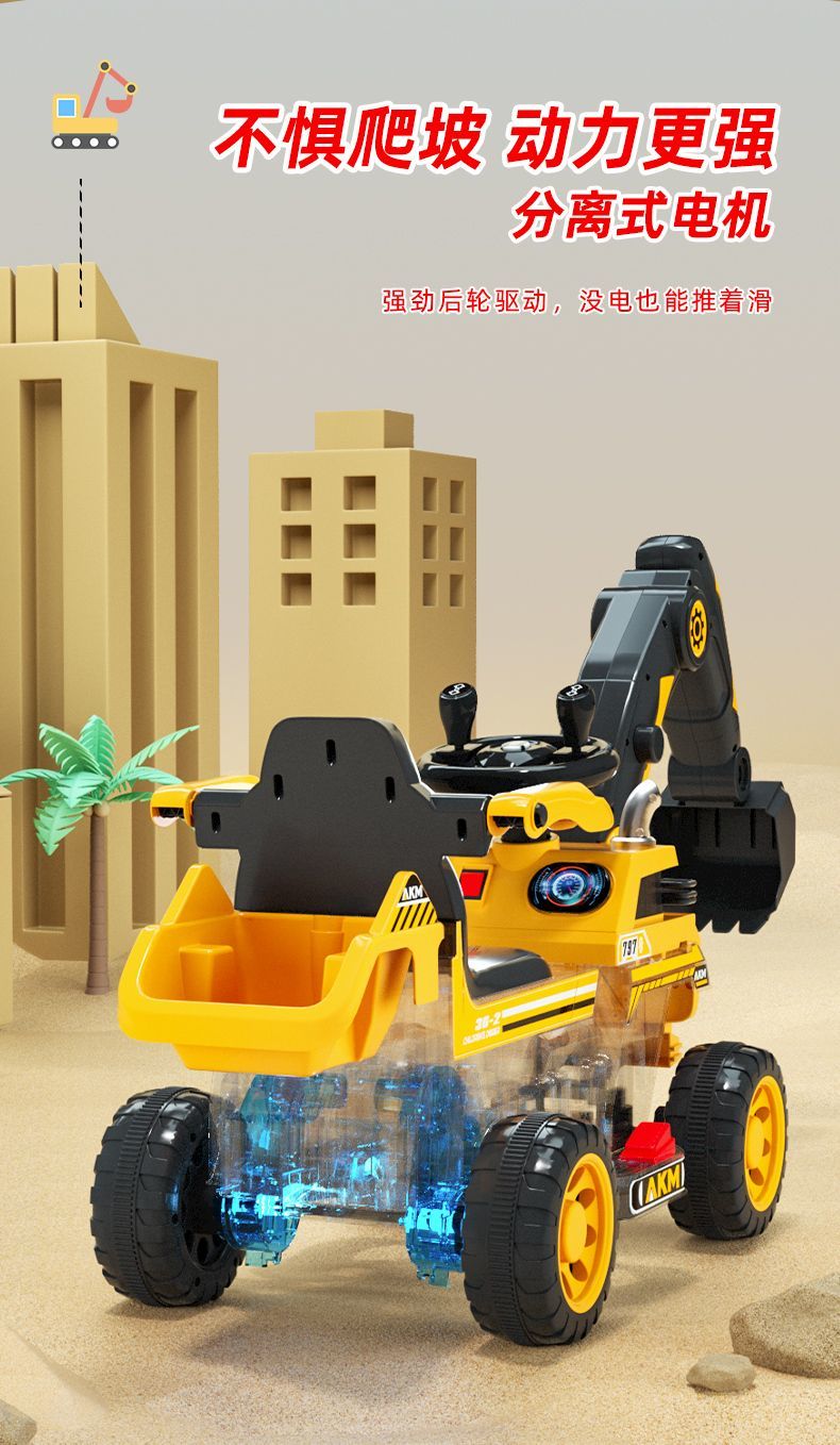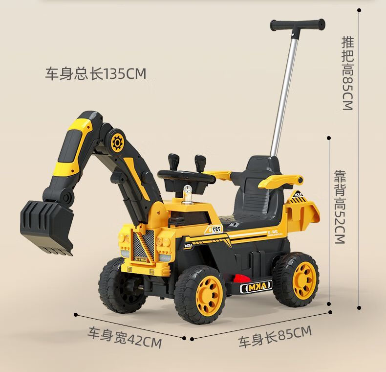 Happy Junior Excavator Children's Sitting Toy Car Boy's Remote Control Electric Diggable Excavator Oversized Large Engineering Vehicle Yellow Non-Electric Slide + Manual Digging Arm + Push