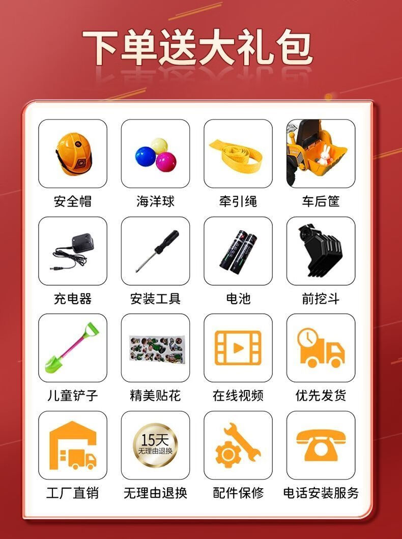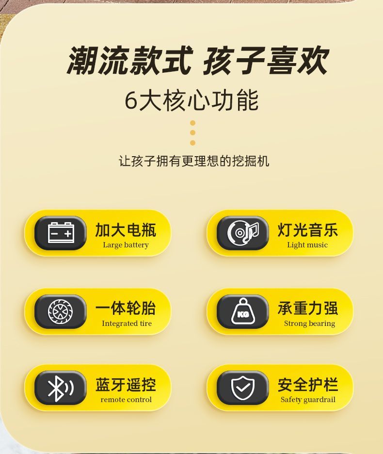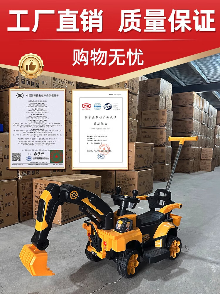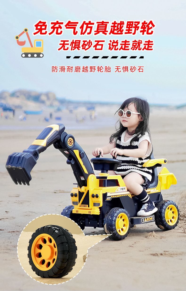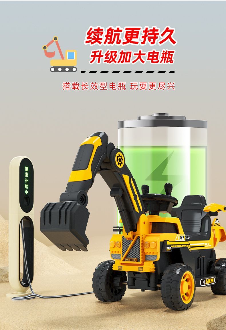 Happy Junior Excavator Children's Sitting Toy Car Boy's Remote Control Electric Diggable Excavator Oversized Large Engineering Vehicle Yellow Non-Electric Slide + Manual Digging Arm + Push
