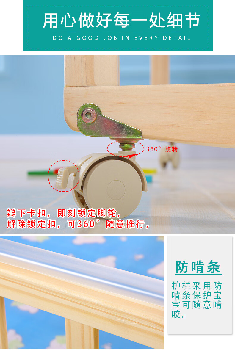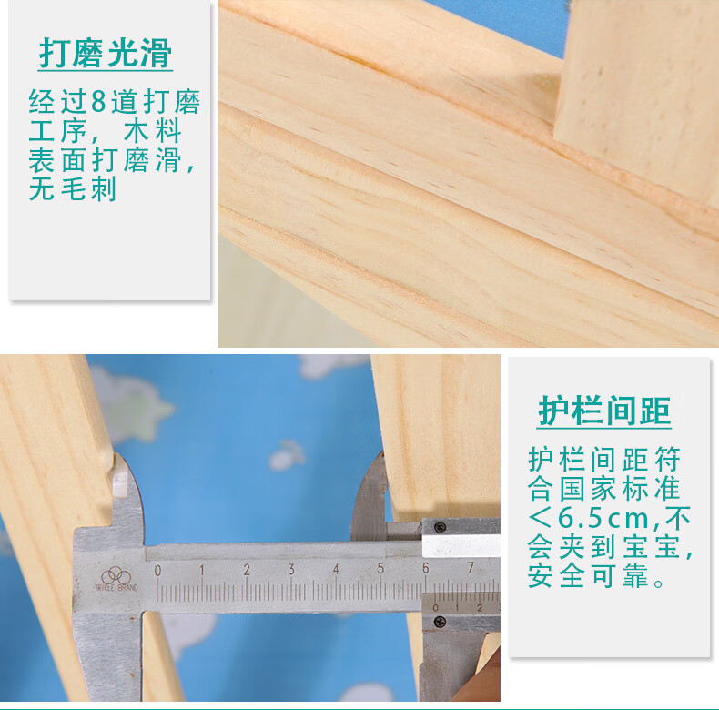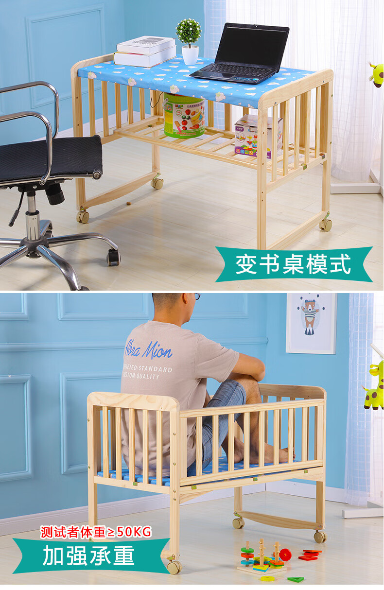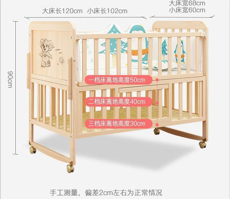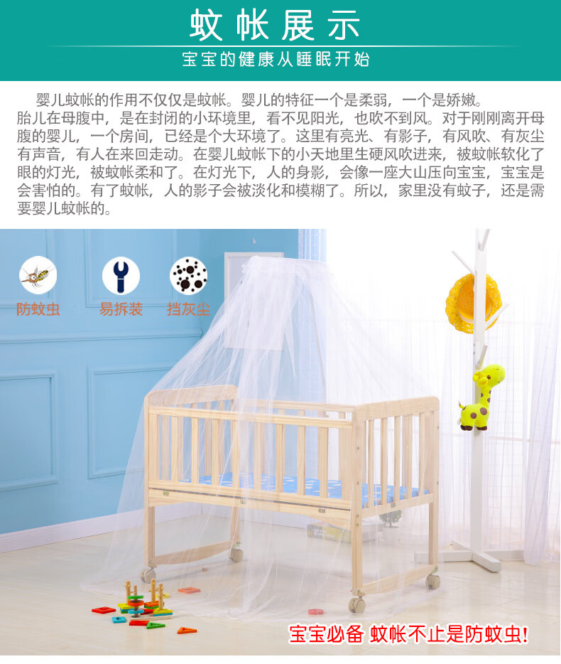 Tongjian crib solid wood paint-free environmentally friendly baby bed crib rocker baby cradle bed bed + mosquito net + three bears five-piece set single-layer large bed 102x60 0-3 years old