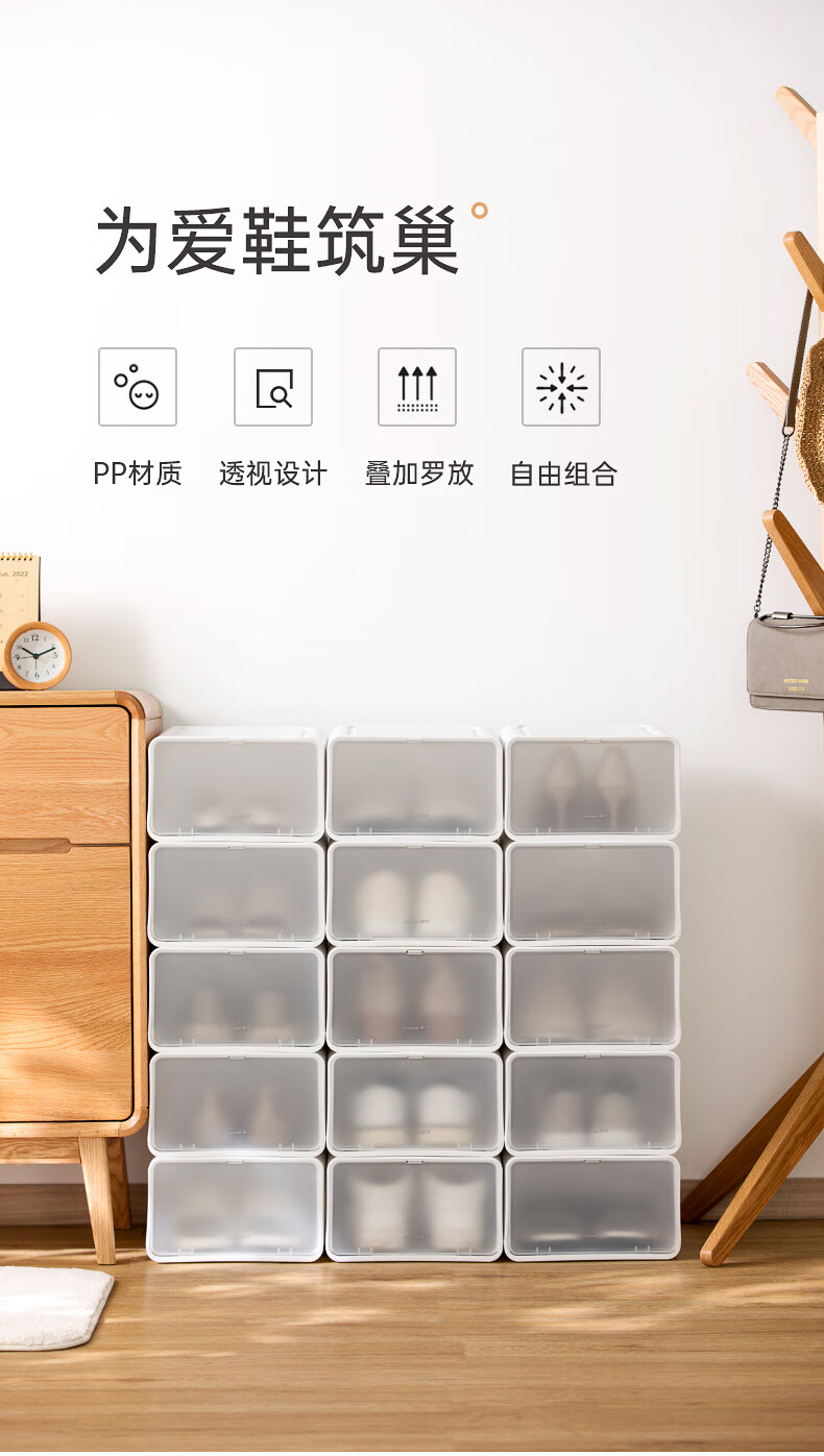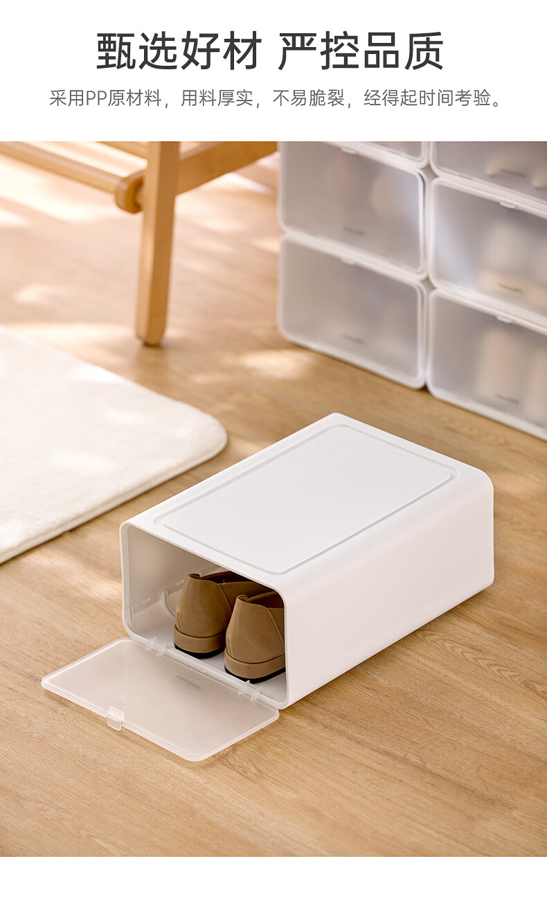 Camellia front-opening transparent shoe box frosted simple stackable multi-purpose storage box 4 pieces front-opening lid #34.6*25*15.3
