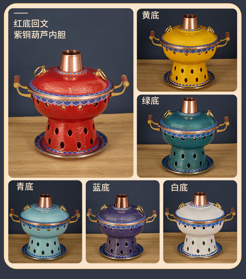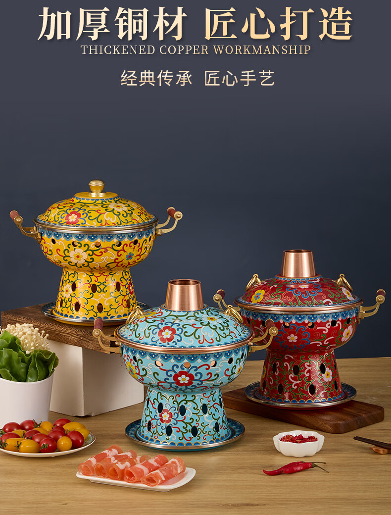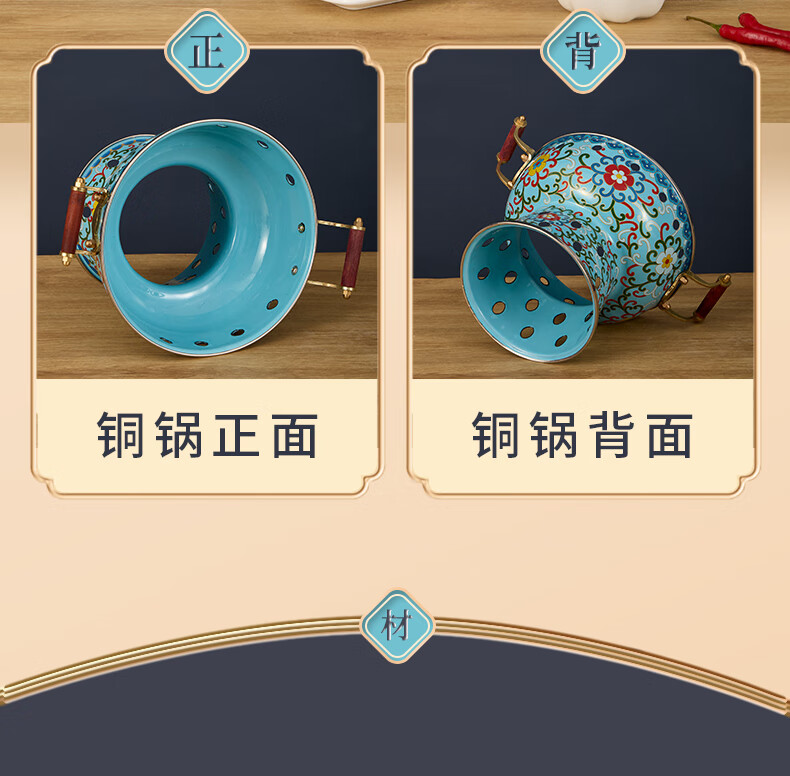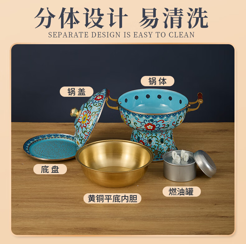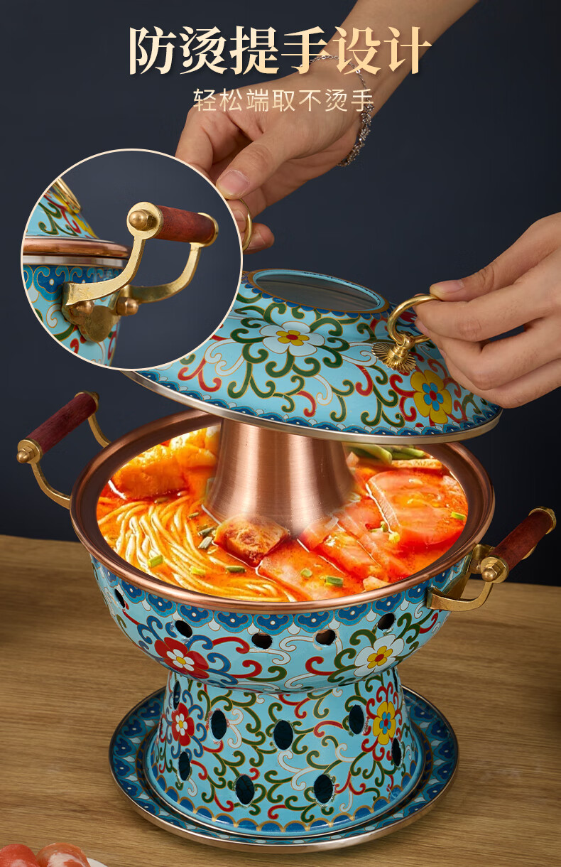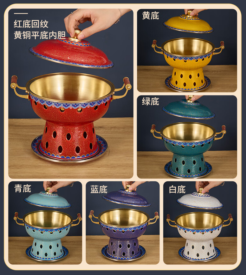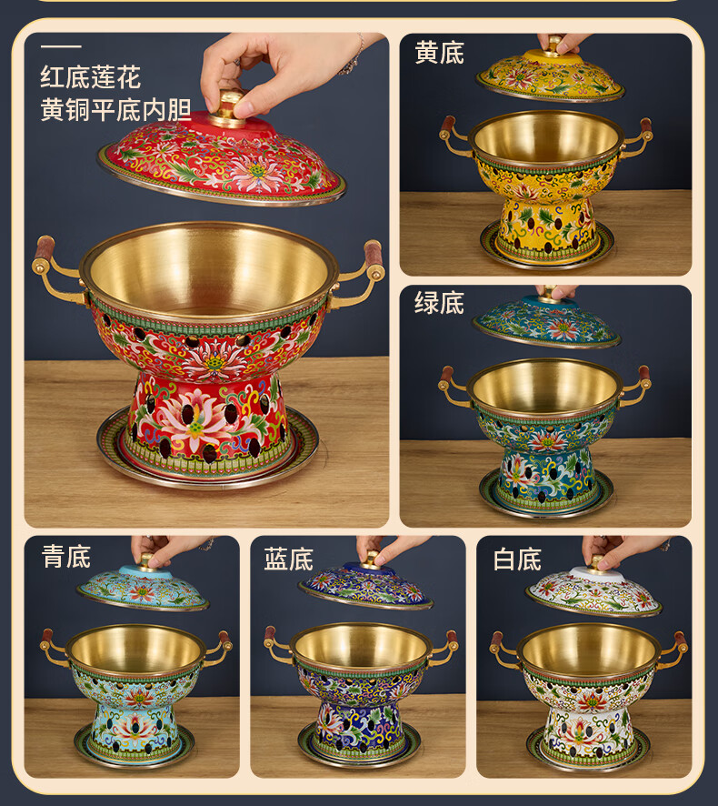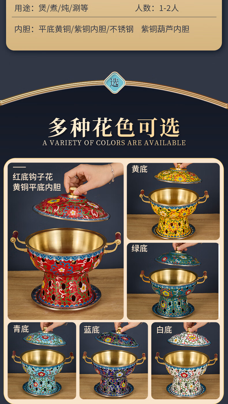 Chui Laoye cloisonné single copper hot pot enamel alcohol small hot pot one person one pot thickened environmentally friendly oil copper pot club cyan lotus copper gourd inner pot 20cm