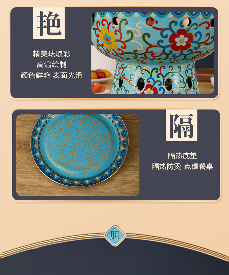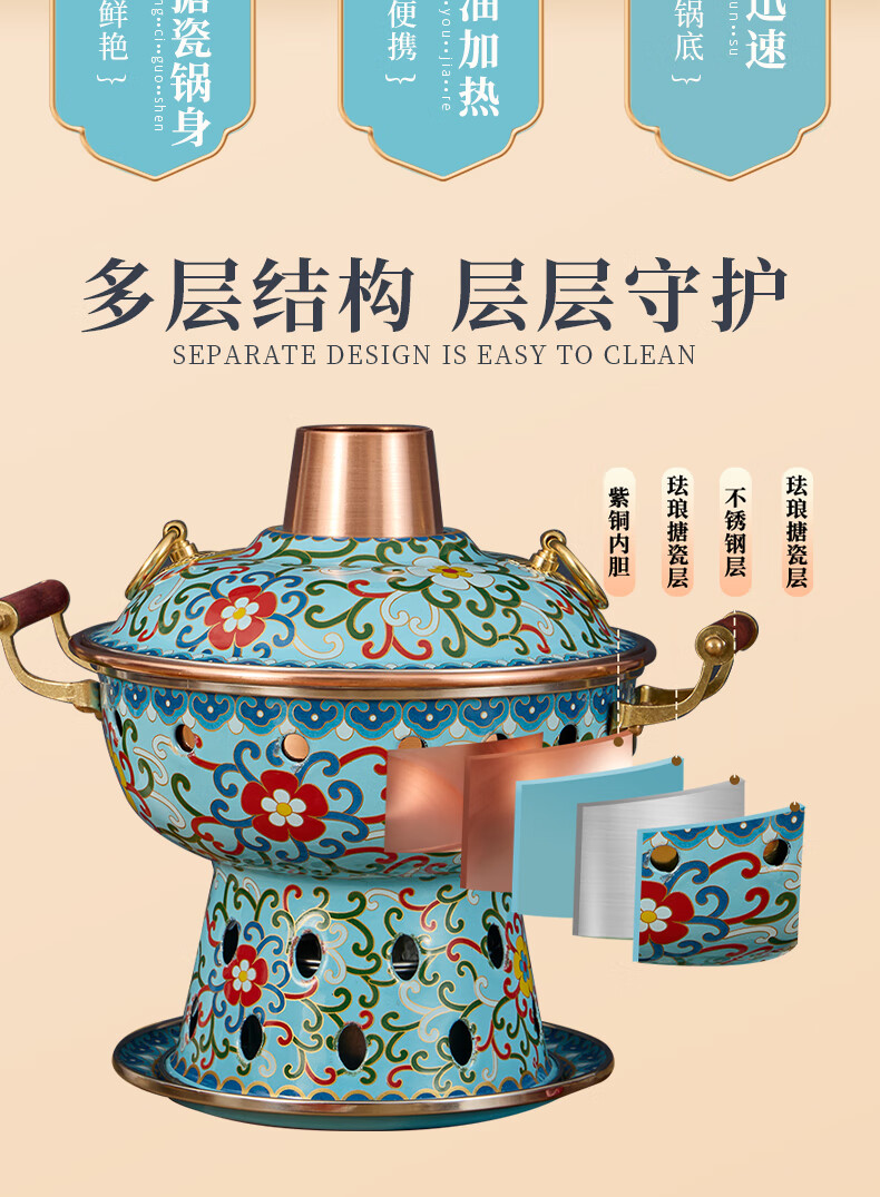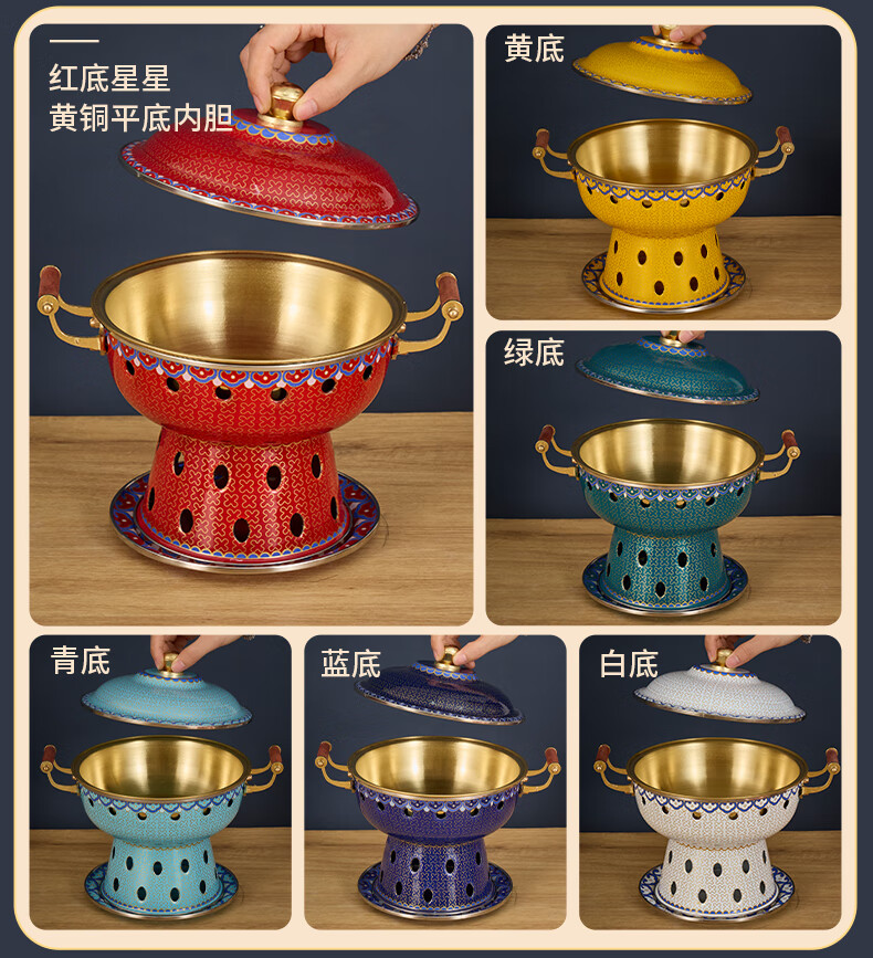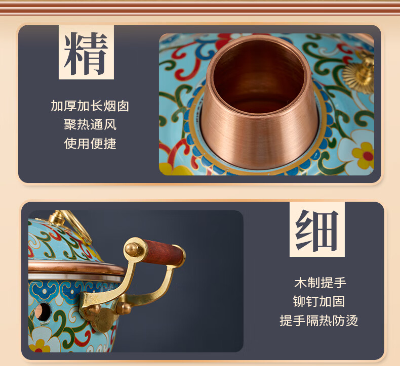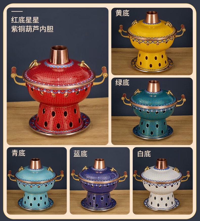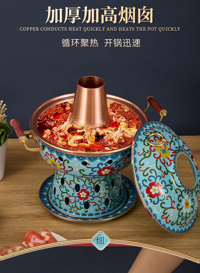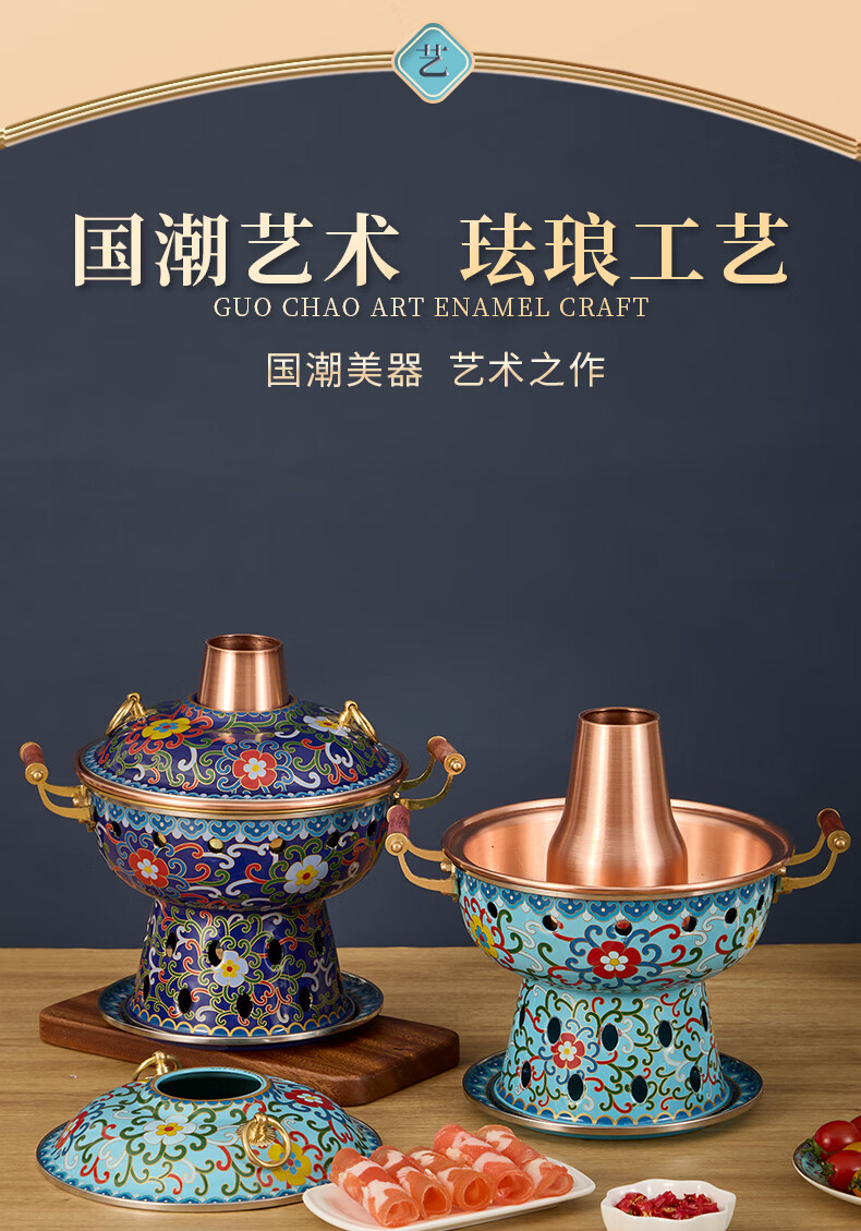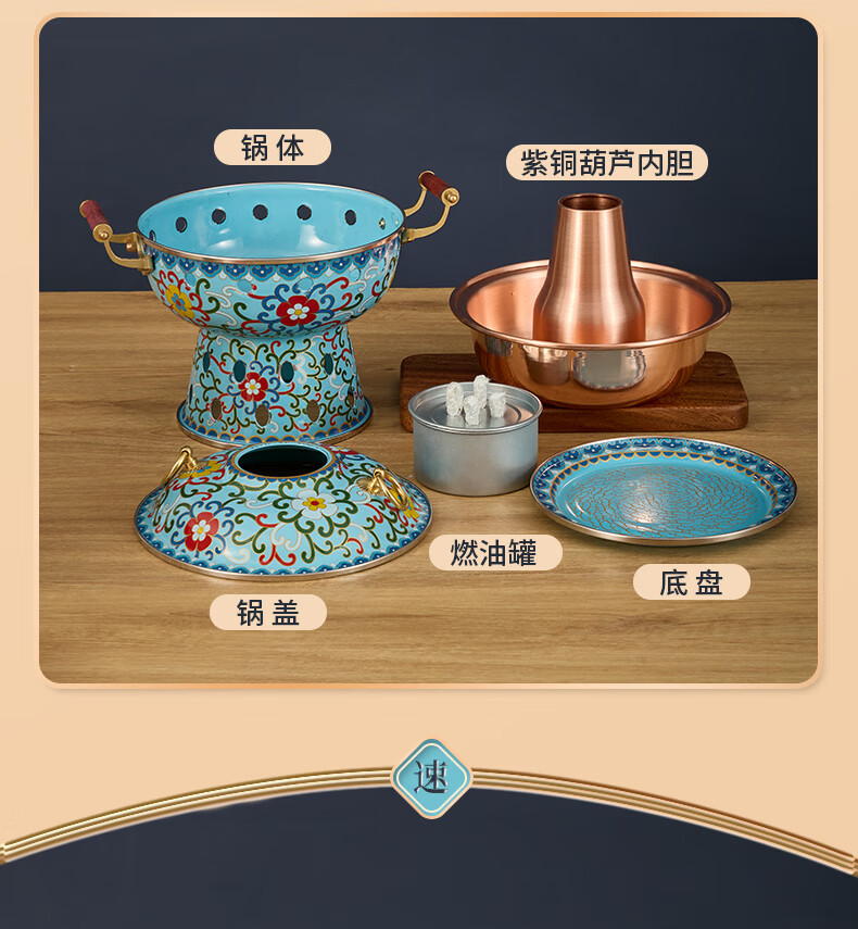 Chui Laoye cloisonné single copper hot pot enamel alcohol small hot pot one person one pot thickened environmentally friendly oil copper pot club cyan lotus copper gourd inner pot 20cm