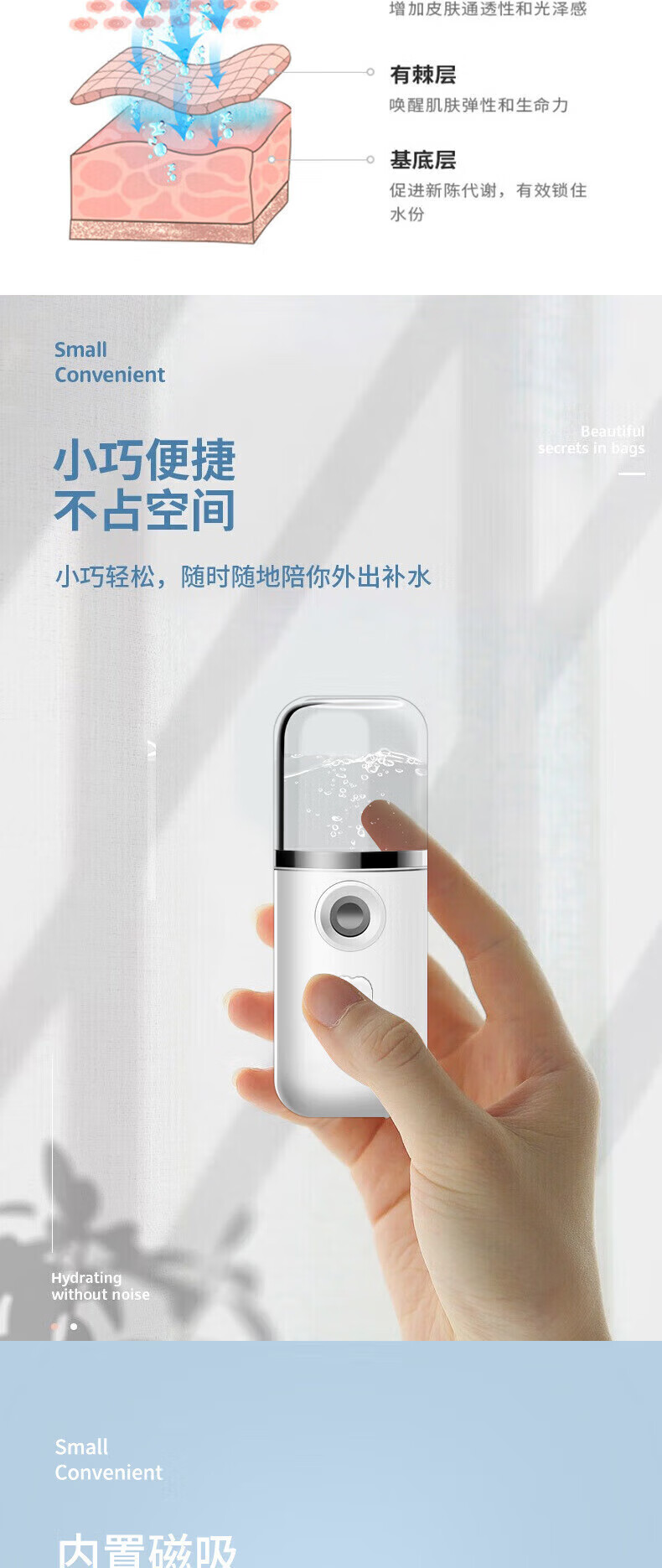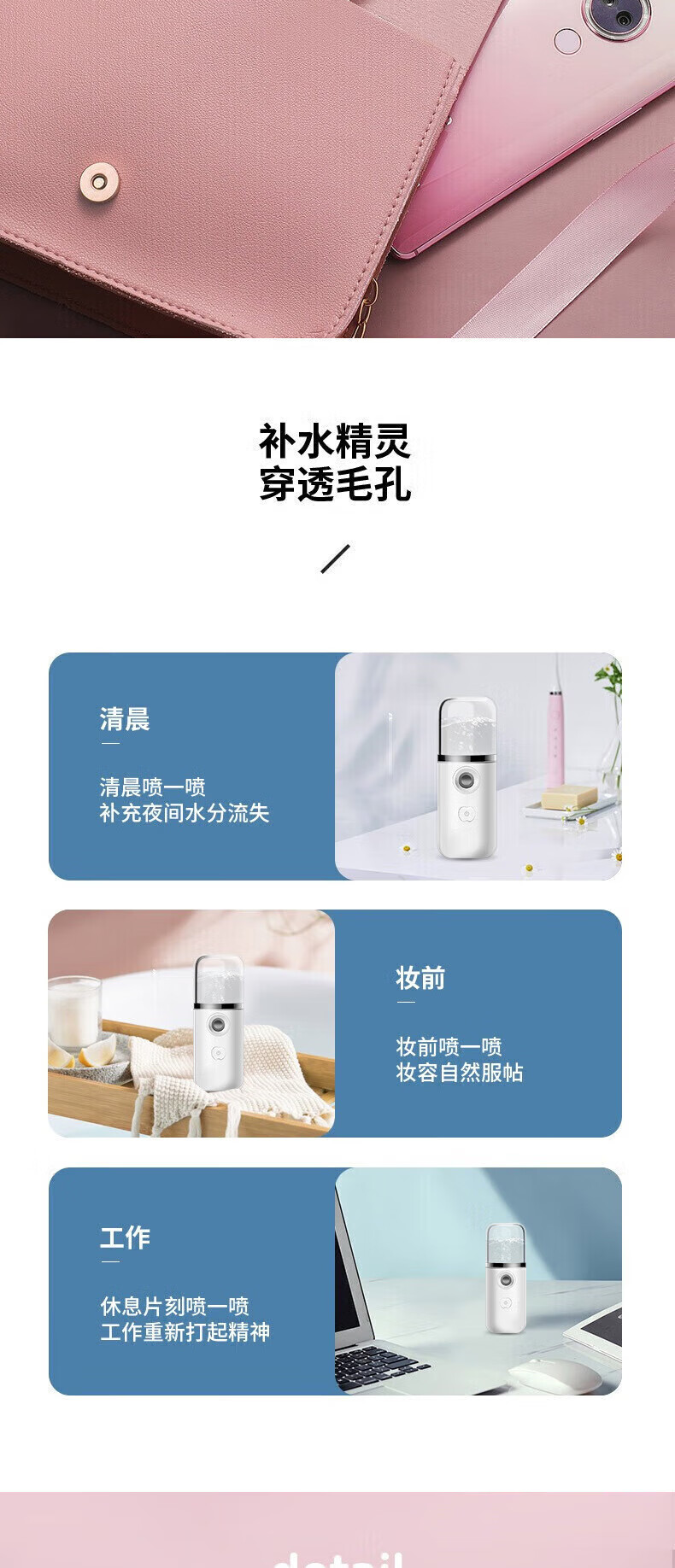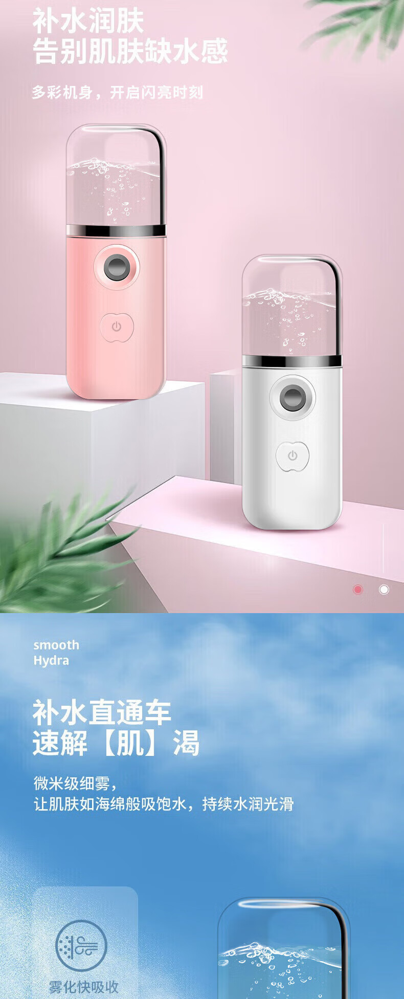 Xiaomi ecological chain same model Xiaomi same ecological chain brand spray hydration instrument facial steamer nano sprayer portable small hydration instrument handheld humidification pink Chinese version