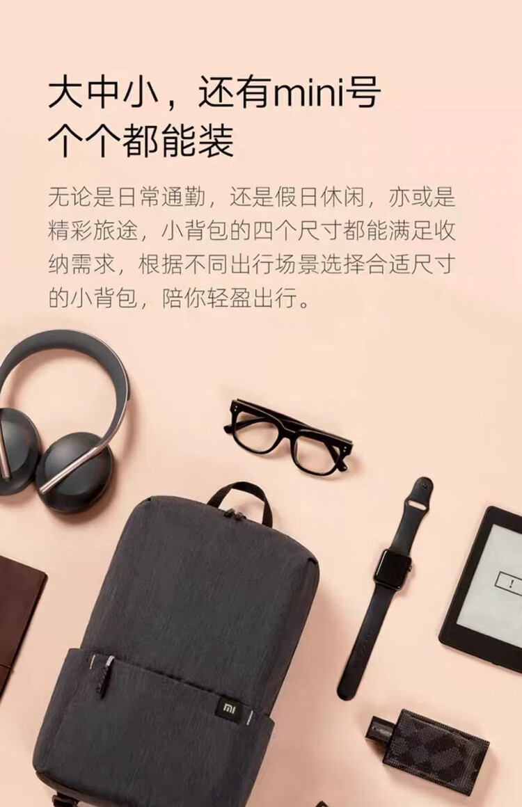 Xiaomi Colorful Small Backpack Men's and Women's Casual Backpack Student School Bag Fashion Trend Simple Portable Backpack Couple Gray 10L Just Fits A4 Size