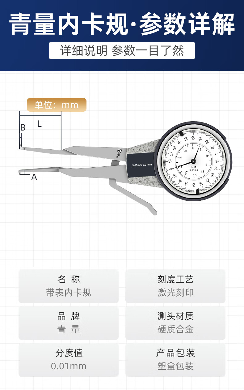 Jiuliang Qingliang instrumento mecánico de medición de ranura de diámetro interior y exterior de alta precisión 0,01 medidor de calibre 5-15-20 mm con medidor de calibre interno mecánico 40-50 mm
