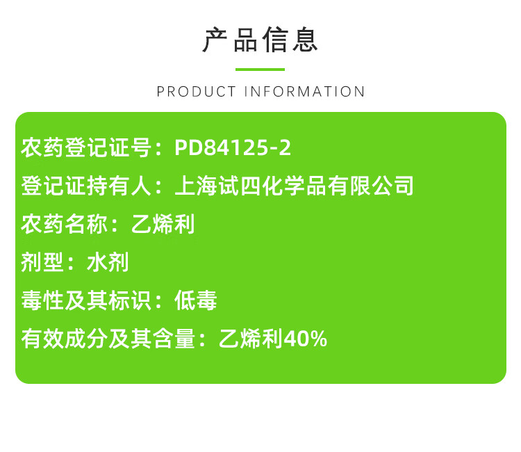 Feiling ethephon 40% ethephon water agent persimmon cotton tobacco banana tomato ripening plant growth regulator 1000g/bottle