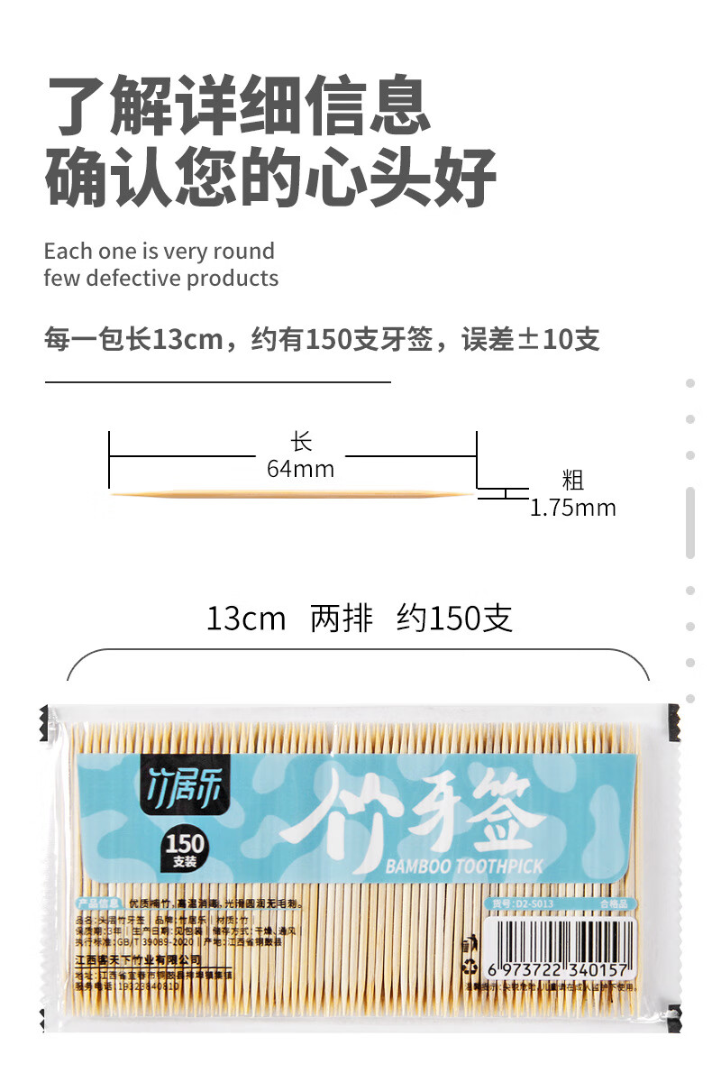 Disposable toothpicks, household double-headed bamboo toothpicks, portable hotel thin toothpick sticks, 2 bags, about 300 pieces
