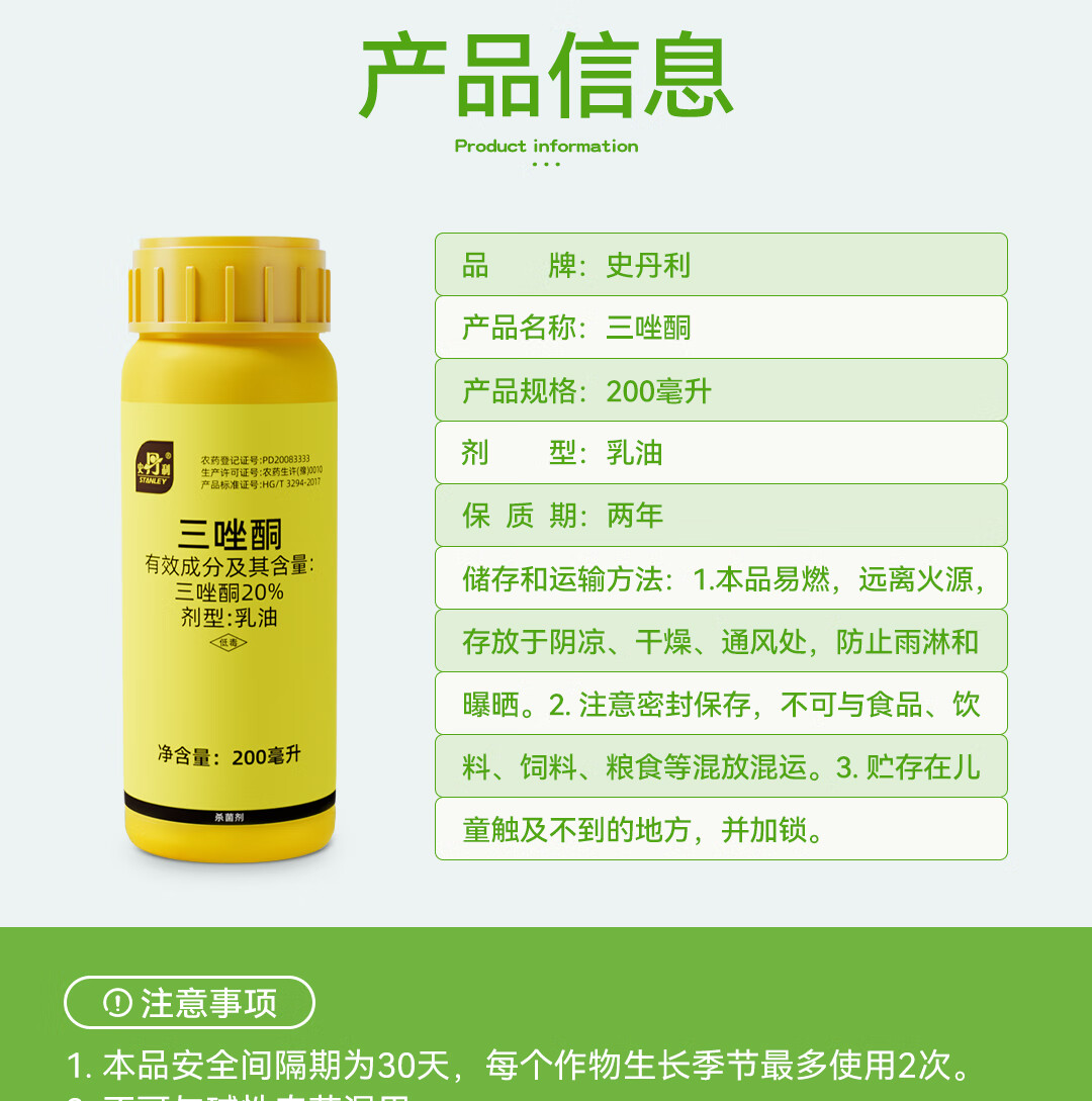 Stanley triadimefon fungicide, special for flower white spot and black spot, commonly used anthers for succulent rose flower diseases and insect pests, triadimefon 200ml, comes with graduated dropper