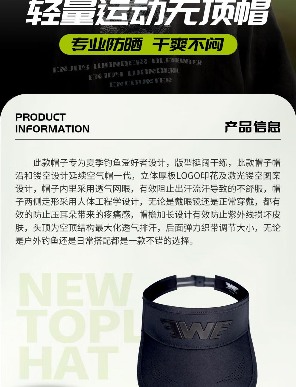 EWE Fishing Hat Men's Sun Protection Air Topless Outdoor Sun Protection Men's Hat Black One Size