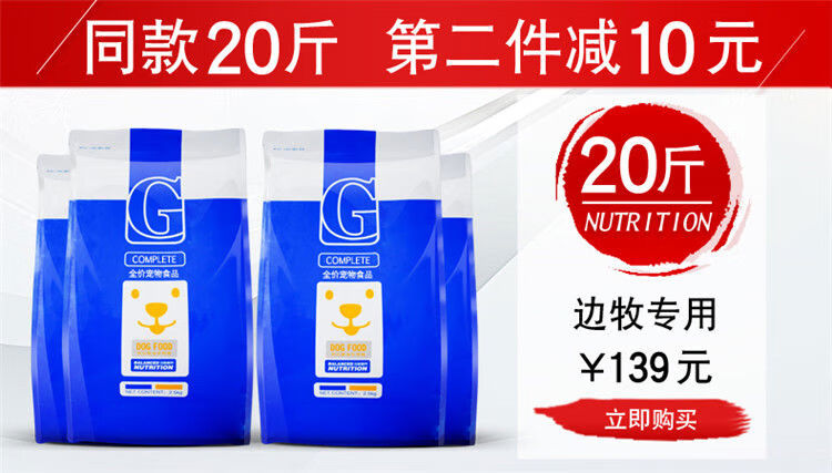Gongwei Border Collie Dog Food Special Food 5 Jin Jin is equal to 0.5 kg Border Collie Dog Food General Puppies and Adult Dogs 25kg Beautiful Hair Calcium Supplement Beef Grain Egg Yolk Three-Piece Food 2 Points 5kg