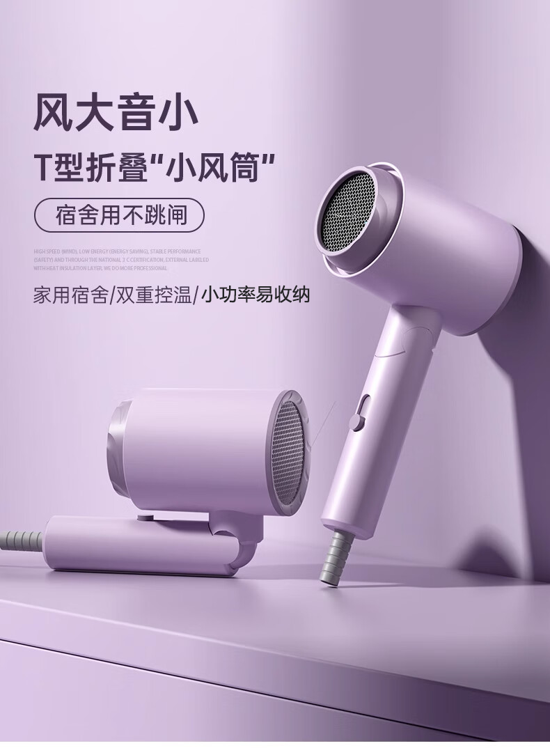 Syouran hair dryer student dormitory special low-power men's and women's folding hair dryer portable college dormitory hair dryer 500W 800W 1000W or less negative ions do not hurt hair Silver Gray 800w does not trip Upgraded high-speed brushless motor / bladeless high wind