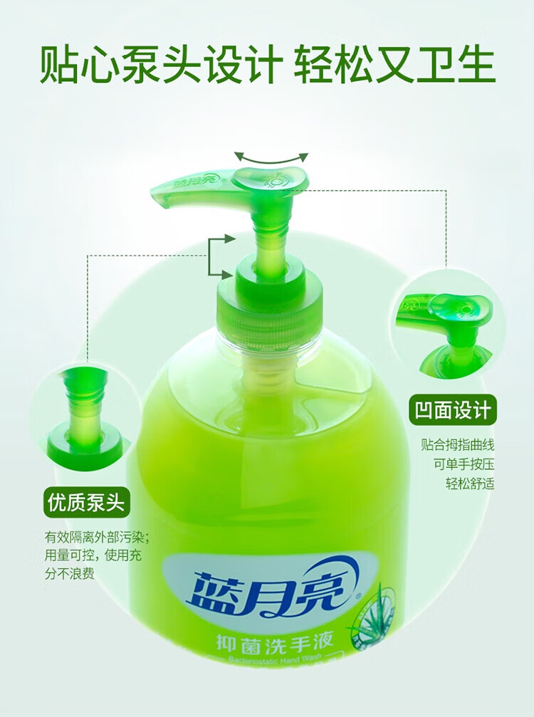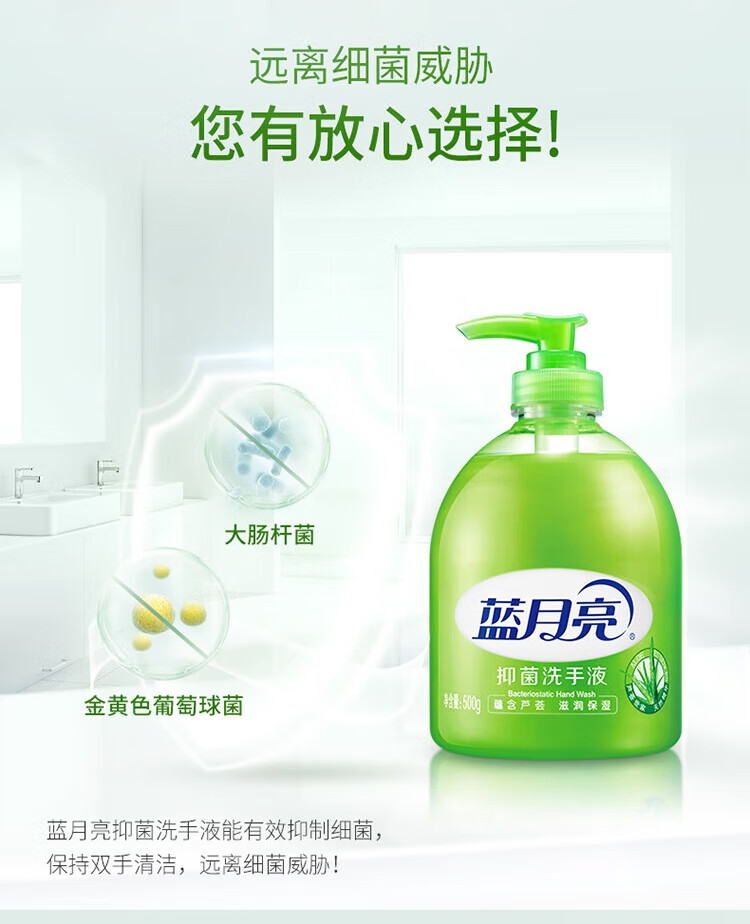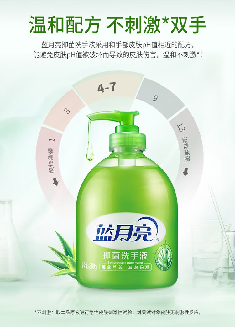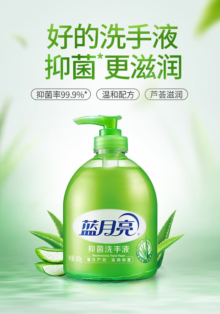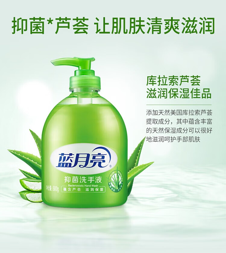 Blue Moon Antibacterial Hand Sanitizer Aloe Vera Fragrance Hand Wash Household Antibacterial Bag Refill Green 500g Large Bottle Aloe Vera Antibacterial Hand Sanitizer 500g*2