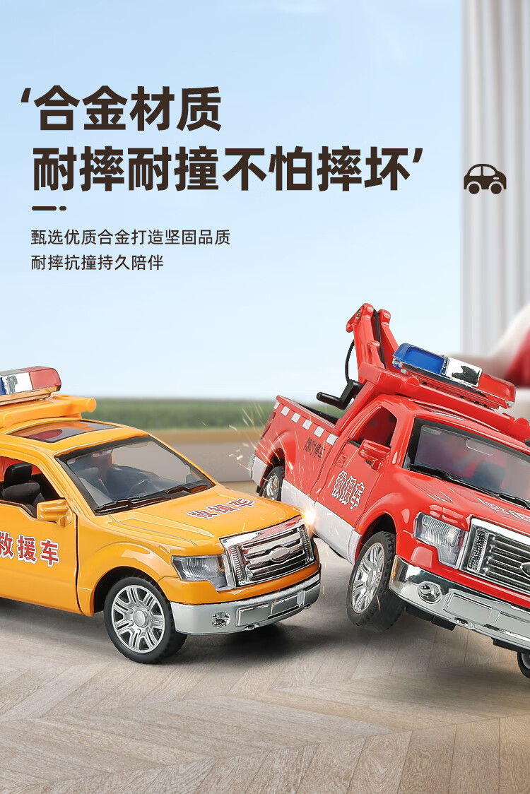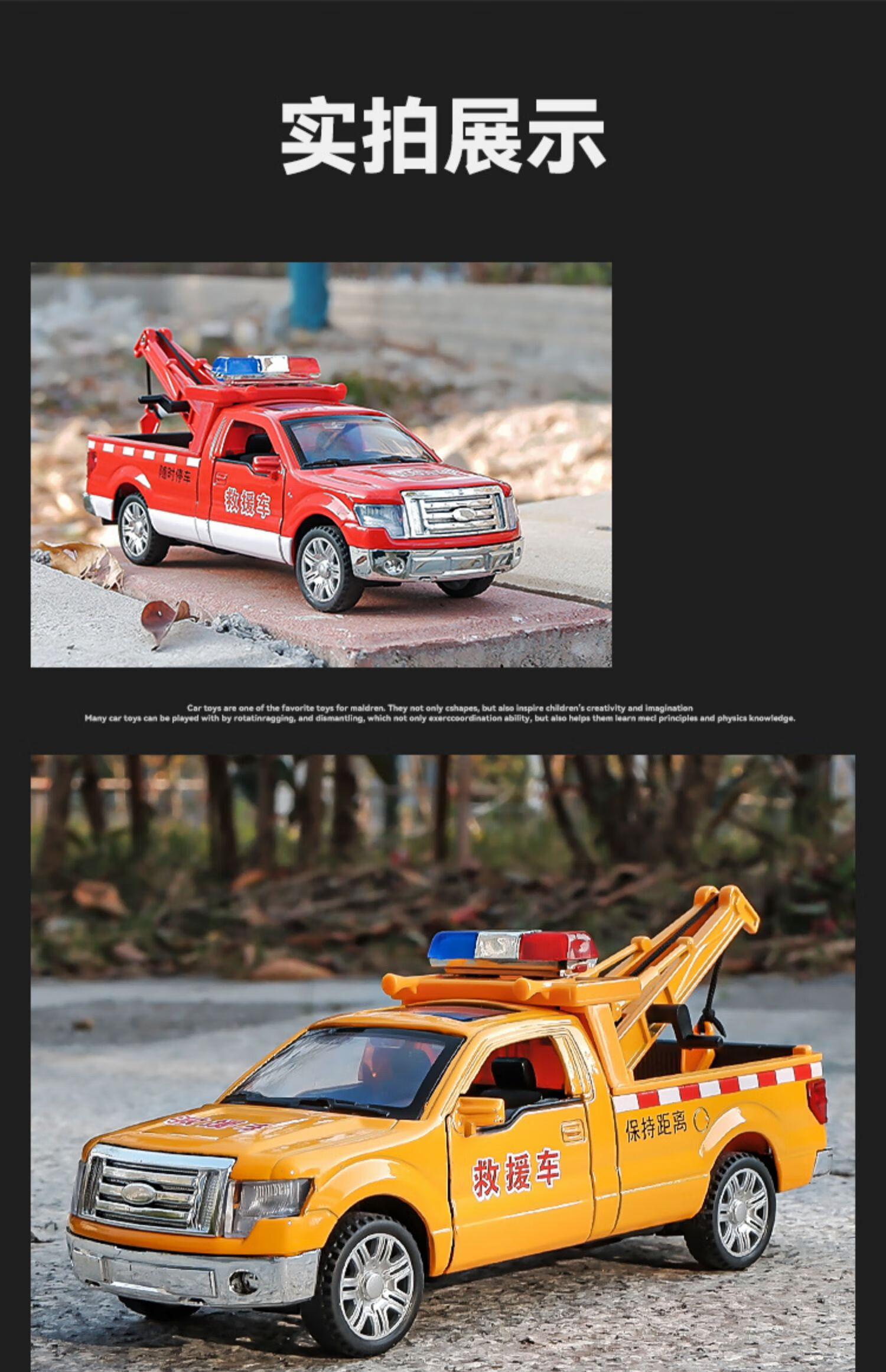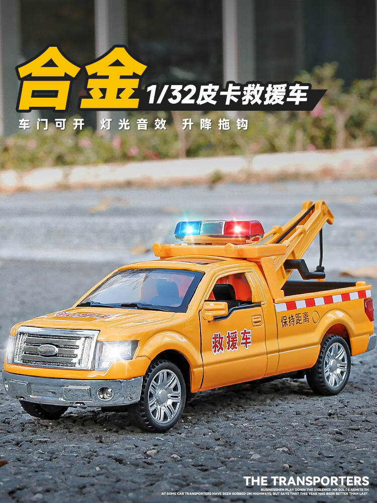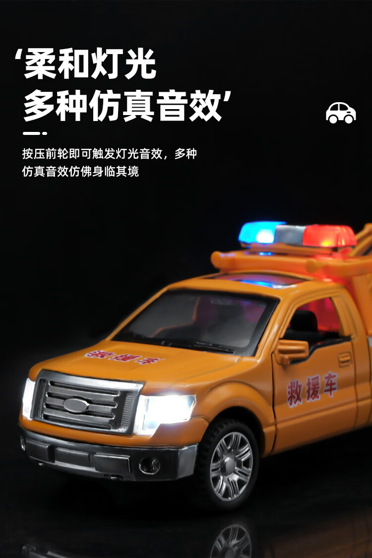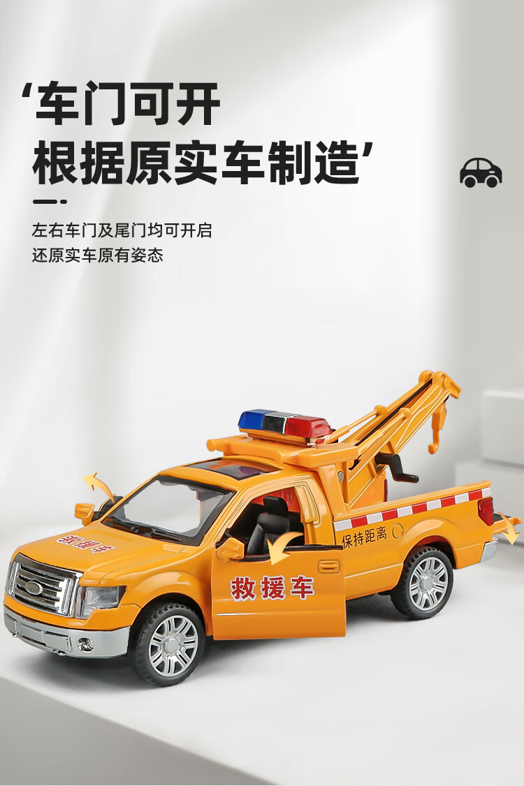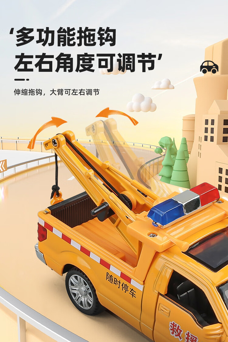 Kawei children's pickup truck road rescue trailer toy alloy car rescue engineering truck crane toy car boy rescue truck-yellow