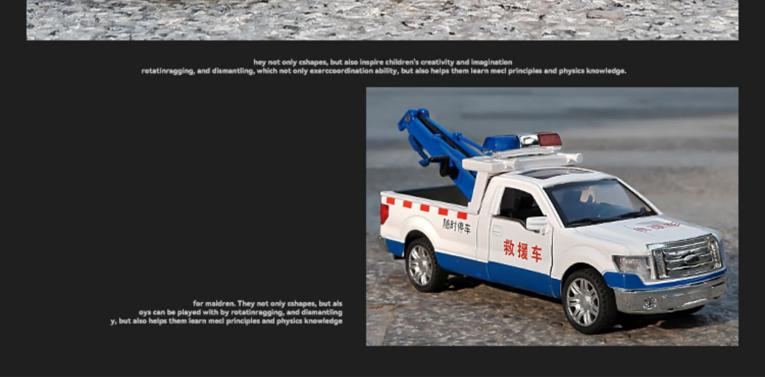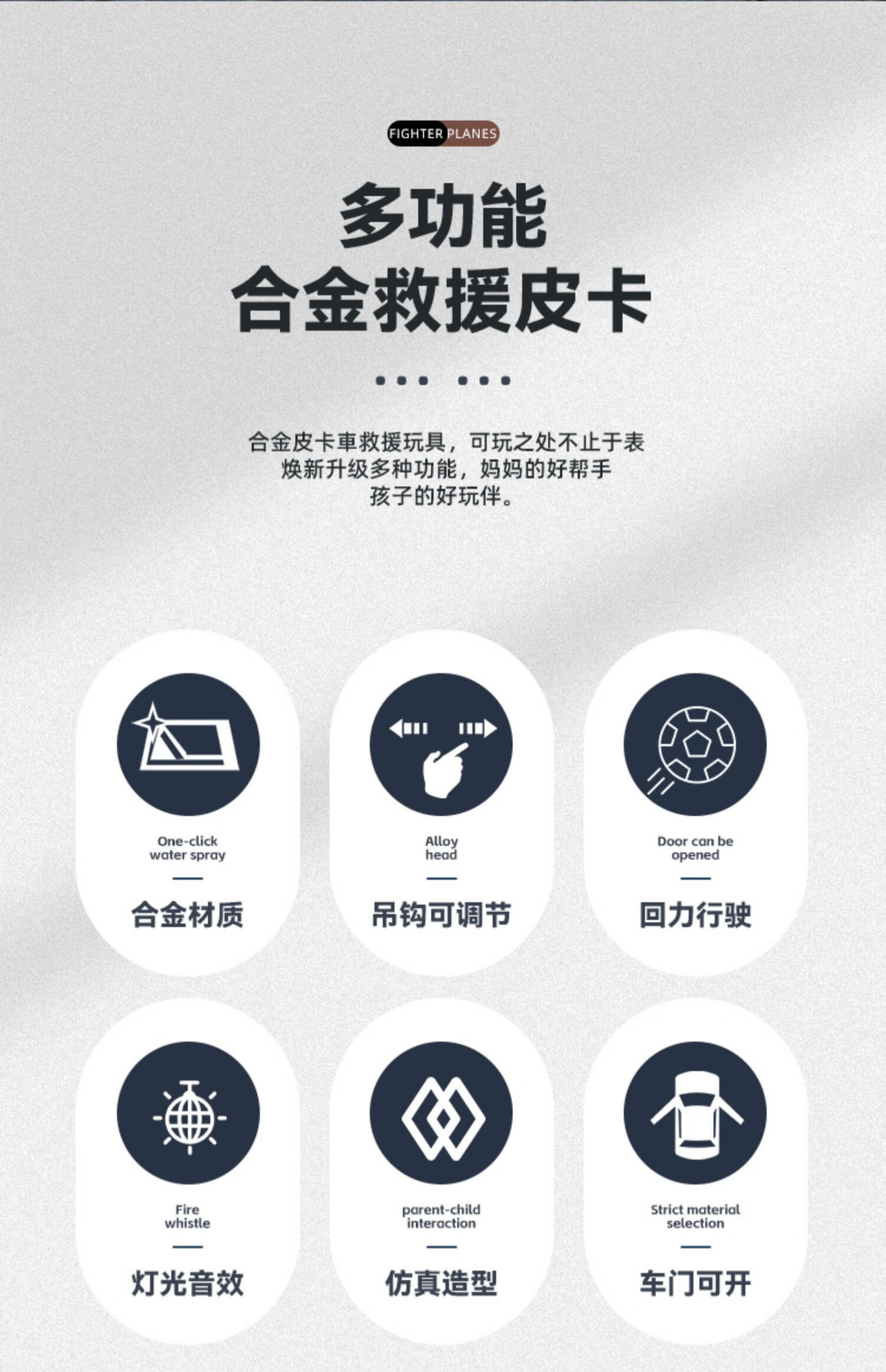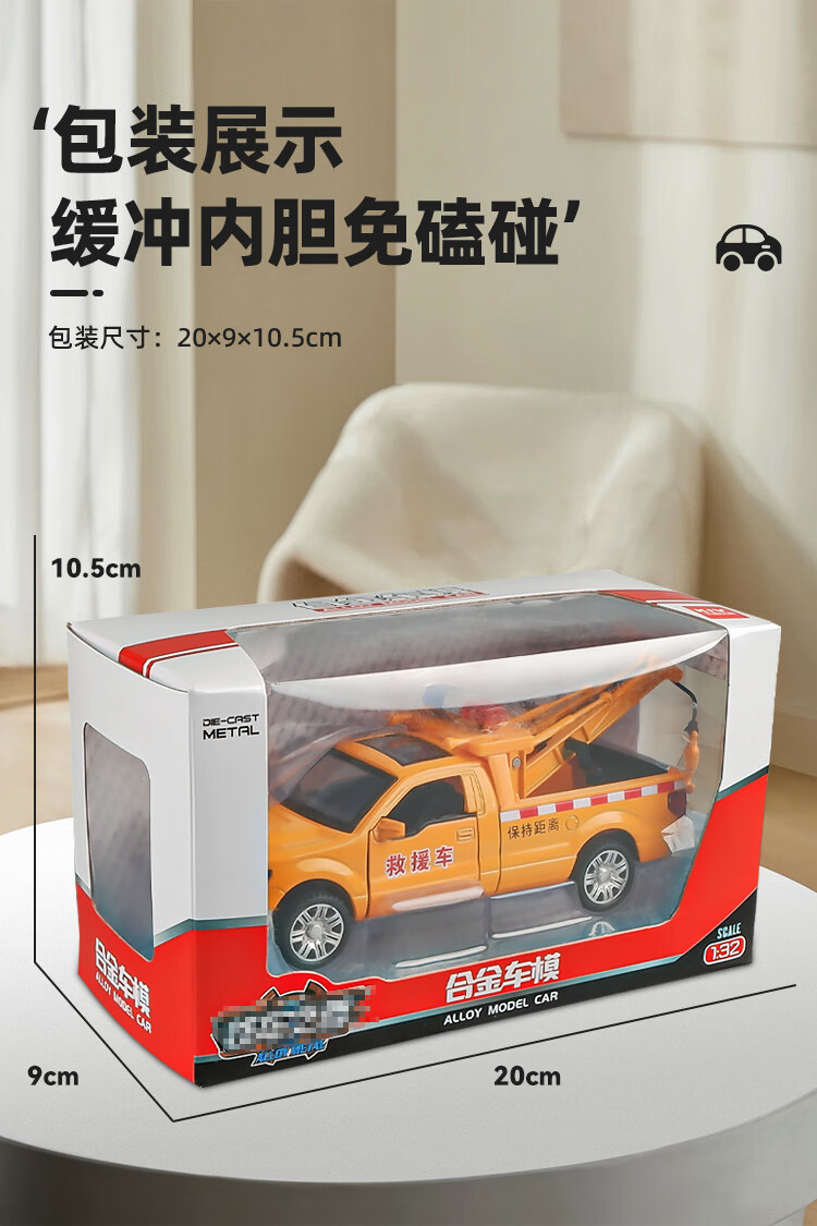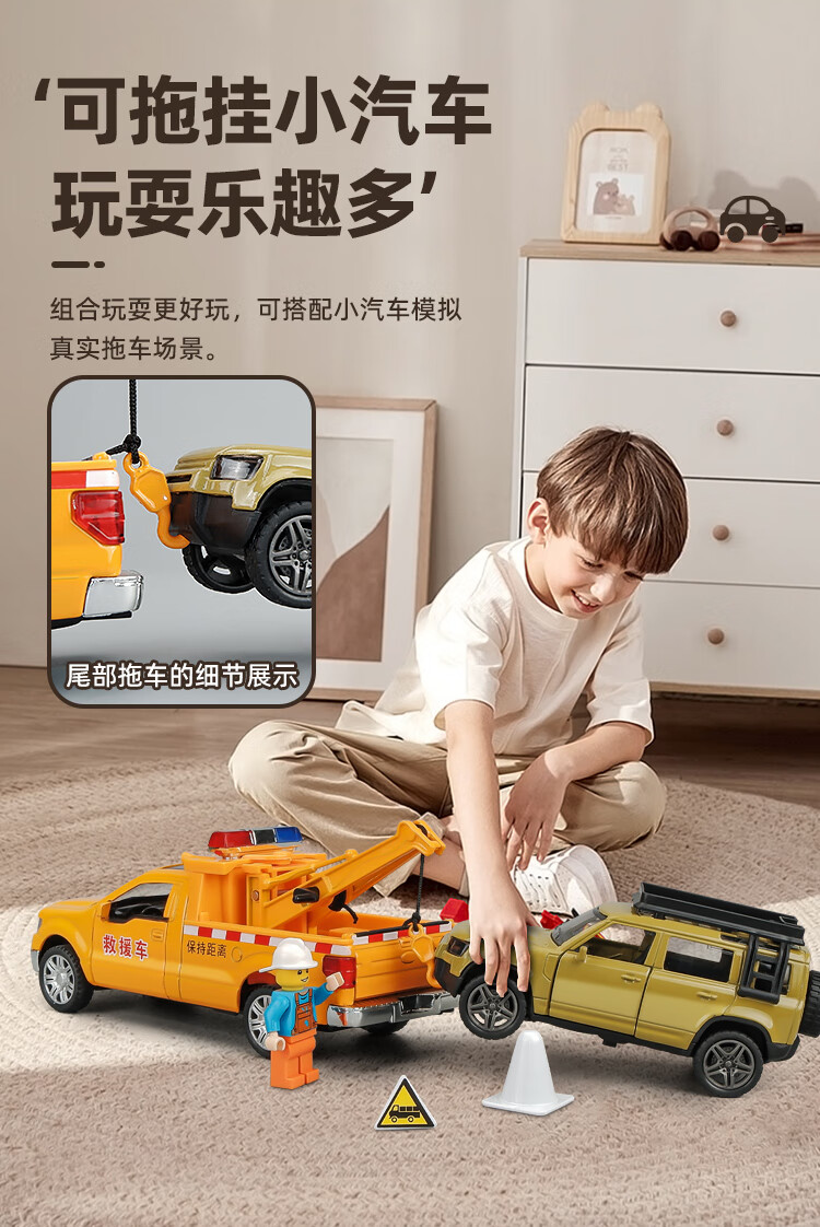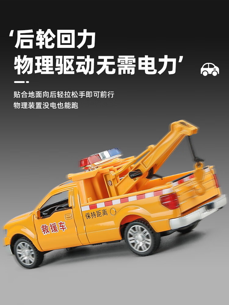 Kawei children's pickup truck road rescue trailer toy alloy car rescue engineering truck crane toy car boy rescue truck-yellow
