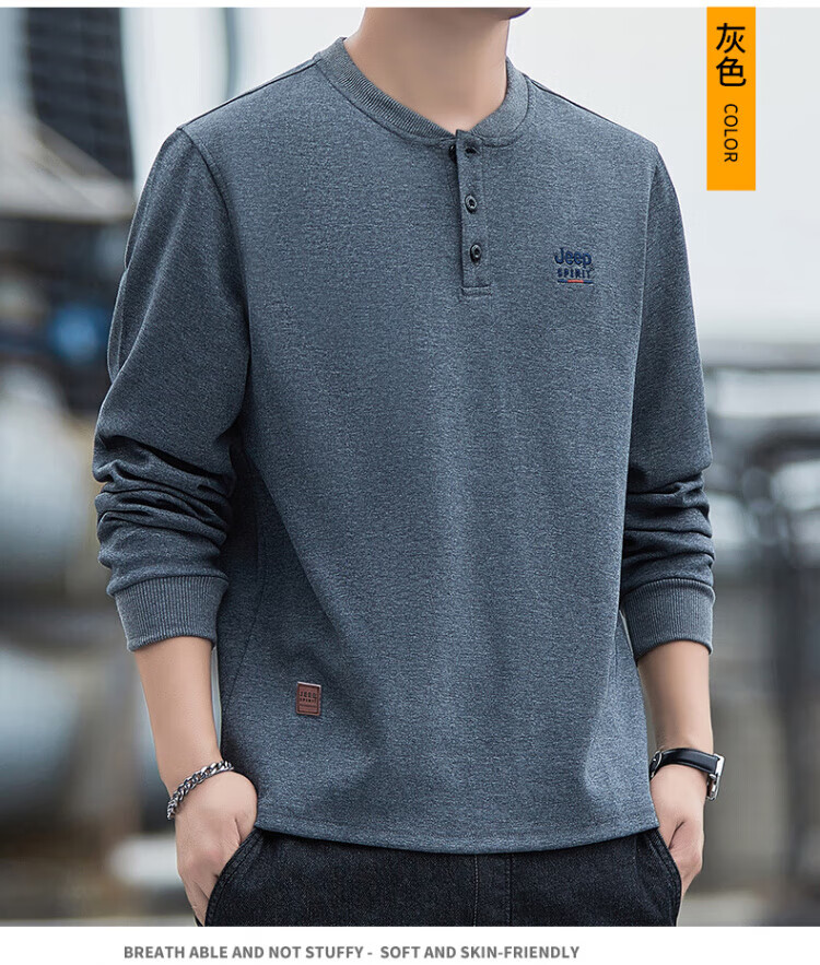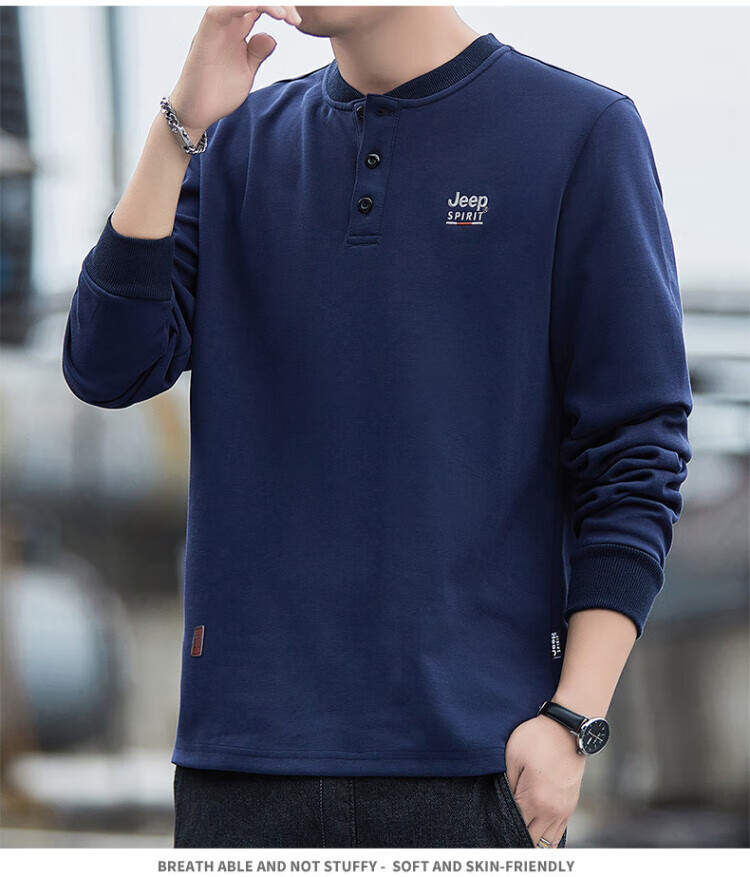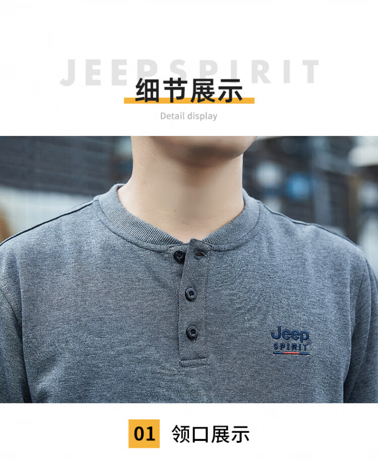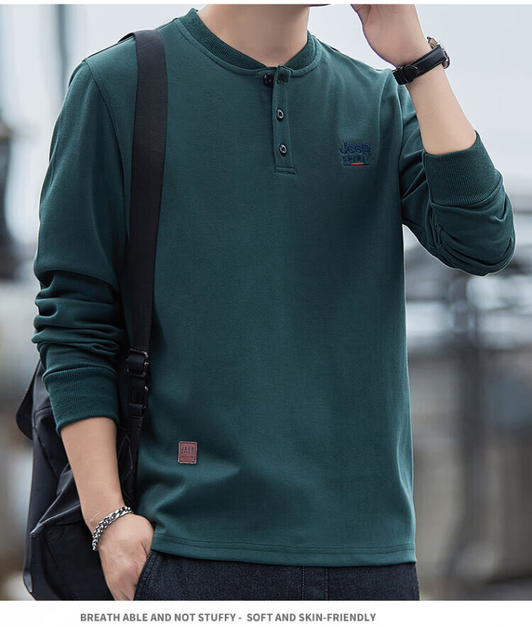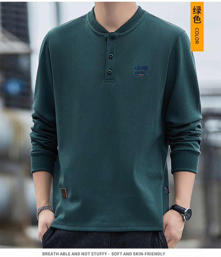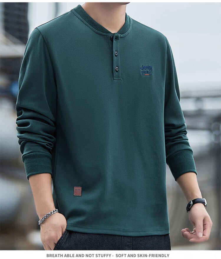 JEEP SPIRIT high-end heavyweight pure cotton Henry collar sweatshirt long-sleeved shirt men's spring and autumn American casual bottoming men's shirt trend SS7285 dark green baseball collar regular M recommended 100-120Jin Jin equals 0.5 kg