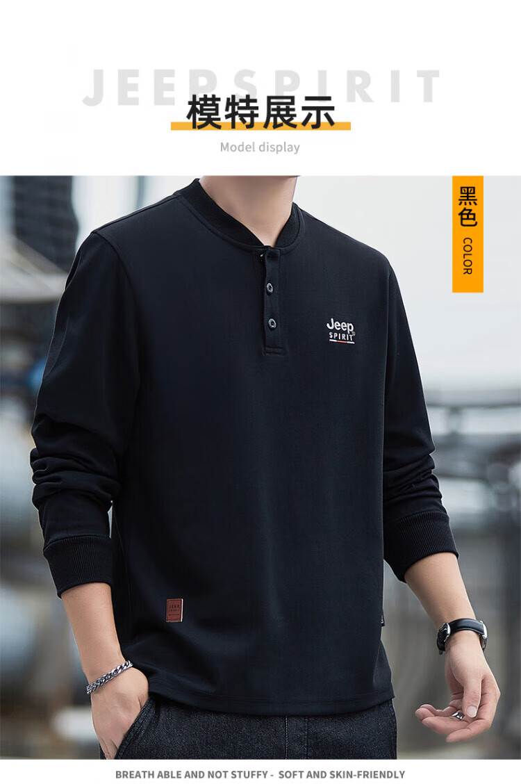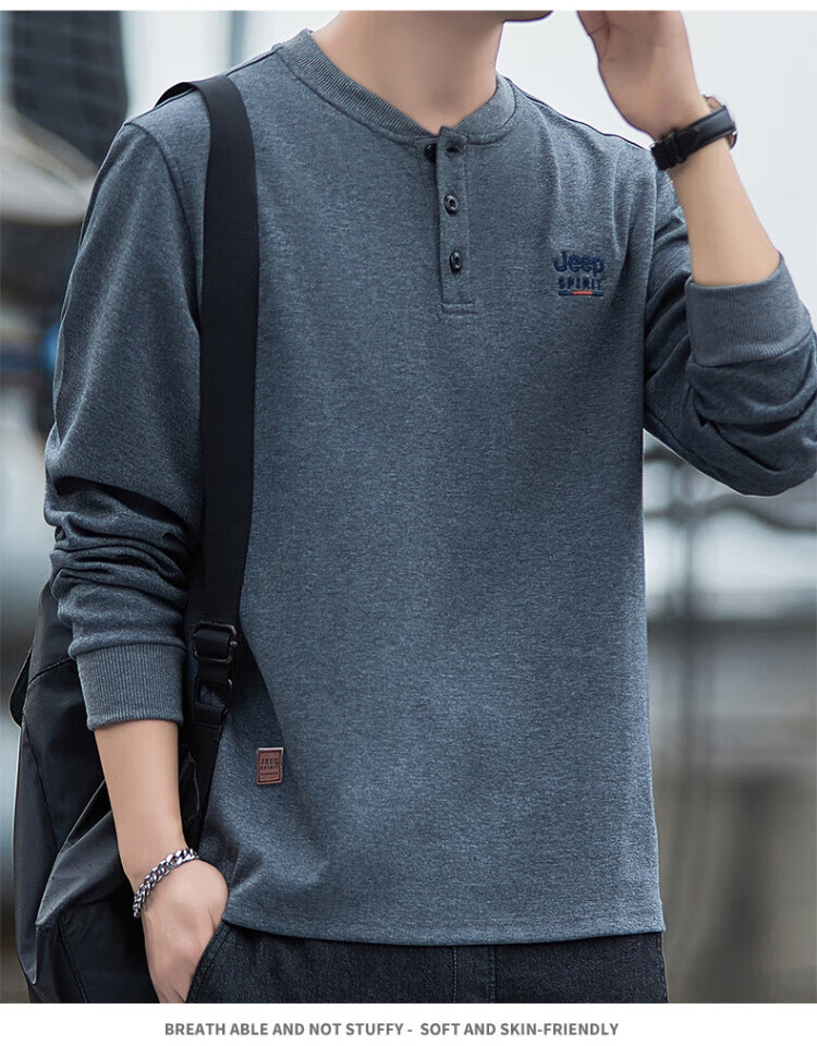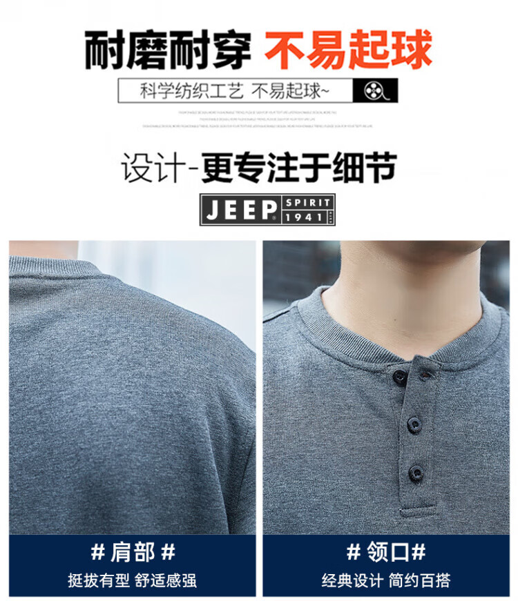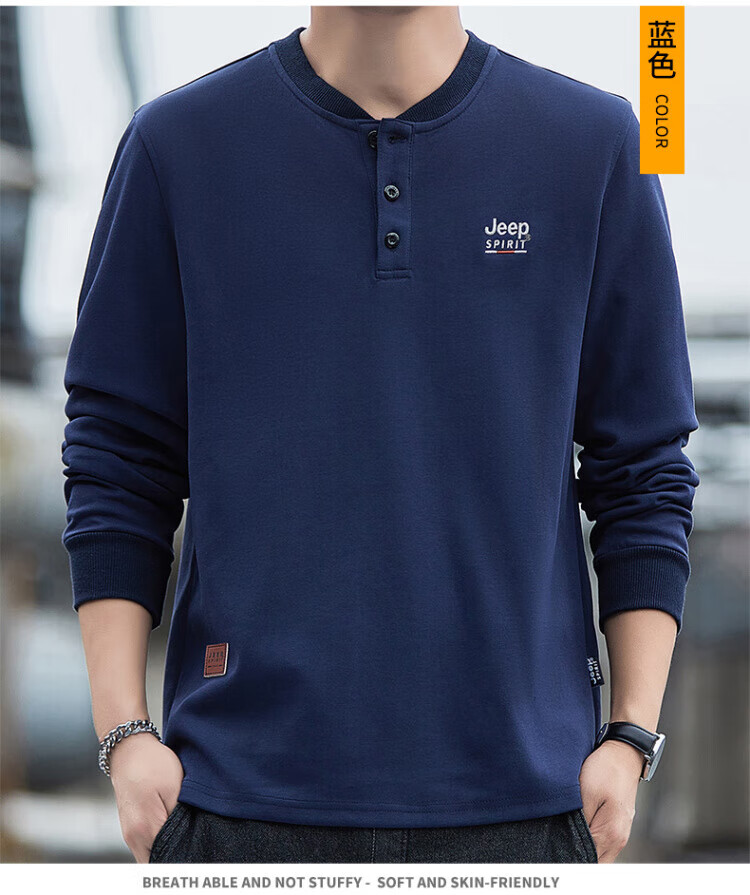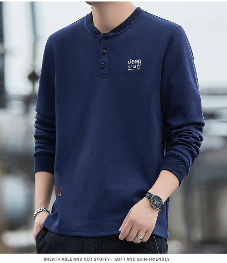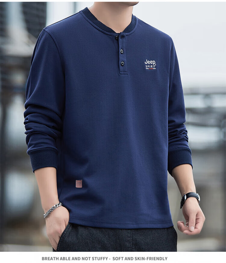 JEEP SPIRIT high-end heavyweight pure cotton Henry collar sweatshirt long-sleeved shirt men's spring and autumn American casual bottoming men's shirt trend SS7285 dark green baseball collar regular M recommended 100-120Jin Jin equals 0.5 kg
