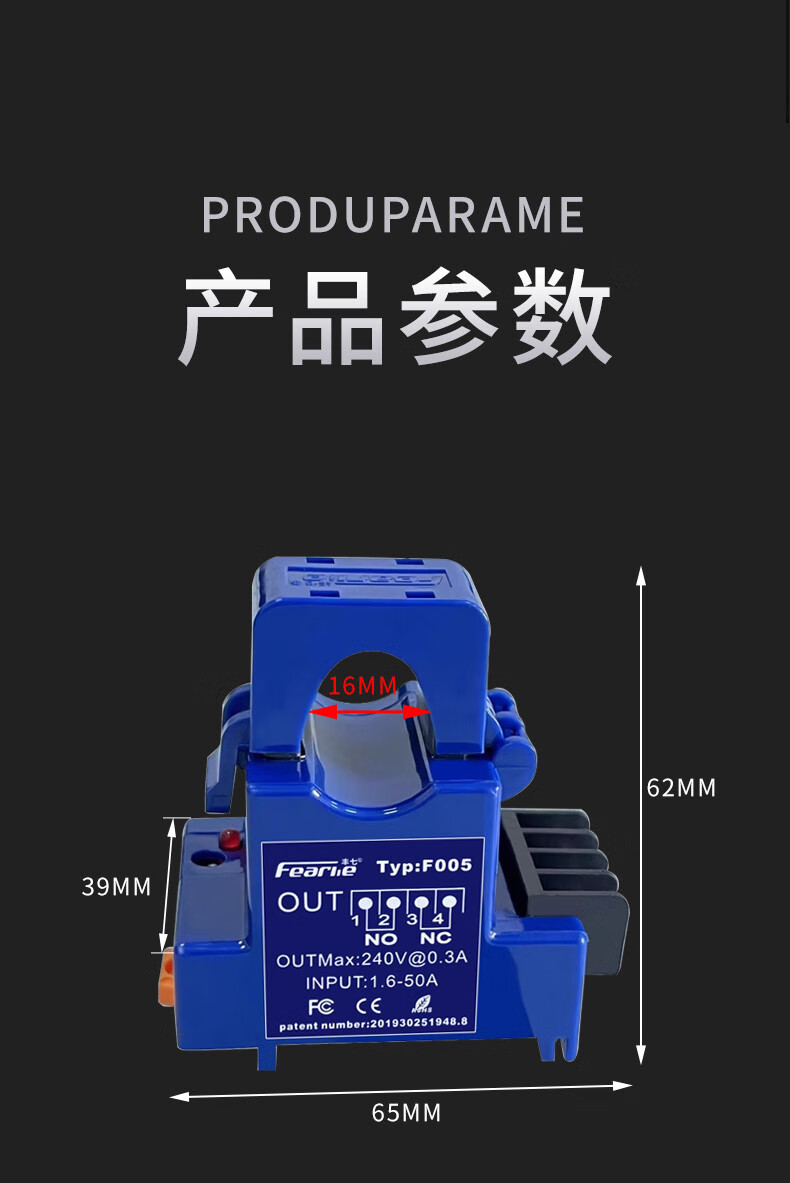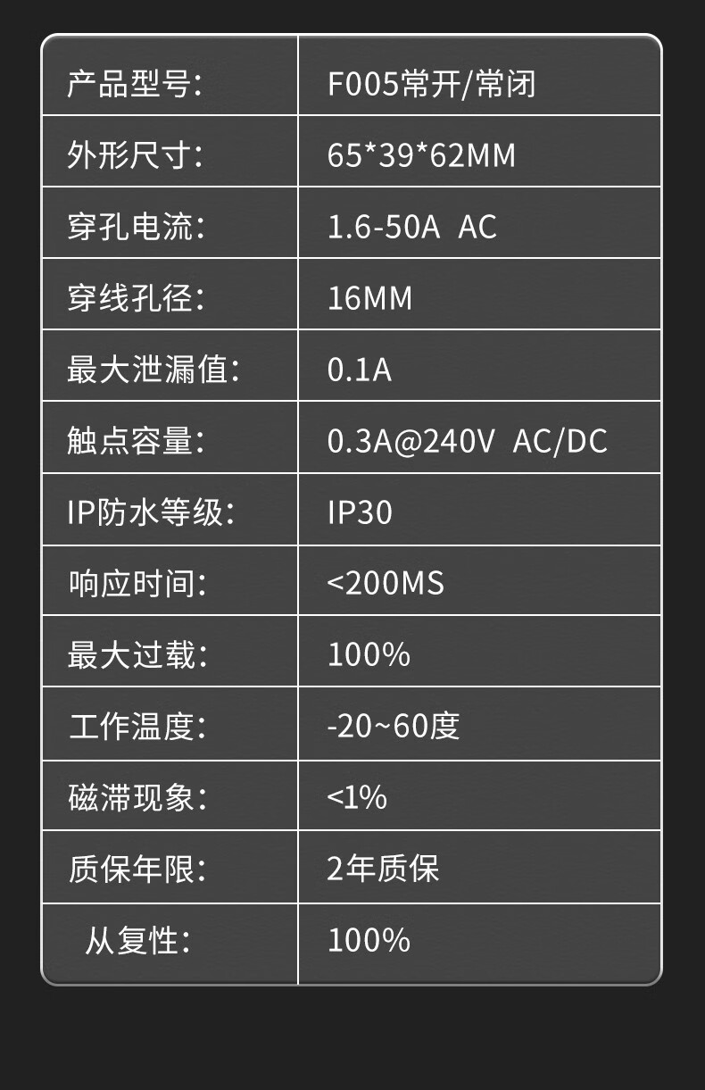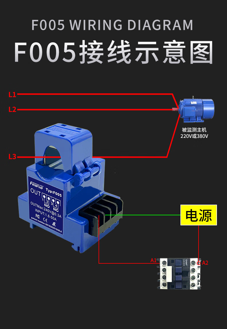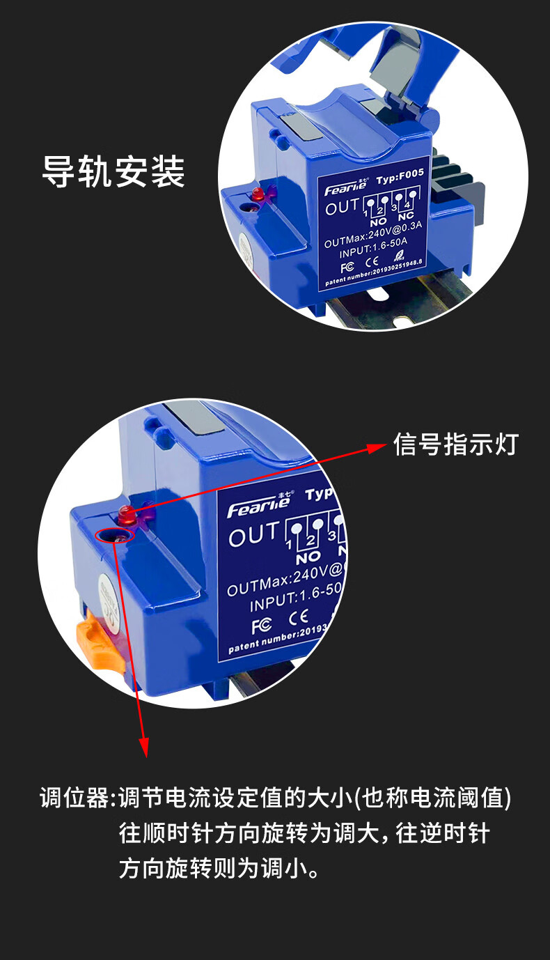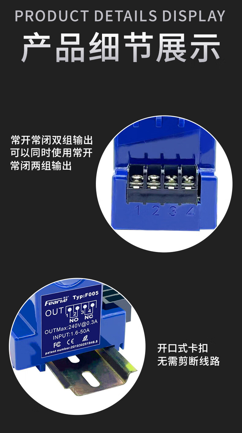 Current sensing switch opening type normally open normally closed linkage relay overload monitoring module AC transformer F005