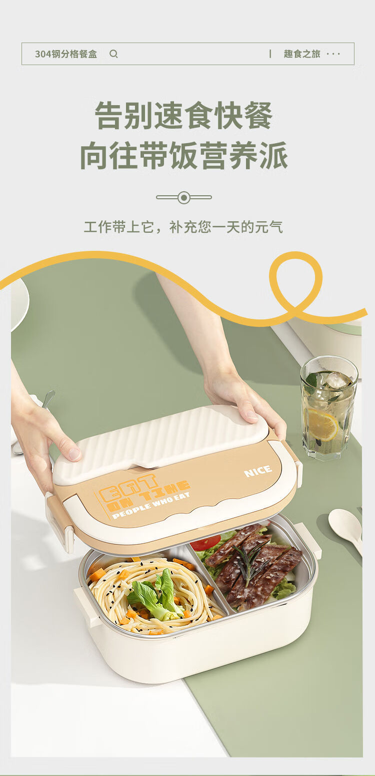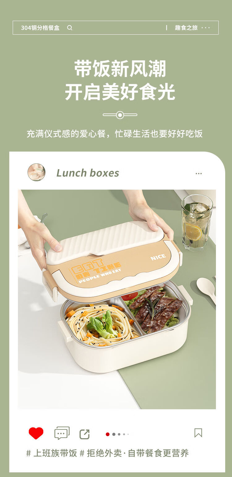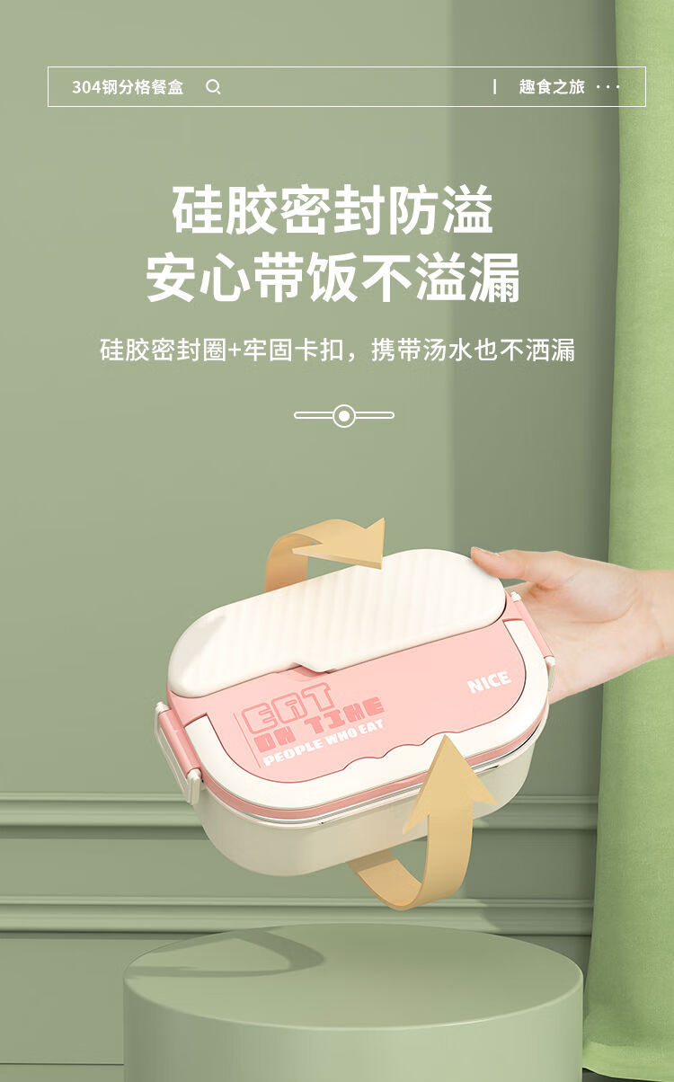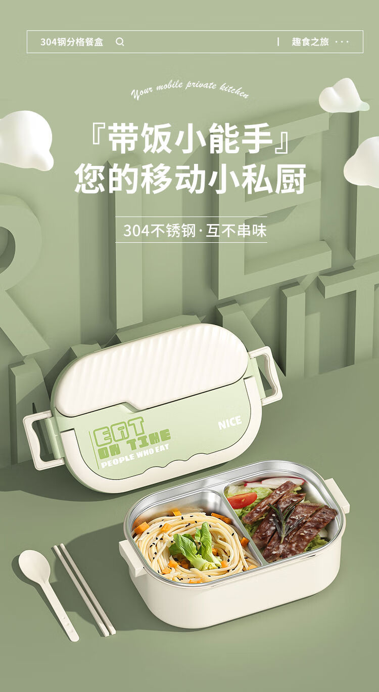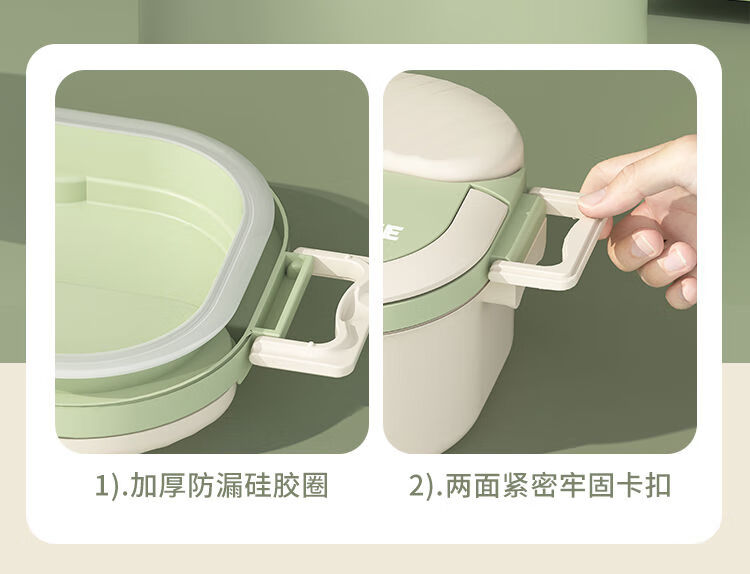 Jiyunmao Insulated Lunch Box Stainless Steel 304 Stainless Steel Insulated Lunch Box Office Workers Can Microwave Reheatable Lunch Box 304 Steel Nordic Powder-1300ml Free Chopsticks and Spoons
