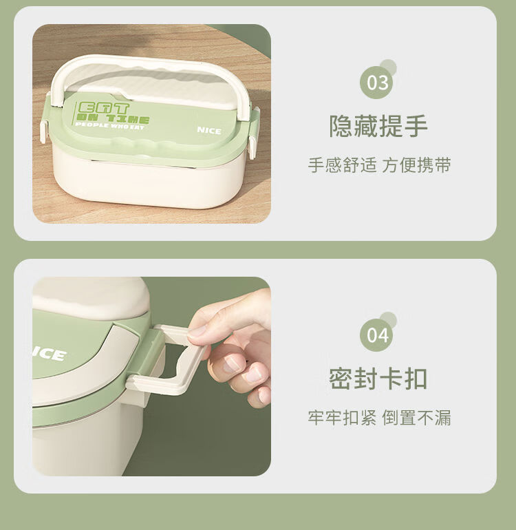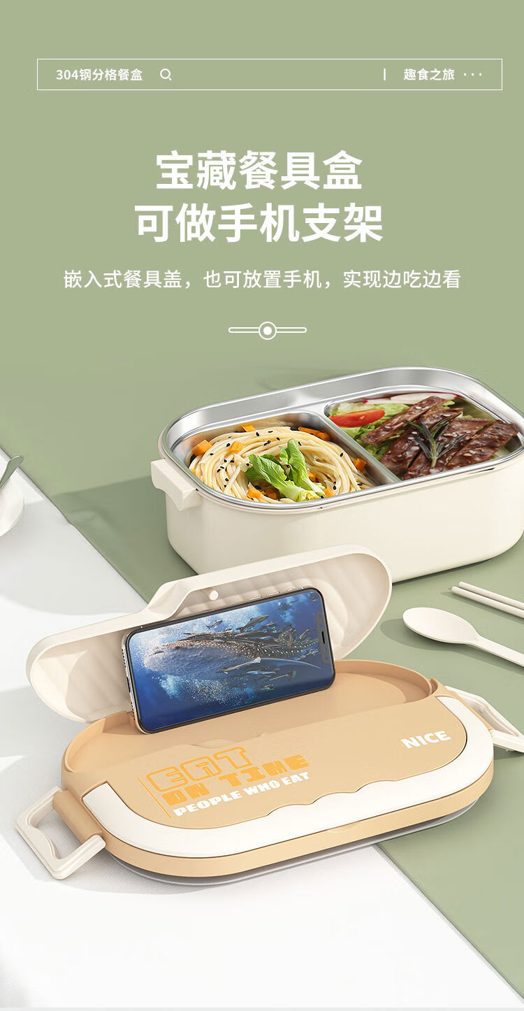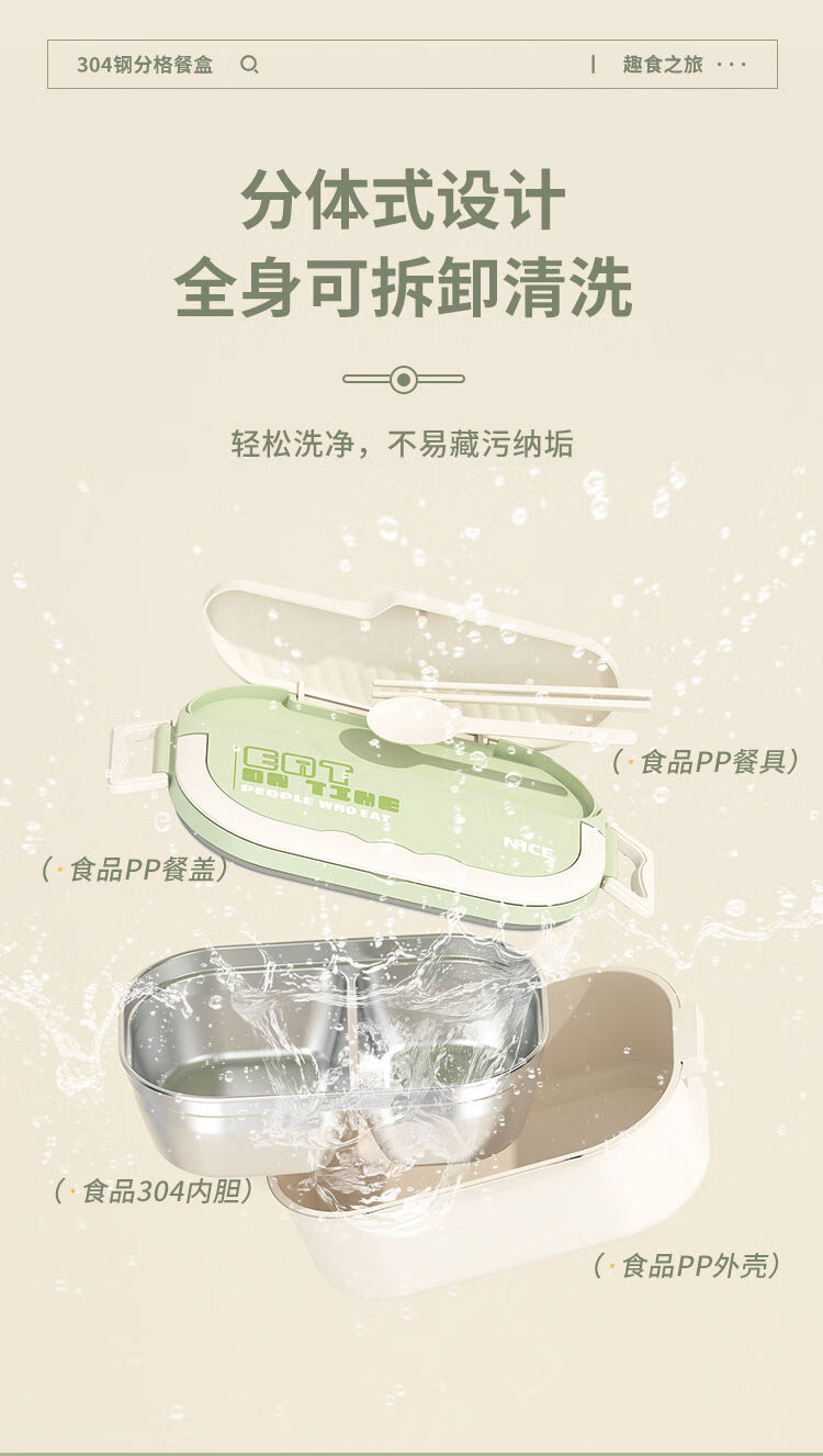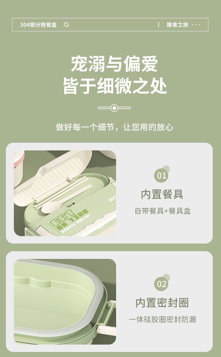 Jiyunmao Insulated Lunch Box Stainless Steel 304 Stainless Steel Insulated Lunch Box Office Workers Can Microwave Reheatable Lunch Box 304 Steel Nordic Powder-1300ml Free Chopsticks and Spoons